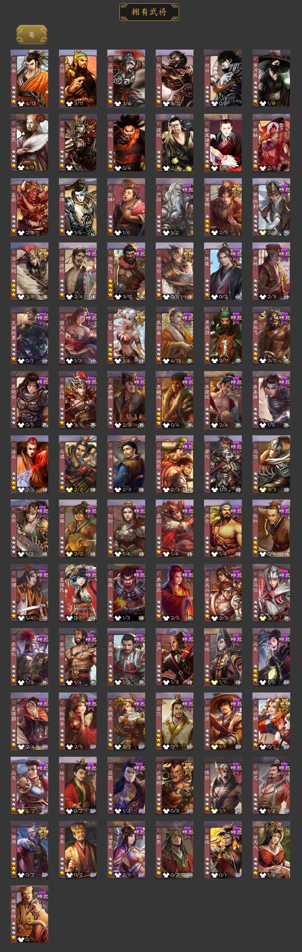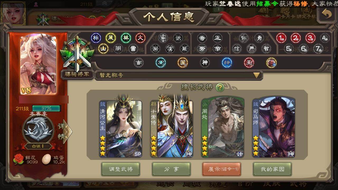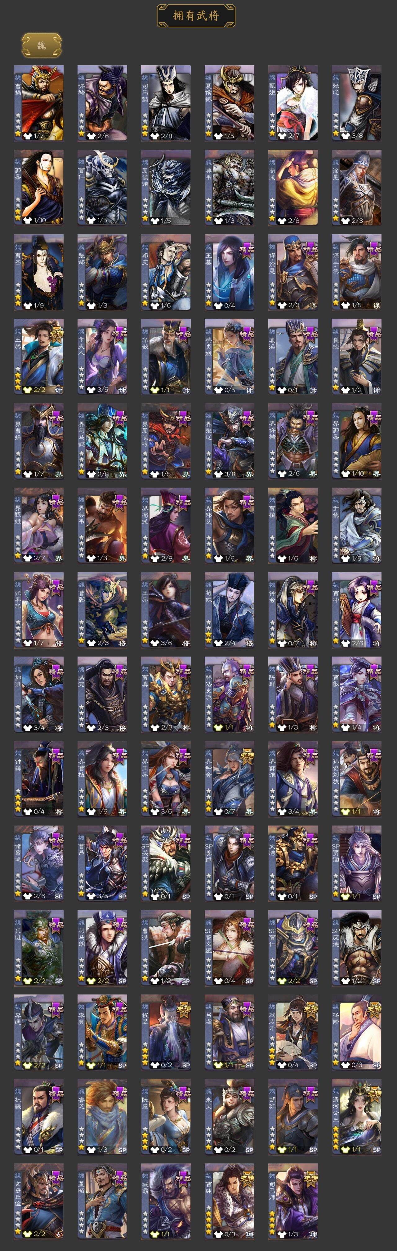 [15168472]【856】官阶:骠骑将军;vip等级:vip8;史诗武将数量:23;动态皮肤数量:19;武将总数:312;史诗宝珠数量:0;将魂数量:2498;神将:3;魏国史诗武将:6;蜀国史诗武将:7;吴国史诗武将:3;群史诗武将:6 神陆逊神吕蒙神周瑜王粲杨修司马师界钟会曹纯戏志才清河公主马云騄谋赵云谋马超诸葛瞻沙摩柯谯周花鬘周处骆统留赞十常侍裴秀左慈鲍信张绣李傕神荀彧-虎年清明动态神赵云-神龙天降王粲-笔翰如流动态曹婴-兔年春节动态清河公主-魅影萦心动态花鬘-依心缱绻动态诸葛亮-龙年限定动态马超-虎年冬至动态张飞-明良千古动态鲍三娘-虎年七夕动态诸葛果-虎年中秋动态周处-义除三害动态周瑜-兔年七夕动态孙寒华-威灵尽显动态孙权-冠绝天下动态刘赞-灵魂歌王动态sp赵云-威名尽显动态
