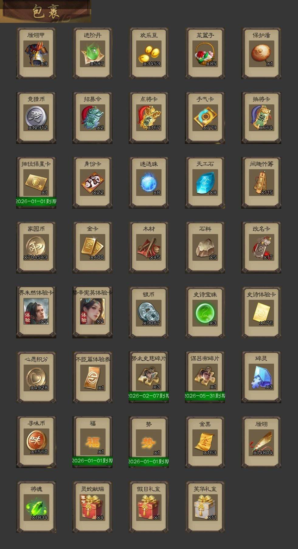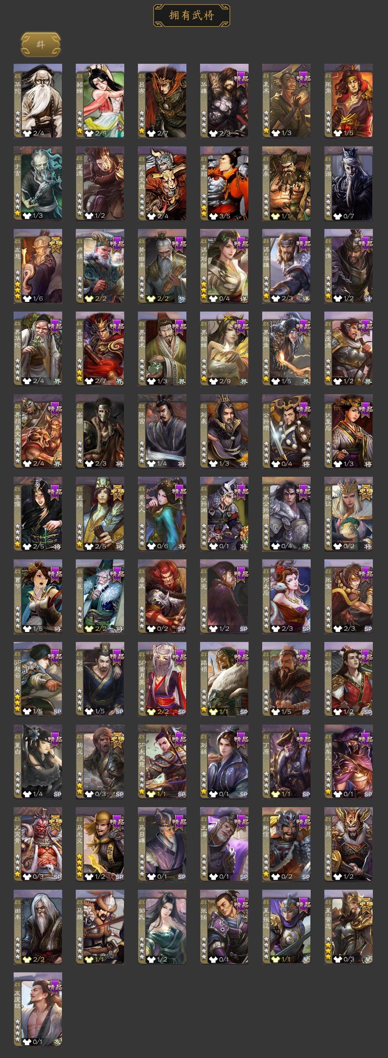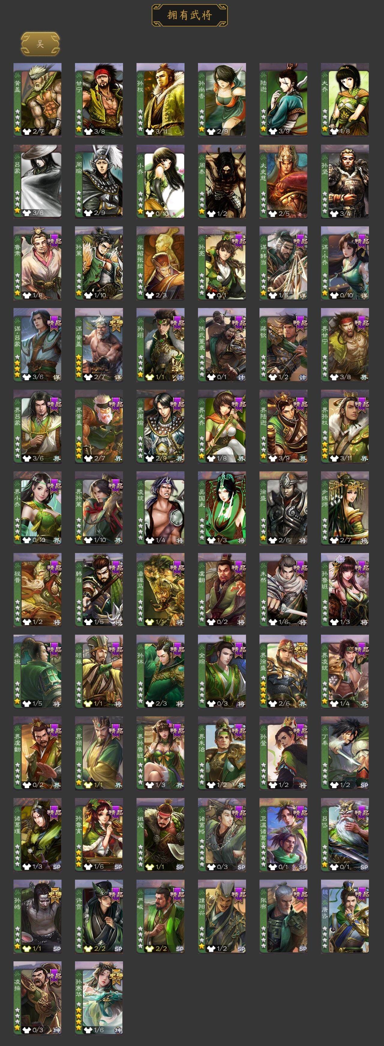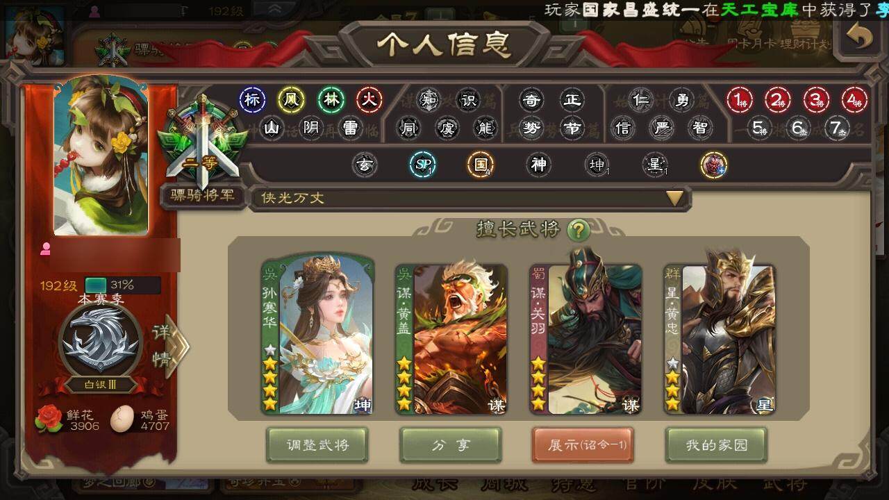 [15168508]【1014】官阶:骠骑将军;vip等级:vip7;史诗武将数量:24;动态皮肤数量:18;武将总数:287;史诗宝珠数量:3;将魂数量:1834;神将:2;魏国史诗武将:6;蜀国史诗武将:7;吴国史诗武将:4;群史诗武将:6 神吕蒙神周瑜星周不疑界钟会界曹真陈琳曹纯戏志才谋赵云谋马超诸葛瞻沙摩柯花鬘董允谋关羽谋黄盖孙皓孙寒华界徐盛左慈张让星黄忠麹义沮授鲍信星周不疑-才广志宏动态荀彧-驱虎吞狼动态司马师-牛年中秋动态关索-依心缱绻动态马超-虎年冬至动态关银屏-兔年春节动态吕蒙-剑起惊澜动态陆逊-龙年七夕动态黄盖-以身证道动态孙权-永开吴祚动态周瑜-兔年七夕动态孙权-牛年七夕动态界孙权-牛年七夕动态步练师-牛年七夕动态孙鲁育-牛年端午动态孙寒华-蛇年限定动态袁绍-声震寰宇动态吕布-鼠年七夕动态界吕布-鼠年七夕动态李儒-鸠杀少帝动态张鲁-虎年冬至动态