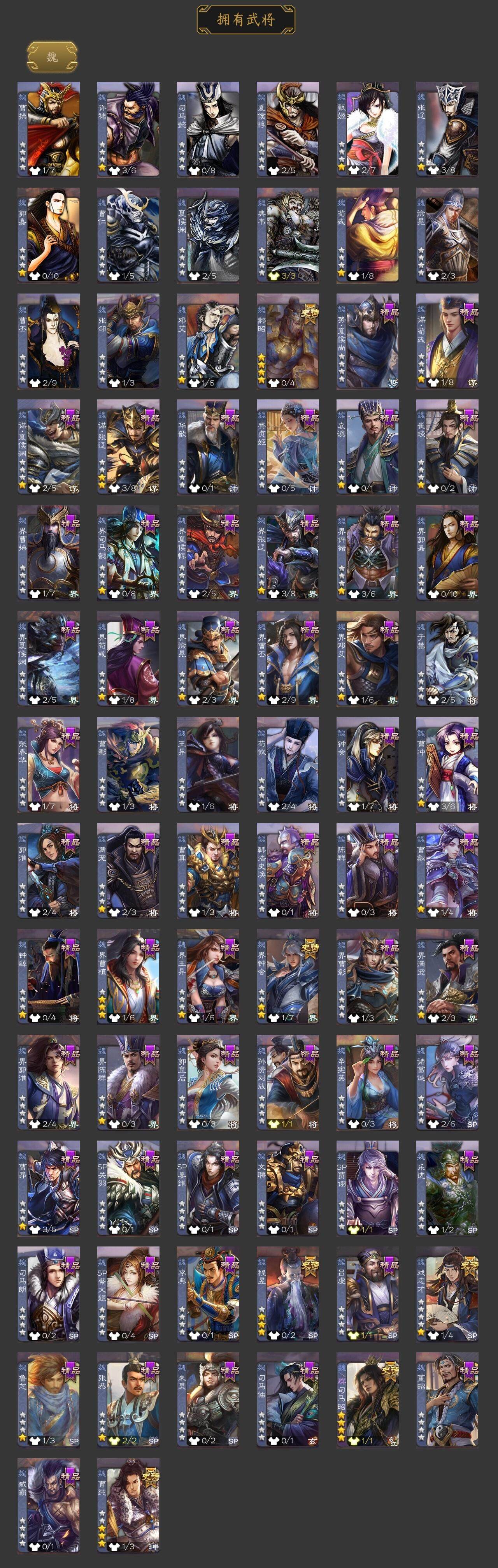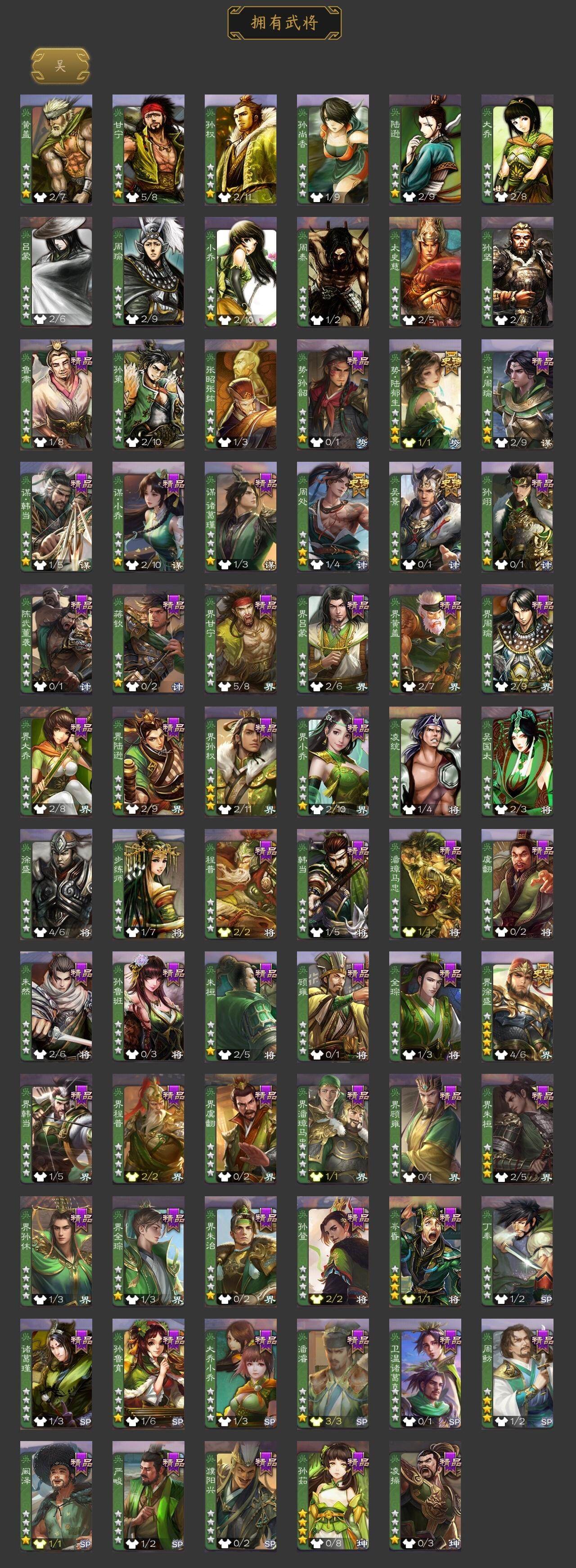 [15168823]【1003】官阶:骠骑将军;vip等级:vip8;史诗武将数量:31;动态皮肤数量:21;武将总数:315;史诗宝珠数量:2;将魂数量:2031;神将:6;魏国史诗武将:14;蜀国史诗武将:6;吴国史诗武将:4;群史诗武将:14 神吕布神赵云神张辽神吕蒙神周瑜神诸葛亮魏-司马昭界钟会郝昭曹纯戏志才关索马云騄谋赵云谋马超诸葛瞻沙摩柯周处吴景界徐盛势陆郁生谋荀彧左慈张让麹义沮授界李儒公孙康鲍信谋张角李傕许攸友徐庶星董卓笮融神诸葛亮-观星唤雨神吕布-监兵噬魅动态神赵云-战龙在野动态星周不疑-才广志宏动态张昌蒲-龙年端午(动态)曹丕-龙年中秋动态曹真-虎年春节动态曹纯-虎年春节动态司马昭-昭威淮南(动态)星徐晃-斧引霹雳动态马超-牛年春节动态赵云-牛年春节动态黄月英-鼠年春节动态界赵云-牛年春节动态界黄月英-鼠年春节动态卧龙诸葛-火烧博望动态孙权-猪年端午动态周瑜-鼠年春节动态小乔-猪年大雪动态界周瑜-鼠年春节动态界孙权-猪年端午动态界小乔-猪年大雪动态徐盛-破军杀将动态陆逊-蛇年清明动态麹义-扬刀立威动态