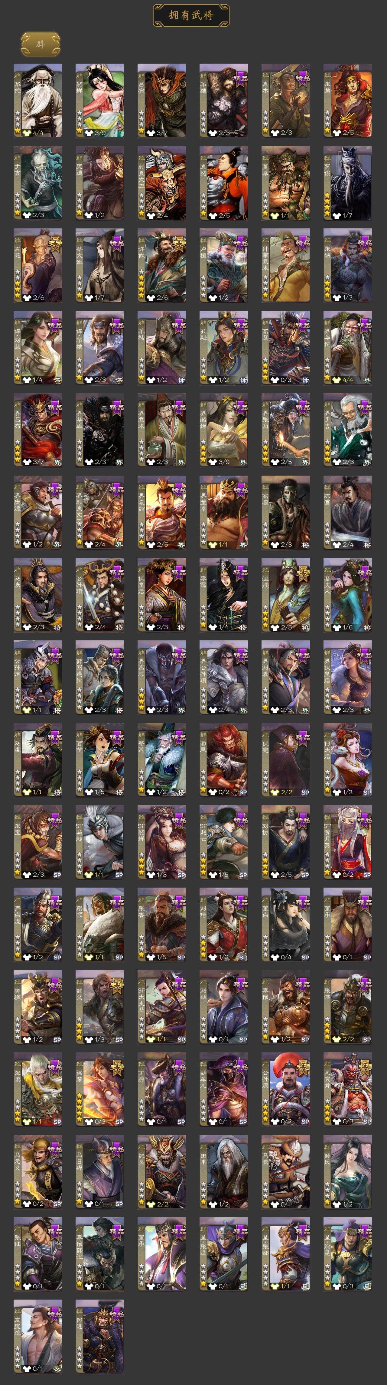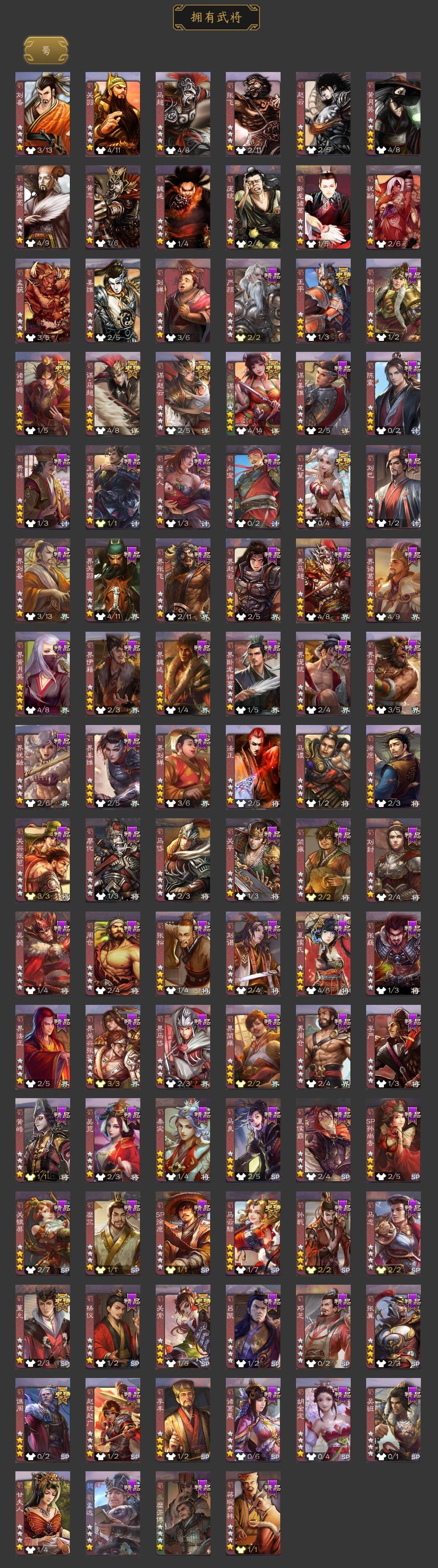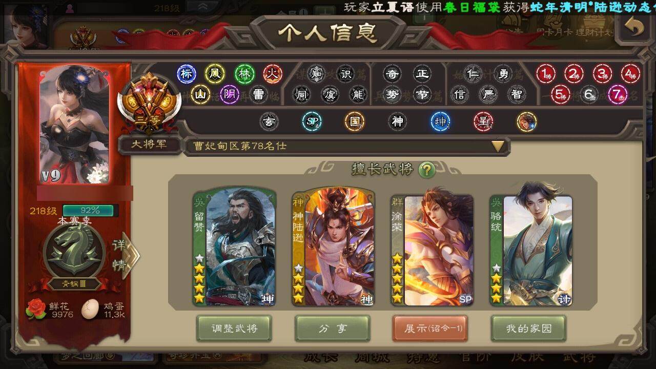[15168937]【120】官阶:大将军;vip等级:vip9;史诗武将数量:36;动态皮肤数量:20;武将总数:382;史诗宝珠数量:0;将魂数量:274;神将:7;魏国史诗武将:12;蜀国史诗武将:11;吴国史诗武将:5;群史诗武将:8 神赵云神陆逊神张辽神太史慈神吕蒙神周瑜神诸葛亮王粲杨修王凌界钟会界曹真嵇康曹纯戏志才刘晔关索马云騄谋孙尚香谋赵云谋马超诸葛瞻王平谯周花鬘董允骆统留赞界朱然界徐盛贺齐左慈徐荣麹义沮授公孙康张绣李傕许攸神陆逊-绽焰摧枯动态神周瑜-焰腾麒麟动态sp蔡文姬-兔年冬日动态荀彧-驱虎吞狼动态邓艾-神兵天降动态界邓艾-神兵天降动态曹真-虎年春节动态曹纯-虎年春节动态羊徽瑜-牛年中秋动态刘备-明良千古动态马超-牛年春节动态赵云-截江救主动态黄月英-鼠年春节动态黄月英-虎年中秋动态黄月英-木牛流马动态诸葛亮-明良千古动态界刘备-明良千古动态界赵云-截江救主动态界马超-牛年春节动态界诸葛亮-明良千古动态界黄月英-鼠年春节动态界黄月英-木牛流马动态夏侯氏-明良千古动态鲍三娘-虎年七夕动态孙鲁班-牛年端午动态刘赞-灵魂歌王动态貂蝉-鼠年七夕动态张角-迅雷风烈动态许攸-盛气凌人动态界貂蝉-鼠年七夕动态界张角-迅雷风烈动态sp貂蝉-驭魂千机动态刘协-龙困于渊动态