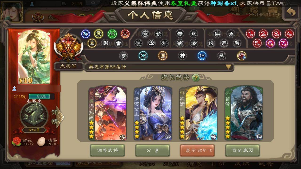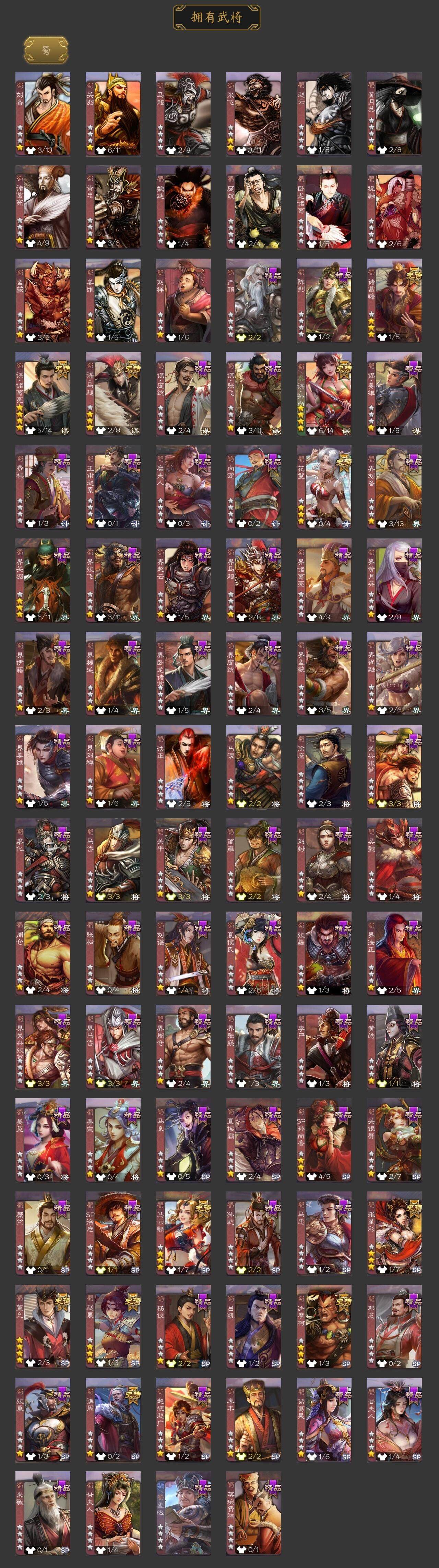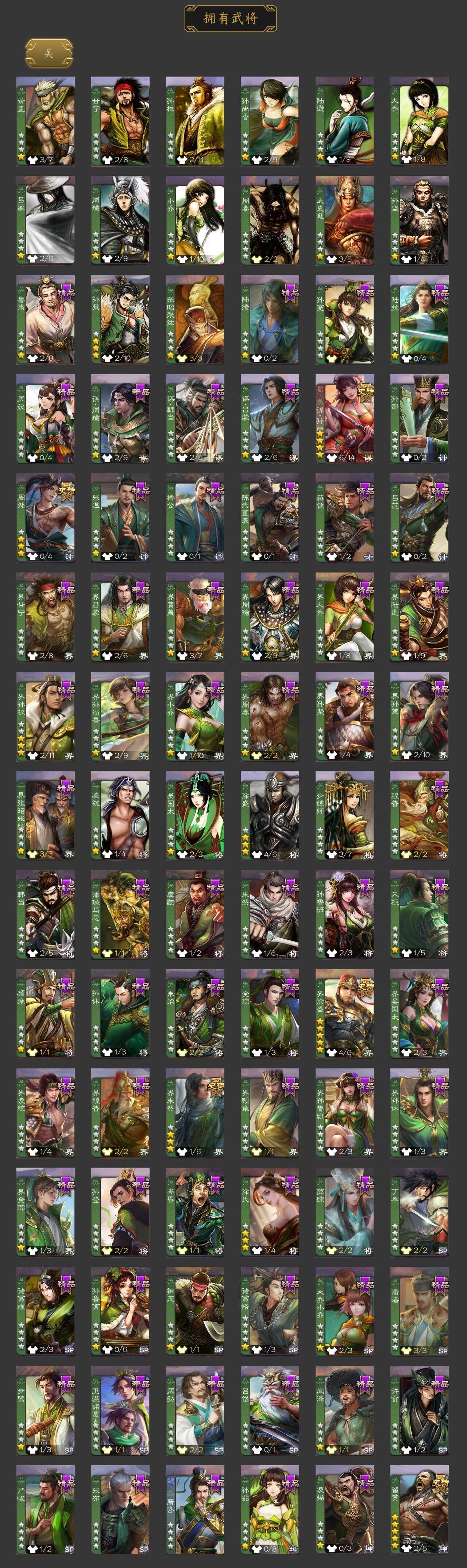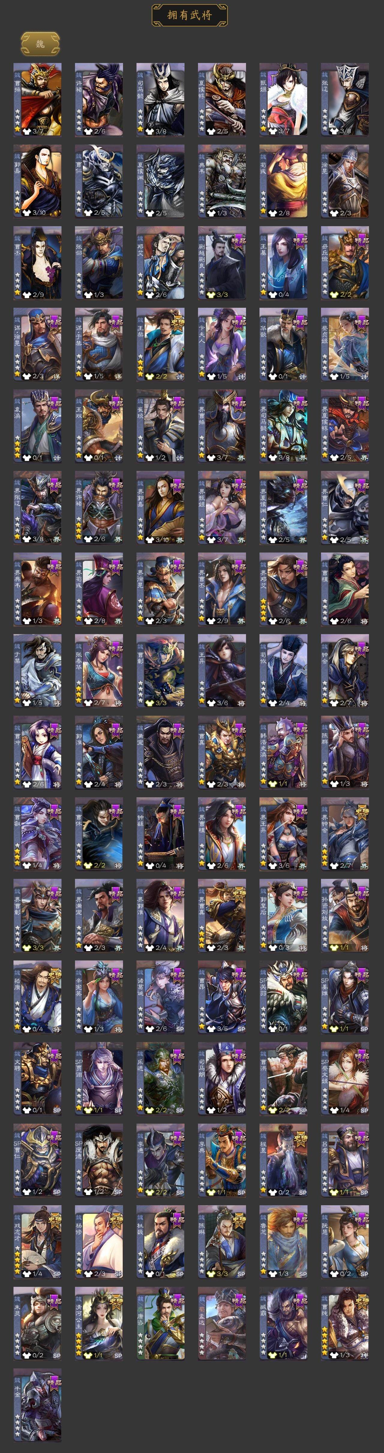 [15168969]【323】官阶:大将军;vip等级:vip10;史诗武将数量:35;动态皮肤数量:24;武将总数:376;史诗宝珠数量:5;将魂数量:6385;神将:6;魏国史诗武将:26;蜀国史诗武将:12;吴国史诗武将:4;群史诗武将:7 神赵云神刘备神张辽神吕蒙神周瑜神诸葛亮王粲杨修界钟会界曹真嵇康陈琳曹纯戏志才清河公主谋诸葛亮马云騄谋孙尚香谋马超诸葛瞻赵襄张星彩沙摩柯谯周花鬘董允周处留赞界朱然界徐盛左慈张让祢衡沮授界左慈李傕许攸许褚-虎啸生风动态甄姬-牛年清明动态荀彧-驱虎吞狼动态邓艾-神兵天降动态王粲-笔翰如流动态界许褚-虎啸生风动态界甄姬-牛年清明动态界邓艾-神兵天降动态张春华-雪中舞刃动态钟会-谋谟之勋动态界曹植-鼠年端午动态界钟会-谋谟之勋动态曹纯-长坂败备动态清河公主-魅影萦心动态刘备-龙骧麟振动态关羽-明良千古动态马超-虎年冬至动态界刘备-龙骧麟振动态sp孙尚香-明良千古动态关索-虎年七夕动态李丰-太仓聚粟动态小乔-兔年七夕动态太史慈-涤荡江东动态徐盛-破军杀将动态刘赞-灵魂歌王动态鲁肃-蛇年端午动态许攸-盛气凌人动态张鲁-虎年冬至动态张琪瑛-虎年冬至动态祢衡-击鼓骂曹动态