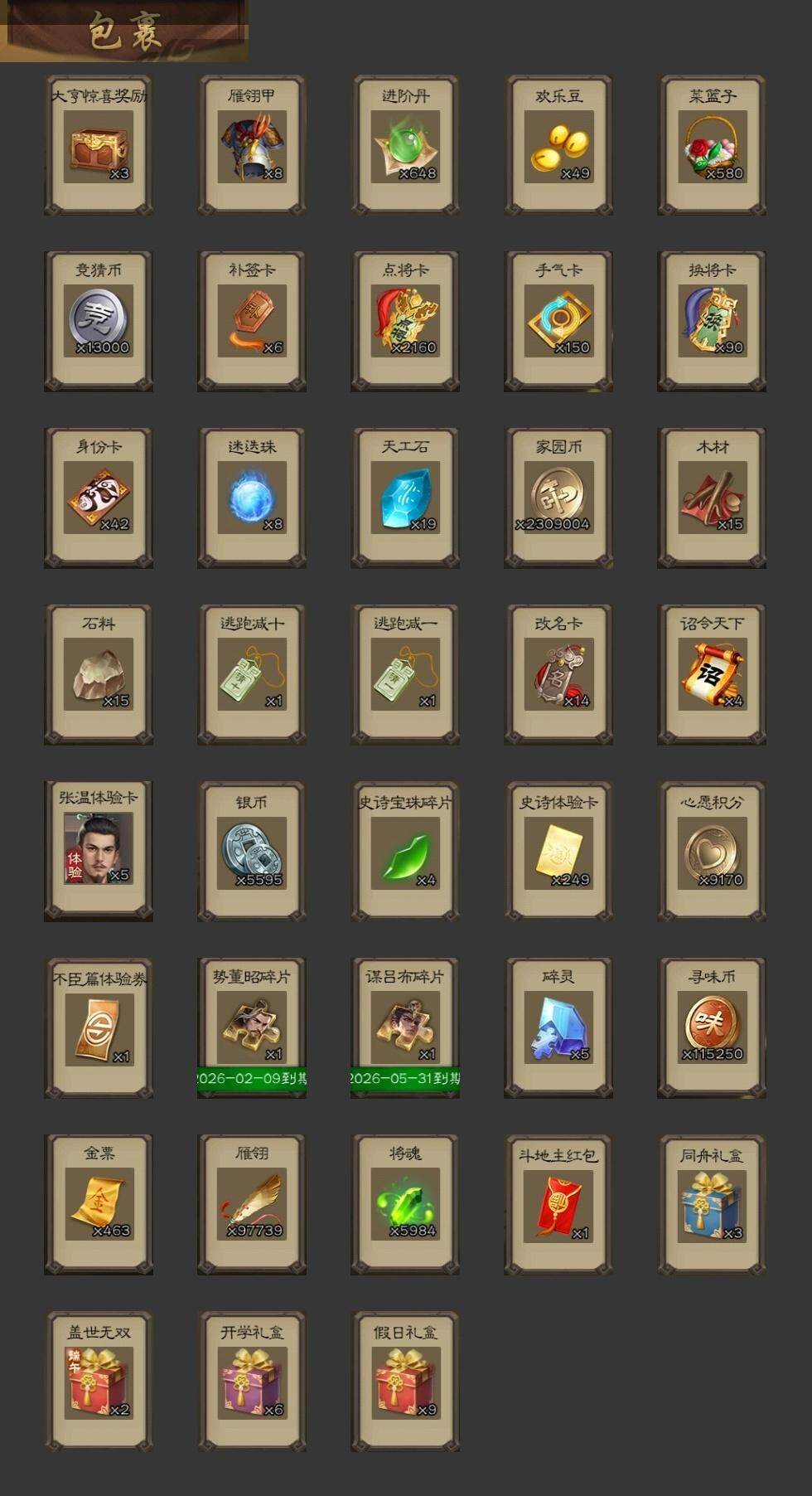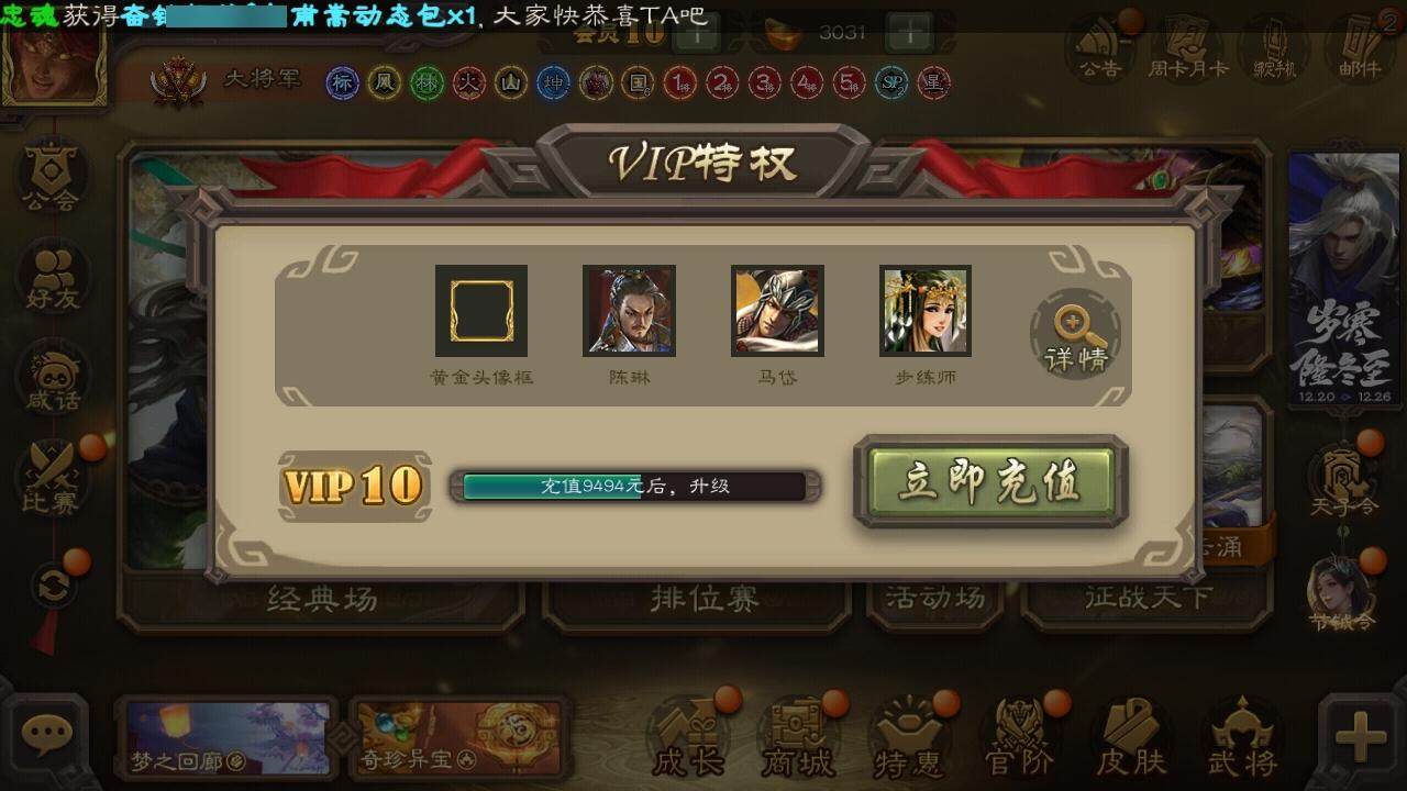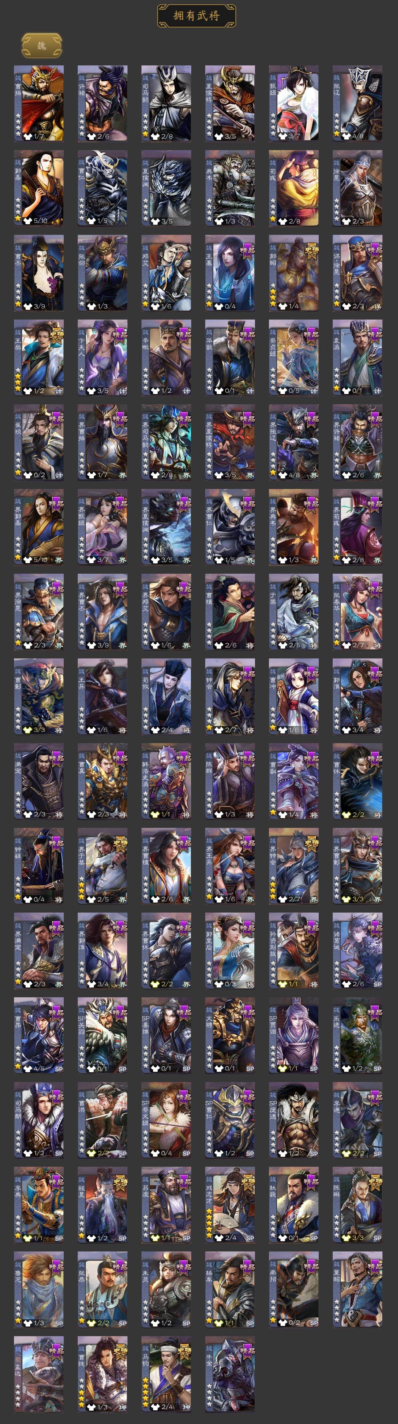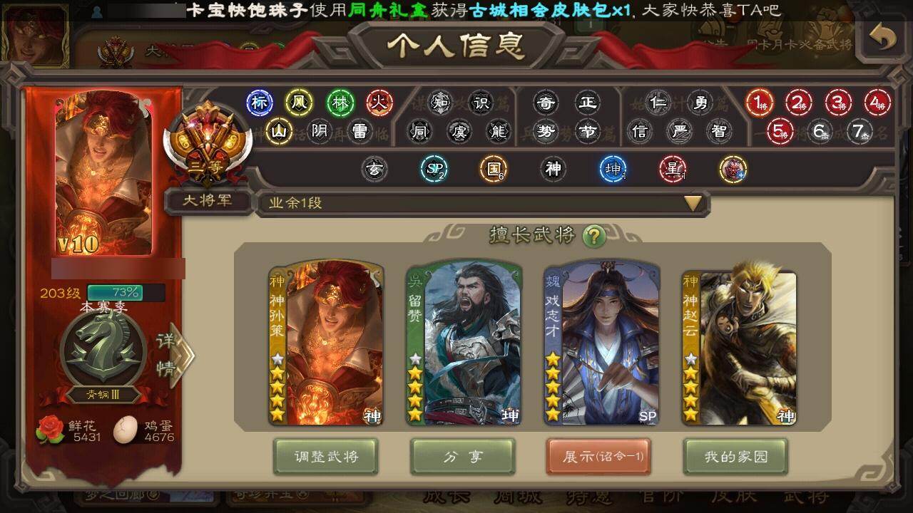 [15169129]【331】官阶:大将军;vip等级:vip10;史诗武将数量:34;动态皮肤数量:26;武将总数:363;史诗宝珠数量:0;将魂数量:5984;神将:7;魏国史诗武将:21;蜀国史诗武将:5;吴国史诗武将:5;群史诗武将:13 神吕布神赵云神张辽神孙策神吕蒙神周瑜神诸葛亮王粲马钧界钟会界于禁郝昭陈琳曹纯戏志才谋赵云张星彩沙摩柯谯周董允周处骆统留赞界朱然界徐盛左慈张让麹义沮授界左慈界李儒公孙康卑弥呼鲍信李傕许攸友徐庶星董卓神孙策-霸王再世动态神诸葛亮-风舞魔鸟动态神周瑜-焰腾麒麟动态张昌蒲-龙年端午(动态)钟会-龙年端午(动态)曹丕-气荡山河(动态)甄姬-明珠耀躯(动态)曹丕-猪年端午动态界曹丕-猪年端午动态张春华-牛年立冬动态戏志才-举棋若定动态朱灵-以战破氐动态曹纯-虎年春节动态清河公主-魅影萦心动态刘备-明良千古动态关羽-明良千古动态赵云-牛年春节动态界刘备-明良千古动态界赵云-牛年春节动态马云騄-牛年春节动态卧龙诸葛-火烧博望动态周处-义除三害动态孙权-永开吴祚动态孙策-虎踞江东动态孙权-牛年七夕动态孙尚香-星流霆击动态界孙权-牛年七夕动态界孙尚香-星流霆击动态孙鲁班-牛年端午动态界孙鲁班-牛年端午动态孙鲁育-牛年端午动态刘赞-灵魂歌王动态周瑜-蛇年端午动态许攸-盛气凌人动态sp赵云-威名尽显动态