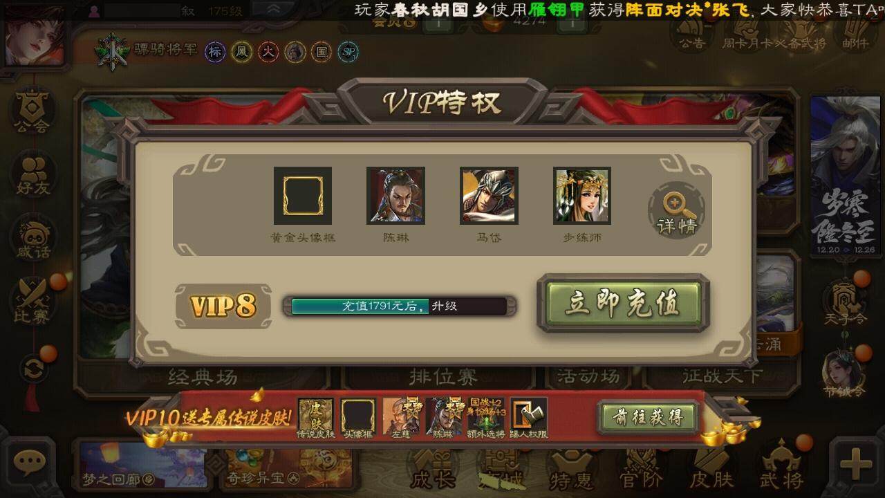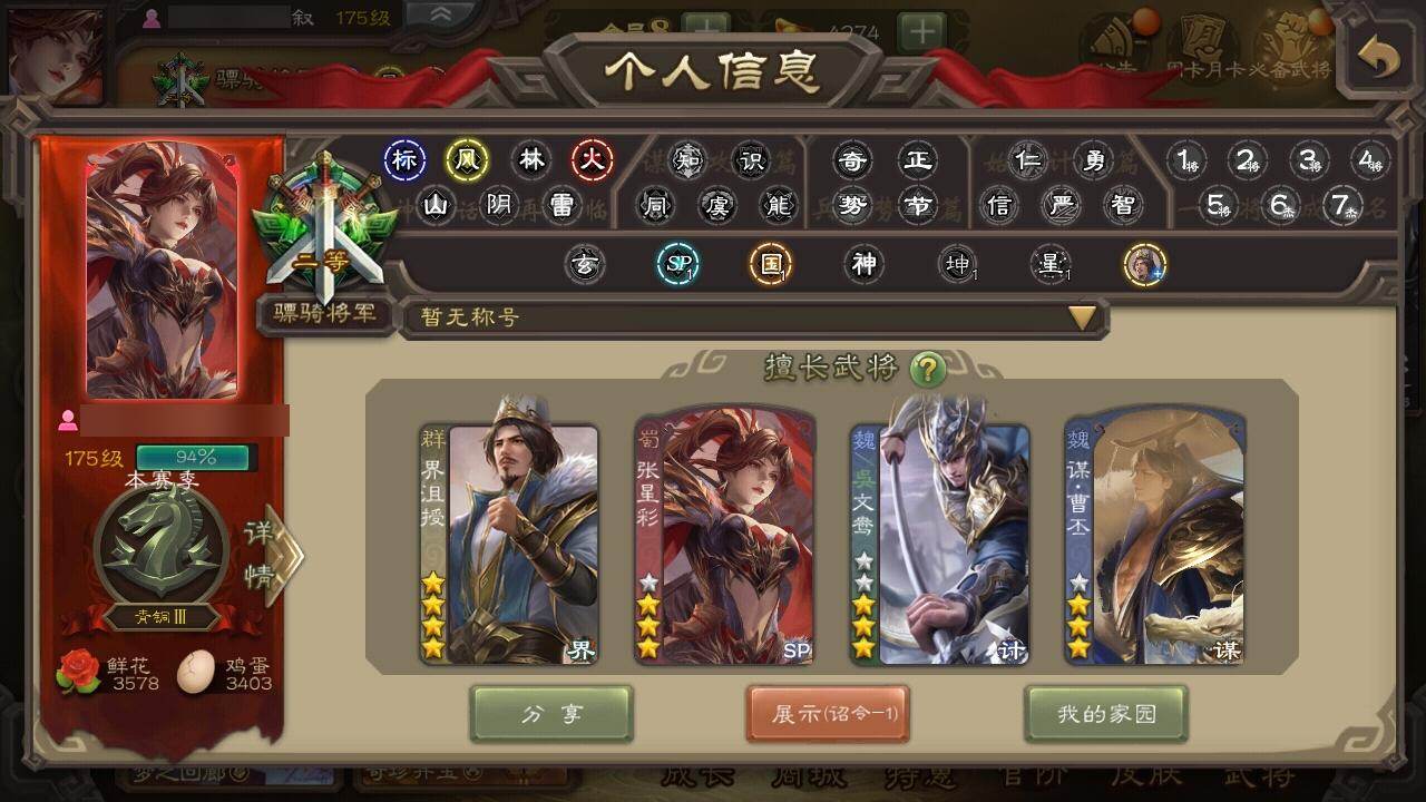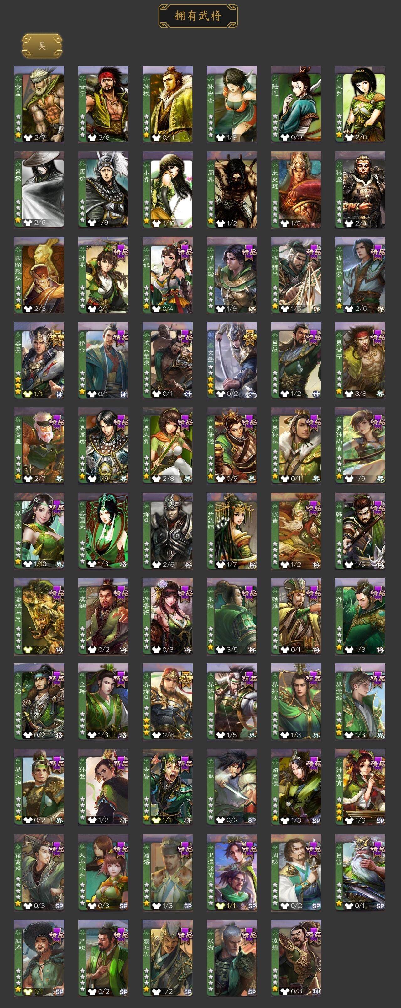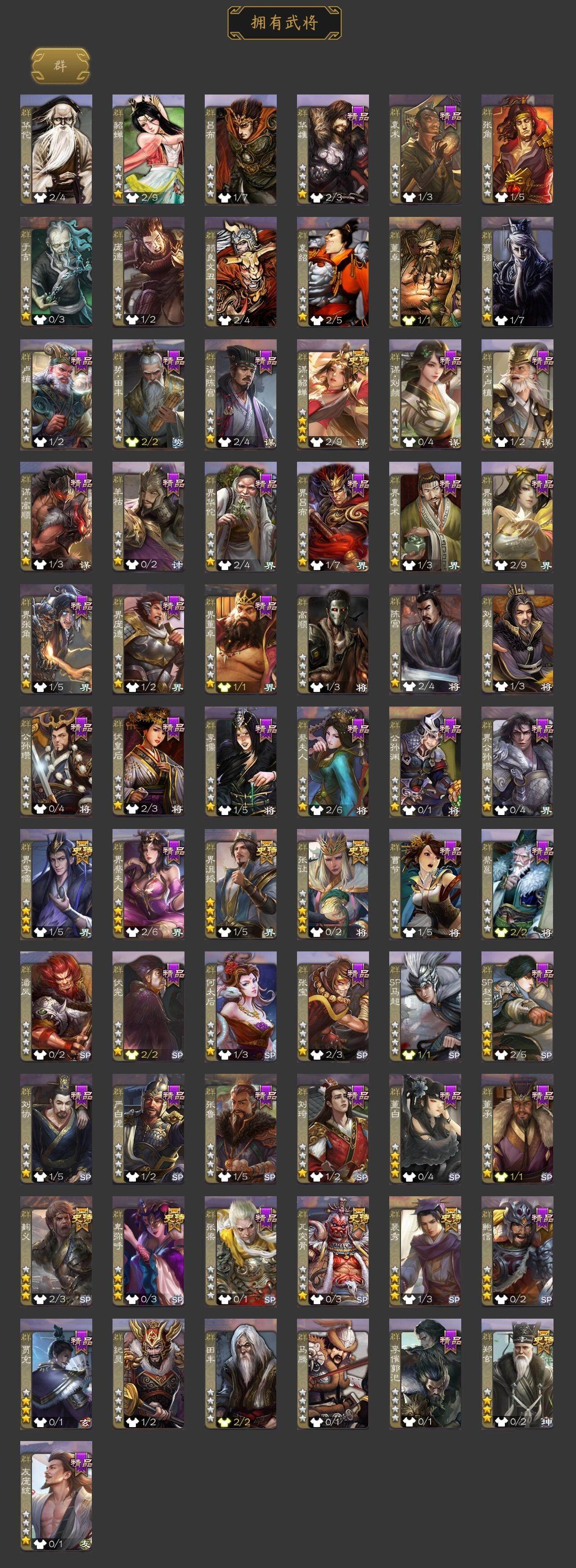 [15169142]【375】官阶:骠骑将军;vip等级:vip8;史诗武将数量:24;动态皮肤数量:17;武将总数:267;史诗宝珠数量:0;将魂数量:3066;神将:2;魏国史诗武将:10;蜀国史诗武将:6;吴国史诗武将:2;群史诗武将:10 神赵云神周瑜星周不疑文鸯界钟会曹纯戏志才谋夏侯氏谋赵云赵襄张星彩沙摩柯花鬘吴景界徐盛谋黄月英谋貂蝉裴秀界沮授郑玄张让麹义界李儒卑弥呼鲍信神郭嘉-半醉山河星周不疑-才广志宏动态曹丕-气荡山河(动态)甄姬-明珠耀躯(动态)曹丕-龙年中秋动态司马昭-昭威淮南(动态)花鬘-依心缱绻动态张星彩-临军对阵动态小乔-兔年七夕动态周处-义除三害动态吕蒙-剑起惊澜动态孙寒华-威灵尽显动态孙鲁育-牛年端午动态蔡夫人-计上心来动态貂蝉-舞惑群心动态麹义-扬刀立威动态sp赵云-威名尽显动态陶谦-安民护祚动态