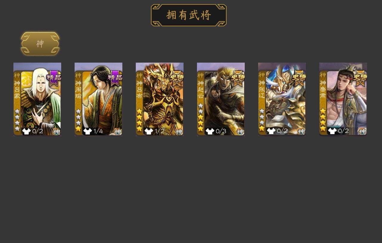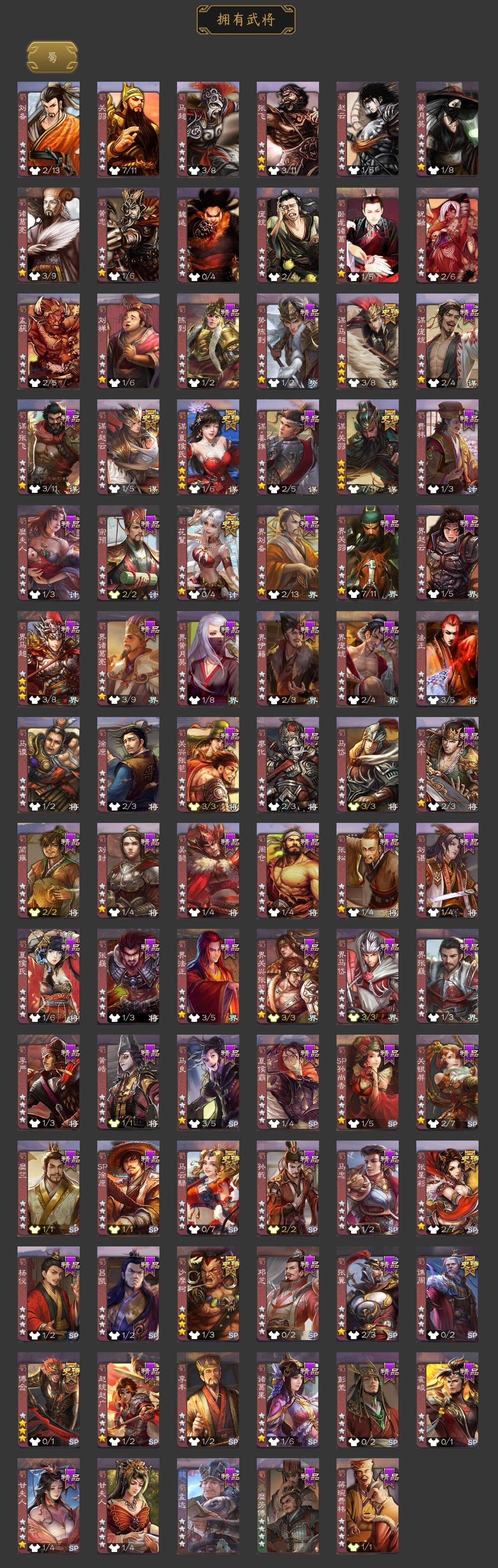 [15169343]【40】官阶:骠骑将军;vip等级:vip8;史诗武将数量:35;动态皮肤数量:30;武将总数:314;史诗宝珠数量:0;将魂数量:4621;神将:6;魏国史诗武将:19;蜀国史诗武将:10;吴国史诗武将:3;群史诗武将:8 神吕布神赵云神张辽神吕蒙神周瑜神鲁肃星周不疑王粲魏-司马昭界钟会界曹真曹纯戏志才清河公主马云騄谋夏侯氏谋赵云谋马超张星彩沙摩柯谯周傅佥花鬘谋关羽吴景骆统界徐盛左慈苏飞麹义庞德公沮授界李儒卑弥呼星董卓神荀彧-虎年清明动态神吕布-冠绝天下动态星周不疑-才广志宏动态曹丕-气荡山河(动态)甄姬-明珠耀躯(动态)sp蔡文姬-兔年冬日动态荀彧-驱虎吞狼动态戏志才-举棋若定动态朱灵-以战破氐动态司马昭-昭威淮南(动态)星徐晃-斧引霹雳动态清河公主-魅影萦心动态刘备-龙御天下动态关羽-以身证道(动态)张飞-明良千古动态夏侯氏-猪年中秋动态李丰-太仓聚粟动态诸葛果-虎年中秋动态孙茹-龙年七夕动态周处-义除三害动态孙权-永开吴祚动态孙策-虎踞江东动态孙尚香-兔年春节动态徐盛-破军杀将动态孙鲁育-牛年端午动态袁绍-声震寰宇动态麹义-扬刀立威动态李儒-鸠杀少帝动态界李儒-鸠杀少帝动态卑弥呼-鬼渊蝶引动态