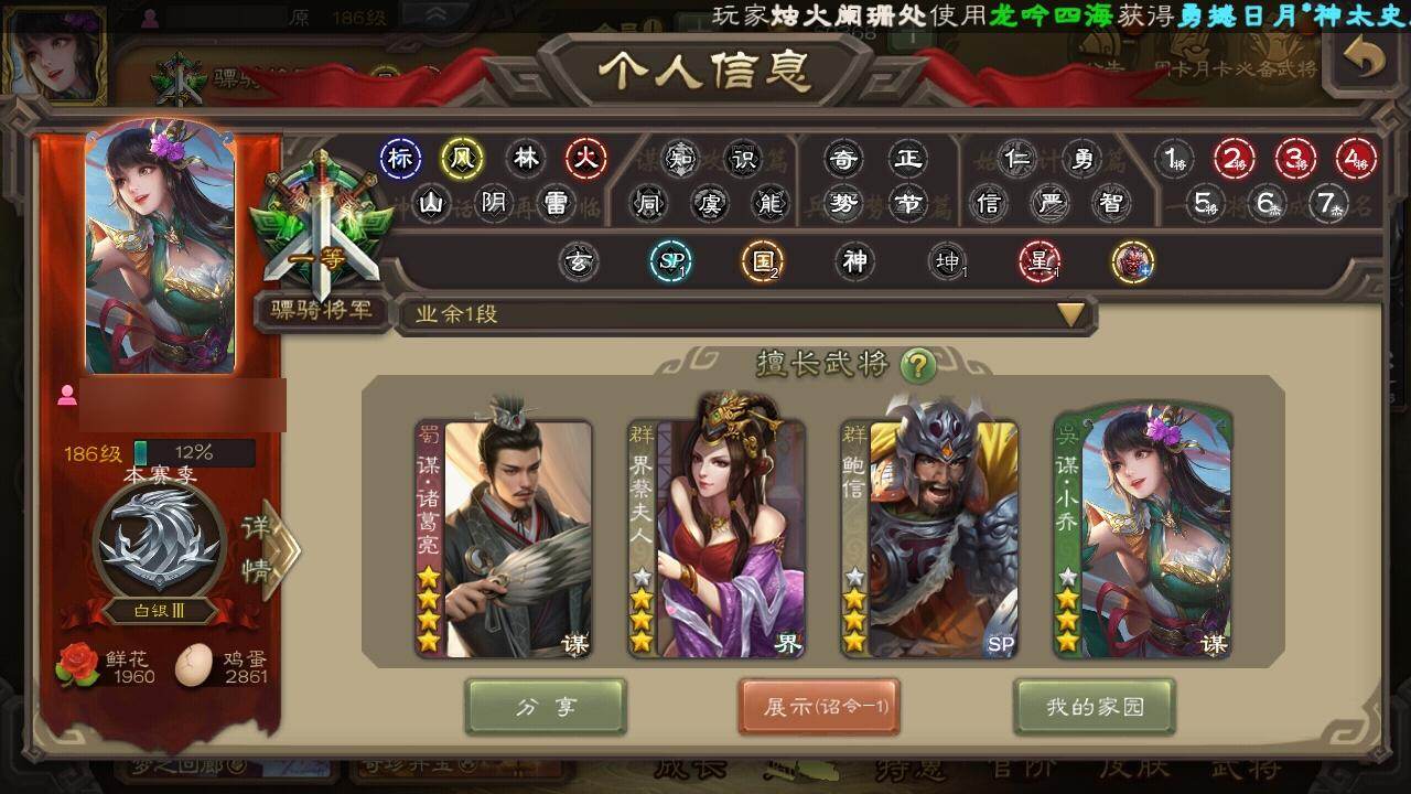 [15169468]【883】官阶:骠骑将军;vip等级:vip9;史诗武将数量:37;动态皮肤数量:29;武将总数:305;史诗宝珠数量:20;将魂数量:5307;神将:4;魏国史诗武将:24;蜀国史诗武将:9;吴国史诗武将:5;群史诗武将:13 神吕布神赵云神吕蒙神周瑜星周不疑王元姬魏-司马昭界钟会界曹真曹纯戏志才蒋干清河公主谋诸葛亮谋赵云谋马超诸葛瞻赵襄沙摩柯谯周界黄忠董允周处骆统界朱然界徐盛势太史慈谋郭嘉张琪瑛麹义南华老仙沮授界左慈界李儒公孙康卑弥呼鲍信谋张角阎象星董卓神太史慈-勇撼日月动态神孙策-霸王再世动态星周不疑-才广志宏动态张昌蒲-龙年端午(动态)曹丕-气荡山河(动态)星周不疑-龙年清明动态甄姬-明珠耀躯(动态)曹丕-龙年中秋动态sp蔡文姬-兔年冬日动态曹纯-长坂败备动态王元姬-鼠年冬至动态司马昭-昭威淮南(动态)星徐晃-斧引霹雳动态清河公主-魅影萦心动态诸葛亮-龙年限定动态马超-牛年春节动态张飞-据水断桥动态界张飞-据水断桥动态界马超-牛年春节动态赵襄-猪年春节动态小乔-兔年七夕动态周处-义除三害动态吕蒙-剑起惊澜动态孙权-永开吴祚动态徐盛-破军杀将动态孙鲁育-牛年端午动态麹义-扬刀立威动态张宝-苍天已死动态陶谦-安民护祚动态左慈-蛇年限定动态