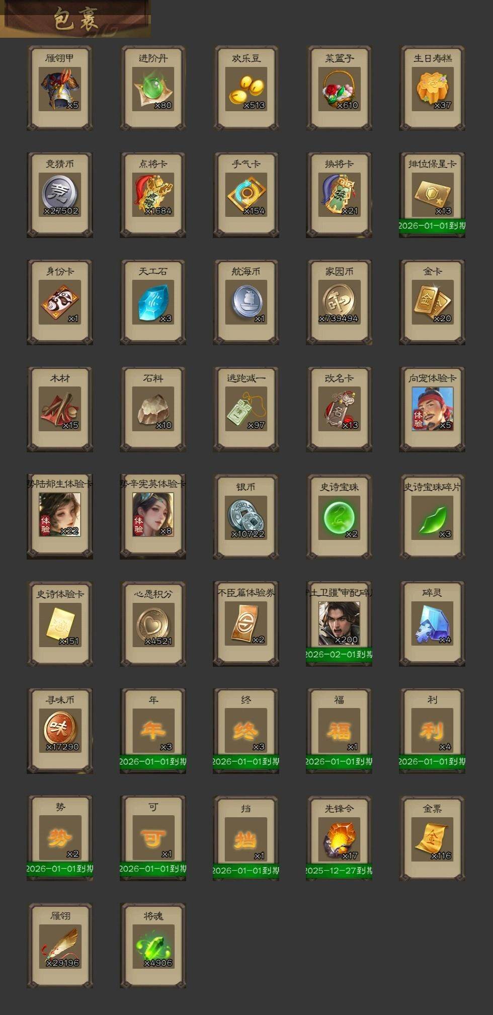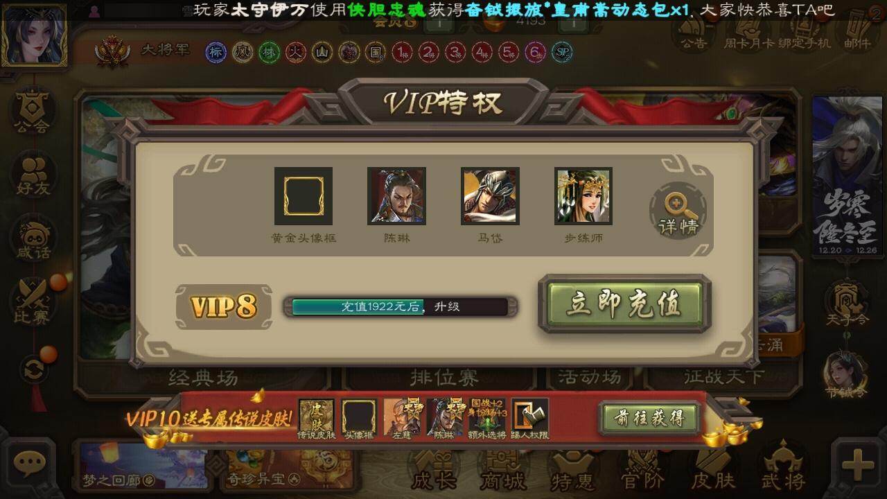 [15169528]【927】官阶:大将军;vip等级:vip8;史诗武将数量:36;动态皮肤数量:26;武将总数:370;史诗宝珠数量:2;将魂数量:4906;神将:6;魏国史诗武将:18;蜀国史诗武将:10;吴国史诗武将:3;群史诗武将:11 神吕布神赵云神关羽神吕蒙神周瑜神诸葛亮杨修魏-司马昭司马师界钟会界曹真陈琳曹纯戏志才清河公主关索谋诸葛亮谋赵云谋马超诸葛瞻赵襄张星彩沙摩柯谯周界黄忠吴景界朱然势陆郁生左慈郑玄张让司马徽审配麹义沮授界李儒李傕许攸星董卓曹丕-龙年中秋动态许褚-兔年端午动态司马懿-牛年立冬动态界司马懿-牛年立冬动态曹昂-竭战麟伤动态曹纯-虎年春节动态司马师-牛年中秋动态司马昭-昭威淮南(动态)清河公主-魅影萦心动态马超-牛年春节动态黄月英-鼠年春节动态界马超-牛年春节动态界黄月英-鼠年春节动态关索-鼠年中秋动态卧龙诸葛-火烧博望动态周处-义除三害动态孙权-牛年七夕动态陆逊-猪年圣诞动态界陆逊-猪年圣诞动态界孙权-牛年七夕动态徐盛-破军杀将动态步练师-牛年七夕动态孙茹-烟水悠悠动态孙寒华-蛇年限定动态貂蝉-鼠年七夕动态吕布-鼠年七夕动态吕布-虓虎之勇动态张角-黄天当立动态界吕布-鼠年七夕动态界吕布-虓虎之勇动态界貂蝉-鼠年七夕动态sp赵云-单骑救主动态皇甫嵩-奋钺振旅动态