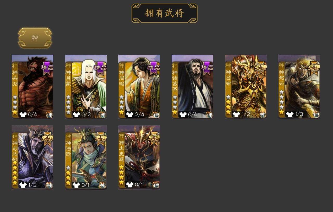 [15169574]【256】官阶:骠骑将军;vip等级:vip9;史诗武将数量:34;动态皮肤数量:21;武将总数:314;史诗宝珠数量:0;将魂数量:4732;神将:9;魏国史诗武将:16;蜀国史诗武将:11;吴国史诗武将:2;群史诗武将:11 神吕布神赵云神司马懿神陆逊神太史慈神关羽神吕蒙神周瑜神诸葛亮星周不疑界钟会界曹真曹纯戏志才清河公主谋诸葛亮谋赵云诸葛瞻周群赵襄张星彩沙摩柯谯周花鬘董允谋关羽界朱然界徐盛左慈郑玄张让星黄忠麹义界李儒公孙康谋张角张绣李傕阎象神周瑜-波澜不惊神吕布-监兵噬魅动态神赵云-神龙天降神司马懿-鉴往知来动态星周不疑-才广志宏动态星周不疑-龙年清明动态sp蔡文姬-兔年冬日动态张春华-牛年立冬动态钟会-谋谟之勋动态界钟会-谋谟之勋动态曹纯-长坂败备动态清河公主-魅影萦心动态花鬘-依心缱绻动态关羽-以身证道(动态)费祎-安民护祚(动态)周处-义除三害动态吕蒙-剑起惊澜动态孙权-冠绝天下动态徐盛-破军杀将动态鲁肃-蛇年端午动态李儒-业火毒计动态麹义-扬刀立威动态皇甫嵩-奋钺振旅动态左慈-蛇年限定动态