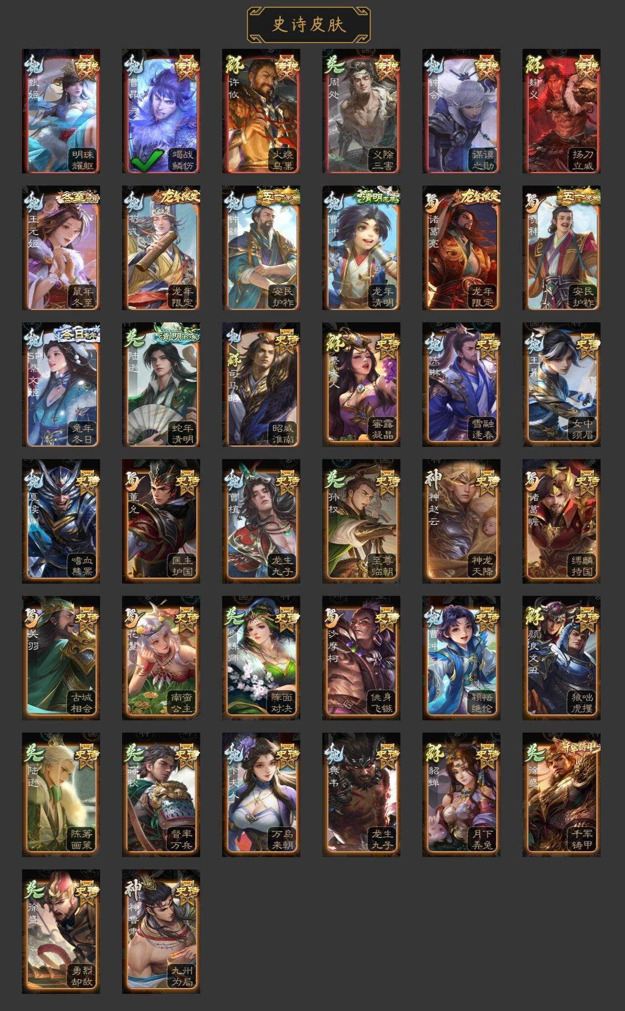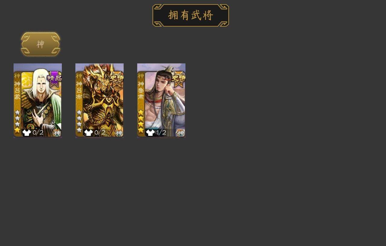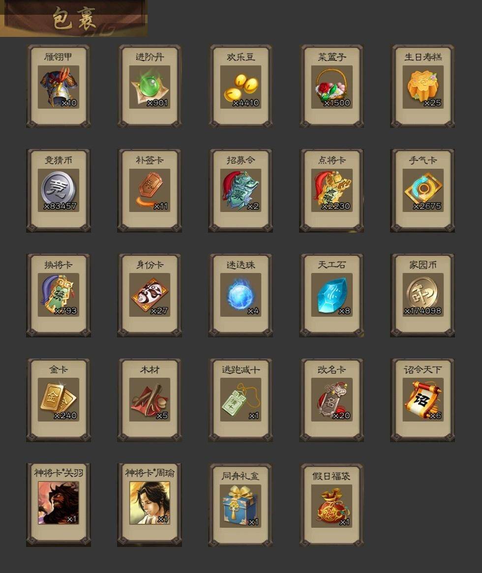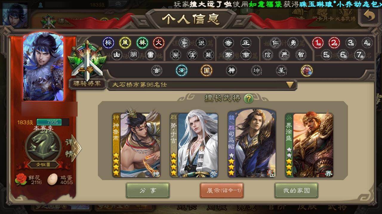 [15169617]【693】官阶:骠骑将军;vip等级:vip6;史诗武将数量:33;动态皮肤数量:13;武将总数:289;史诗宝珠数量:0;将魂数量:0;神将:2;魏国史诗武将:16;蜀国史诗武将:9;吴国史诗武将:2;群史诗武将:14 神吕布神鲁肃星周不疑王元姬界钟会界曹真曹纯戏志才程昱谋赵云谋马超诸葛瞻赵襄王平沙摩柯谯周界黄忠花鬘吴景界徐盛左慈郑玄星黄忠麹义界左慈公孙康卑弥呼谋张角许攸势于吉星董卓兀突骨司马昭神吕蒙sp关羽乐进曹昂诸葛诞朱灵文聘sp姜维张春华钟会曹冲郭淮满宠界王异界曹操界司马懿界夏侯惇界张辽界许褚界郭嘉李典曹真韩浩史涣陈群曹叡钟繇司马朗李通郭皇后孙资刘放辛宪英吕虔鲁芝界荀彧杜畿张恭界曹植界满宠界郭淮卞夫人华歆蔡贞姬袁涣崔琰毛玠谋徐晃谋于禁界曹休牵招胡班司马孚谋郭嘉界夏侯渊臧霸sp孙尚香关银屏夏侯霸马良关兴张苞廖化界马岱关平刘封界法正界关兴张苞界刘备界关羽界张飞界赵云sp徐庶吴懿周仓张松刘谌夏侯氏糜竺马忠李严黄皓界黄月英界诸葛亮界伊籍界庞统张翼杨仪邓芝陈震费祎糜夫人谋庞统界张嶷谋张飞吴班霍峻诸葛果蒋琬费祎甘夫人鲁肃凌操大乔小乔诸葛恪诸葛瑾孙鲁育程普韩当潘璋马忠虞翻界甘宁界吕蒙界黄盖界周瑜界大乔界陆逊孙鲁班朱桓顾雍孙休朱治界孙权潘濬周鲂界孙策许贡界虞翻桥公张温陈武董袭界孙鲁班谋韩当谋吕蒙谋周瑜界全琮谋小乔张布友庞统伏完刘协界袁术sp赵云张宝伏皇后李儒界于吉华雄袁术界华佗界吕布公孙瓒蔡夫人公孙渊严白虎sp黄月英董白刘虞曹节界貂蝉界庞德樊稠刘繇张绣星徐晃界公孙瓒胡车儿羊祜高览马元义界蔡夫人谋刘赪马日磾王濬谋卢植谋华雄贾充李傕郭汜神赵云-神龙天降神鲁肃-九州为局甄姬-明珠耀躯动态荀彧-龙年限定动态钟会-谋谟之勋动态曹冲-龙年清明动态钟繇-安民护祚动态曹昂-竭战麟伤动态sp蔡文姬-兔年冬日动态王元姬-鼠年冬至动态诸