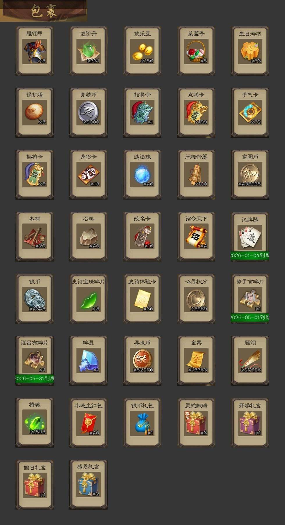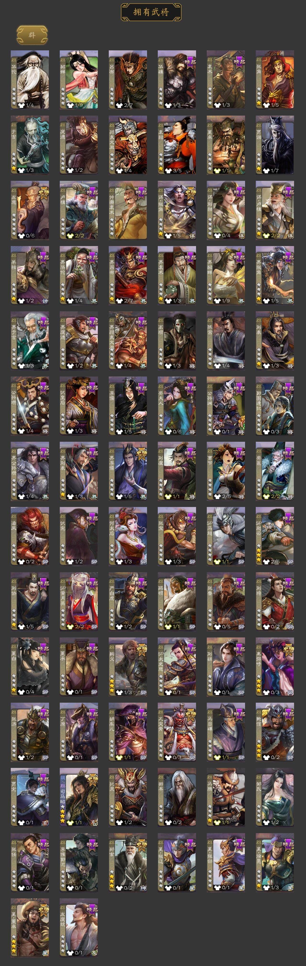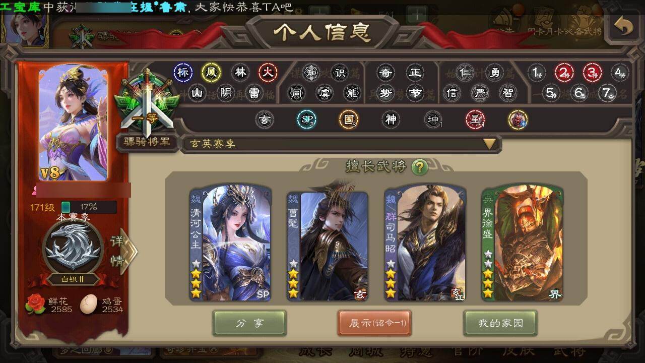 [15169657]【1022】官阶:骠骑将军;vip等级:vip8;史诗武将数量:31;动态皮肤数量:21;武将总数:318;史诗宝珠数量:0;将魂数量:1593;神将:4;魏国史诗武将:12;蜀国史诗武将:8;吴国史诗武将:5;群史诗武将:10 神吕布神赵云神刘备神诸葛亮曹髦星周不疑界钟会曹纯戏志才清河公主程昱关索谋赵云谋马超赵襄王平沙摩柯谯周花鬘界朱然界徐盛贺齐文鸯左慈郑玄麹义界李儒卑弥呼谋张角星董卓兀突骨司马昭神吕蒙神周瑜势夏侯尚sp关羽sp蔡文姬乐进曹昂诸葛诞朱灵文聘sp姜维钟会曹冲郭淮满宠界王异界曹操界司马懿界夏侯惇界张辽界许褚界郭嘉李典曹真韩浩史涣陈群曹叡钟繇司马朗王基李通界甄姬吕虔鲁芝界荀彧界徐晃杜畿界曹丕界邓艾张恭界曹植界满宠卞夫人蔡贞姬袁涣崔琰谋于禁谋荀彧牵招胡班谋郭嘉谋夏侯渊牛金界夏侯渊臧霸董昭sp孙尚香关银屏夏侯霸马良关兴张苞廖化界马岱关平简雍刘封界法正界关兴张苞界刘备界关羽界张飞界赵云sp徐庶吴懿周仓张松刘谌糜竺马忠李严黄皓界黄月英界诸葛亮赵统赵广严颜界伊籍界庞统陈到界姜维吕凯杨仪界简雍陈震费祎糜夫人王甫赵累界周仓宗预彭羕谋庞统谋黄月英谋张飞谋祝融李遗霍峻诸葛果甘夫人凌操诸葛恪诸葛瑾孙鲁育程普韩当潘璋马忠虞翻朱然界甘宁界吕蒙界黄盖界周瑜界大乔界陆逊孙鲁班朱桓顾雍孙休朱治阚泽孙登界孙权严畯吕岱周妃界张昭张纮许贡孙邵陈武董袭蒋钦吕范界顾雍界孙鲁班谋韩当谋周瑜界全琮界朱治谋小乔张布界小乔友庞统伏完刘协界袁术sp赵云张宝伏皇后李儒界于吉界张角华雄袁术界华佗界吕布公孙瓒蔡夫人公孙渊郭图逢纪张鲁蹋顿严白虎sp黄月英董白刘虞曹节蔡邕界貂蝉sp太史慈卢植刘琦界庞德界颜良文丑张济刘繇董承界刘表星张辽星徐晃星张郃界公孙瓒丁原胡车儿羊祜谋刘赪马日磾谋卢植鲍信贾充张任李傕郭汜仲帝袁术神赵云-战龙在野动态神吕蒙-心生万象神