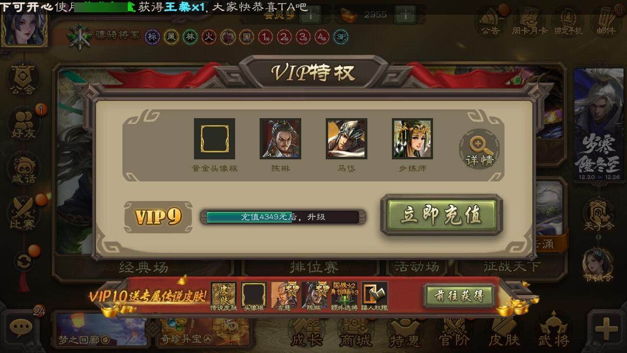 [15169914]【903】官阶:骠骑将军;vip等级:vip9;史诗武将数量:28;动态皮肤数量:28;武将总数:314;史诗宝珠数量:4;将魂数量:3106;神将:4;魏国史诗武将:20;蜀国史诗武将:6;吴国史诗武将:4;群史诗武将:11 神吕布神赵云神吕蒙神周瑜曹髦星周不疑魏-司马昭界钟会郝昭曹婴曹纯戏志才谋诸葛亮谋赵云谋马超王平沙摩柯花鬘吴景骆统界徐盛势陆郁生谋郭嘉裴秀左慈麹义沮授界李儒鲍信张绣李傕友徐庶星董卓神太史慈-勇撼日月动态神孙策-霸王再世动态神周瑜-波澜不惊郭嘉-以身证道(动态)钟会-龙年端午(动态)曹丕-气荡山河(动态)甄姬-明珠耀躯(动态)曹叡-睥睨天下动态曹婴-兔年春节动态曹纯-虎年春节动态司马昭-昭威淮南(动态)星徐晃-斧引霹雳动态清河公主-魅影萦心动态花鬘-依心缱绻动态关银屏-鼠年中秋动态诸葛果-蛇年限定动态卧龙诸葛-火烧博望动态孙茹-龙年七夕动态周处-义除三害动态陆逊-龙年七夕动态孙权-永开吴祚动态徐盛-破军杀将动态陆逊-蛇年清明动态骆统-落笔生花动态麹义-扬刀立威动态李儒-鸠杀少帝动态界李儒-鸠杀少帝动态左慈-蛇年限定动态
