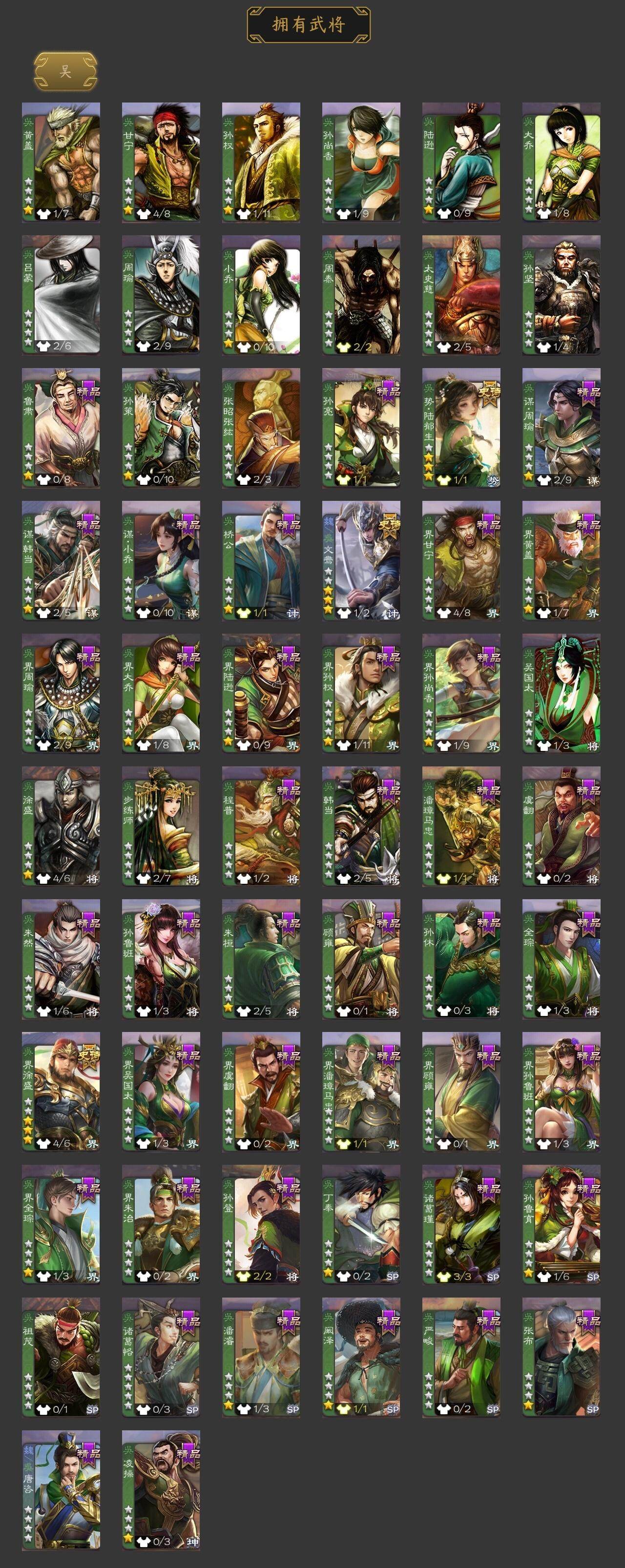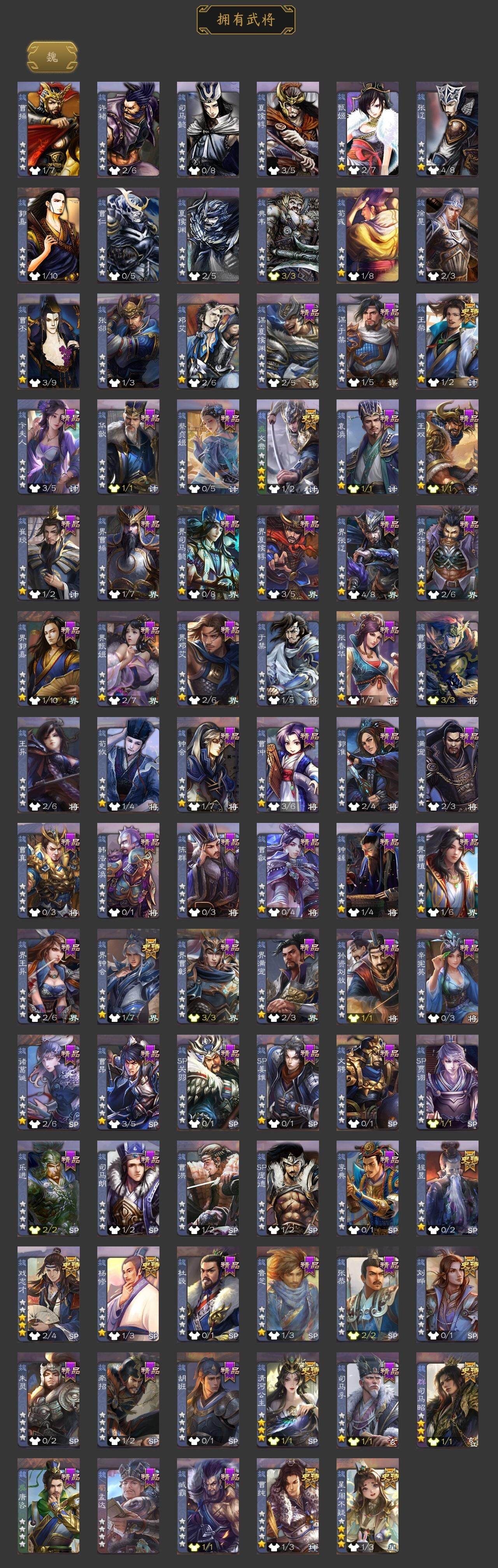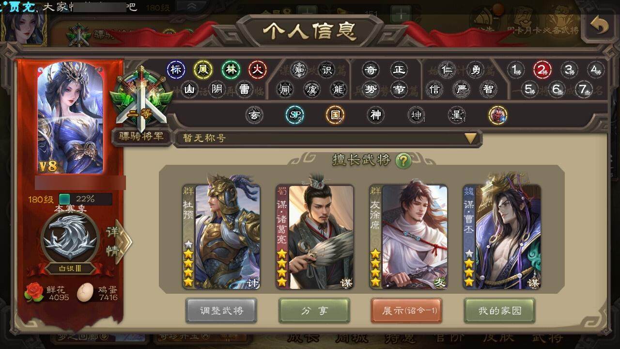 [15170085]【700】官阶:骠骑将军;vip等级:vip8;史诗武将数量:30;动态皮肤数量:21;武将总数:292;史诗宝珠数量:9;将魂数量:2090;神将:4;魏国史诗武将:14;蜀国史诗武将:7;吴国史诗武将:2;群史诗武将:10 神赵云神吕蒙神周瑜神诸葛亮星周不疑王粲杨修文鸯魏-司马昭界钟会曹纯戏志才刘晔清河公主谋诸葛亮谋赵云谋马超赵襄张星彩界黄忠花鬘界徐盛势陆郁生谋黄月英左慈张让麹义界左慈界李儒公孙康杜预友徐庶星董卓神周瑜-波澜不惊神吕蒙-心生万象星周不疑-才广志宏动态钟繇-安民护祚(动态)曹丕-猪年端午动态曹纯-虎年春节动态司马昭-昭威淮南(动态)星徐晃-斧引霹雳动态清河公主-魅影萦心动态诸葛亮-国之柱石(动态)马超-虎年冬至动态周处-义除三害动态吕蒙-剑起惊澜动态徐盛-破军杀将动态孙寒华-蛇年限定动态文鸯-势若万钧动态麹义-扬刀立威动态sp赵云-威名尽显动态左慈-蛇年限定动态