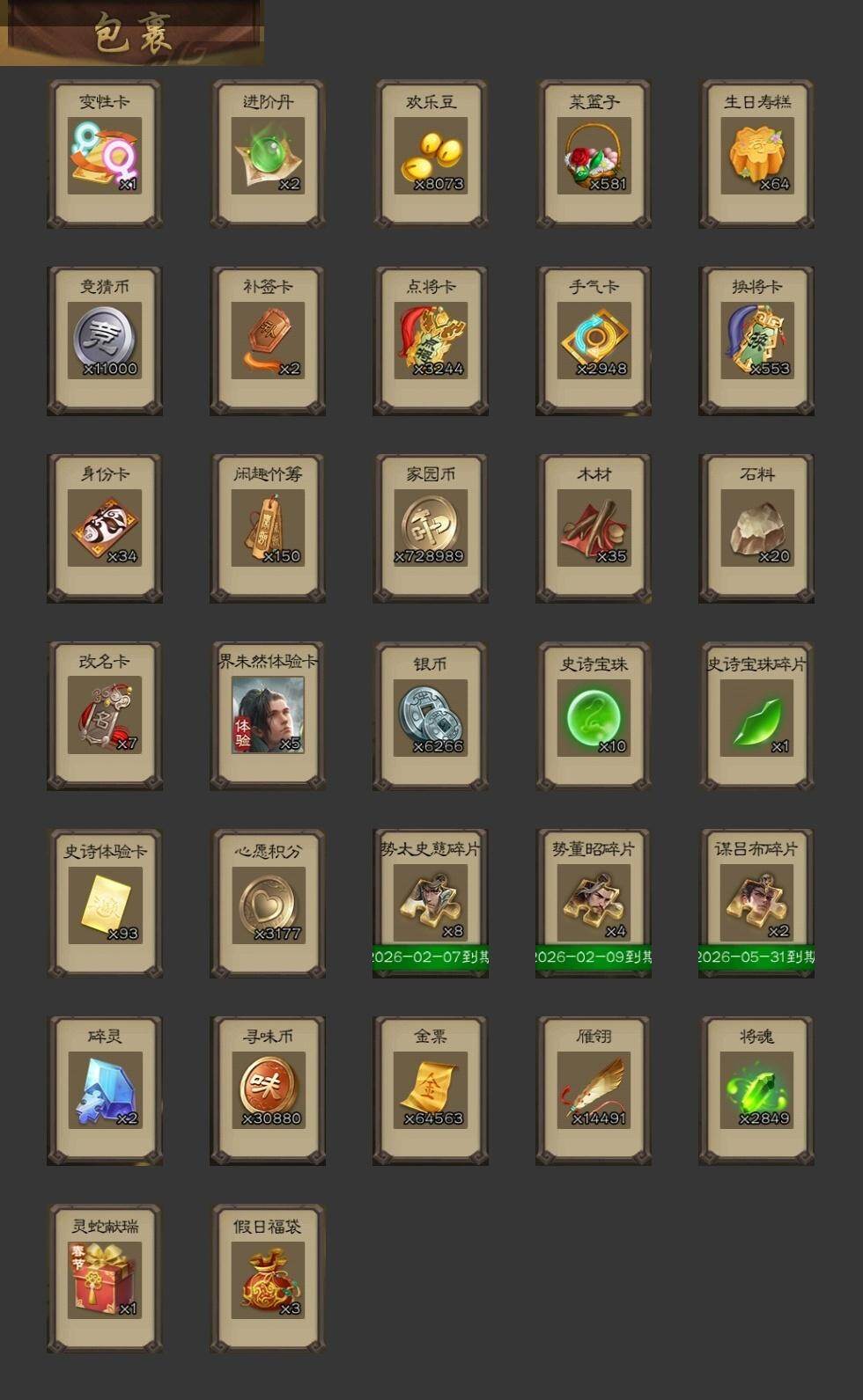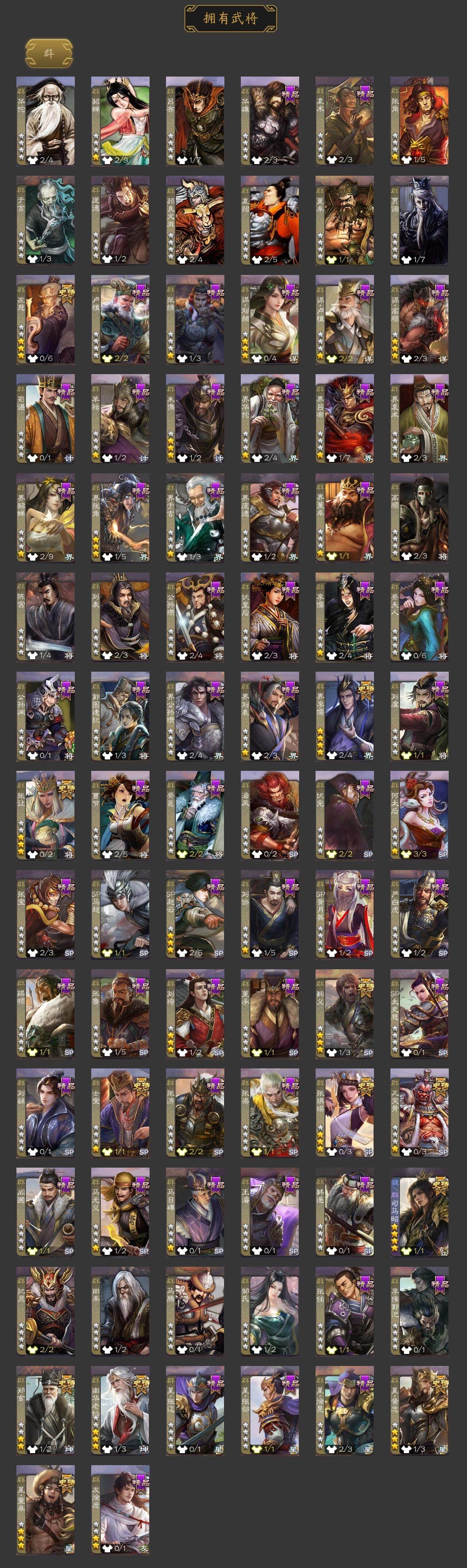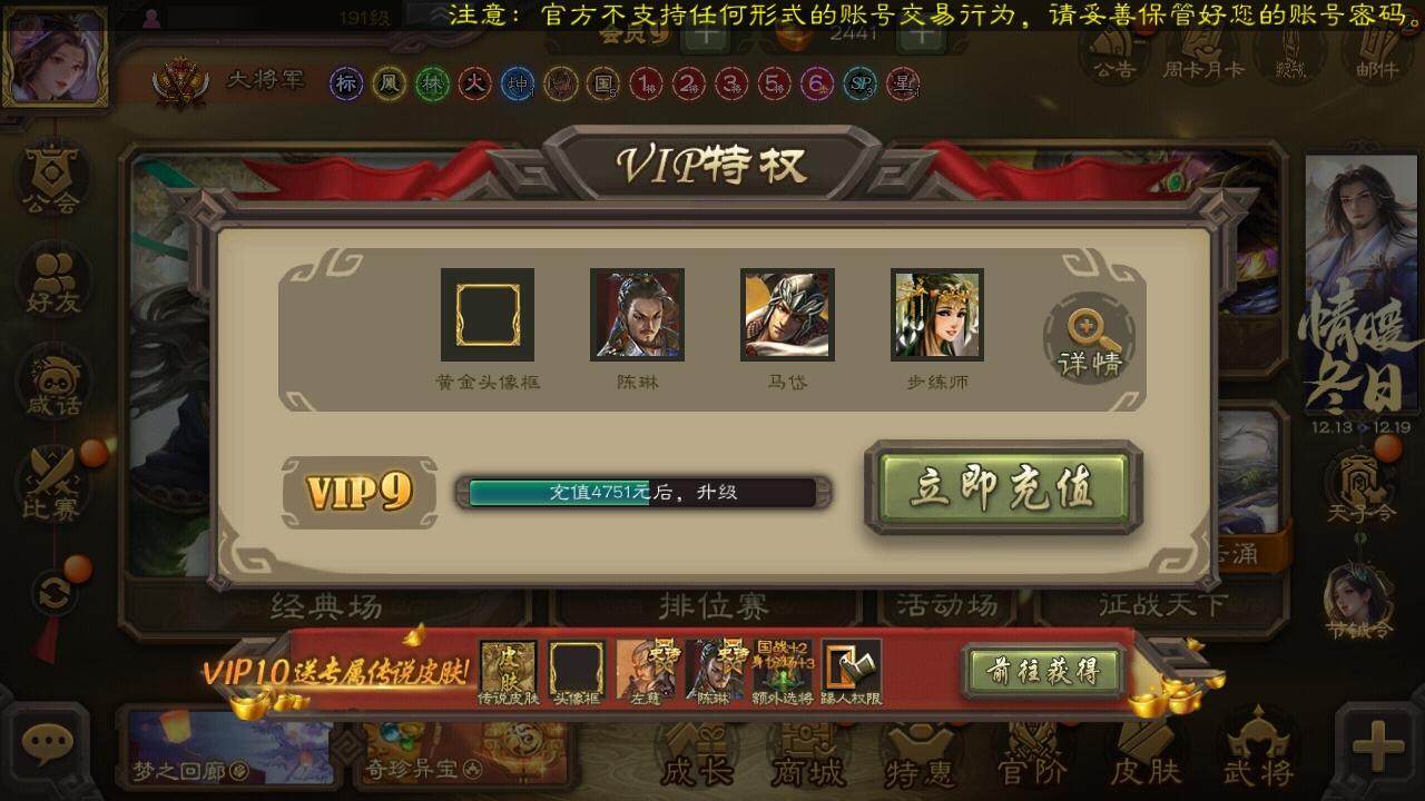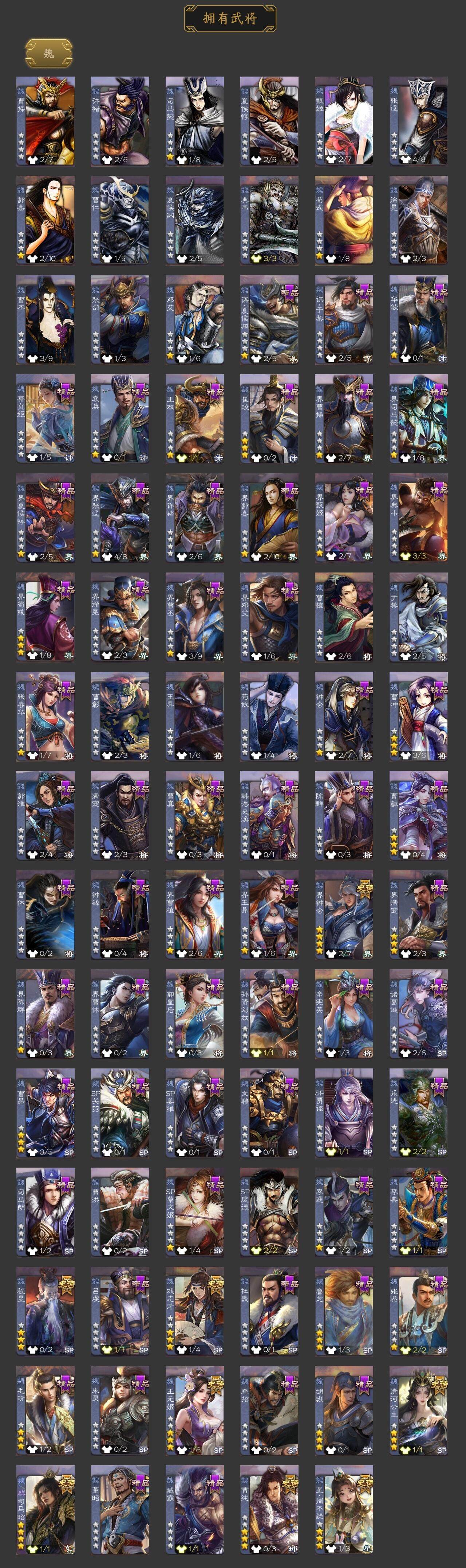 [15170159]【360】官阶:大将军;vip等级:vip9;史诗武将数量:31;动态皮肤数量:27;武将总数:338;史诗宝珠数量:10;将魂数量:2849;神将:5;魏国史诗武将:22;蜀国史诗武将:6;吴国史诗武将:3;群史诗武将:11 神吕布神赵云神陆逊神吕蒙神周瑜星周不疑王元姬魏-司马昭界钟会曹纯戏志才清河公主谋赵云谋马超赵襄谯周花鬘董允留赞界徐盛贺齐左慈郑玄张让张琪瑛星黄忠麹义南华老仙界李儒张绣友徐庶星董卓神曹操-玄天通冥动态星周不疑-才广志宏动态张昌蒲-龙年端午(动态)曹植-龙年中秋动态曹丕-气荡山河(动态)甄姬-明珠耀躯(动态)曹冲-五陵英少动态曹婴-兔年春节动态王元姬-鼠年冬至动态司马昭-昭威淮南(动态)星徐晃-斧引霹雳动态清河公主-魅影萦心动态夏侯氏-明良千古动态诸葛果-蛇年限定动态周处-义除三害动态孙权-永开吴祚动态孙寒华-莲华熠熠动态孙尚香-兔年春节动态大乔-猪年七夕动态界大乔-猪年七夕动态徐盛-破军杀将动态刘赞-灵魂歌王动态麹义-扬刀立威动态李儒-鸠杀少帝动态界李儒-鸠杀少帝动态何太后-蛇蝎为心动态南华老仙-野鹤闲云动态sp赵云-威名尽显动态