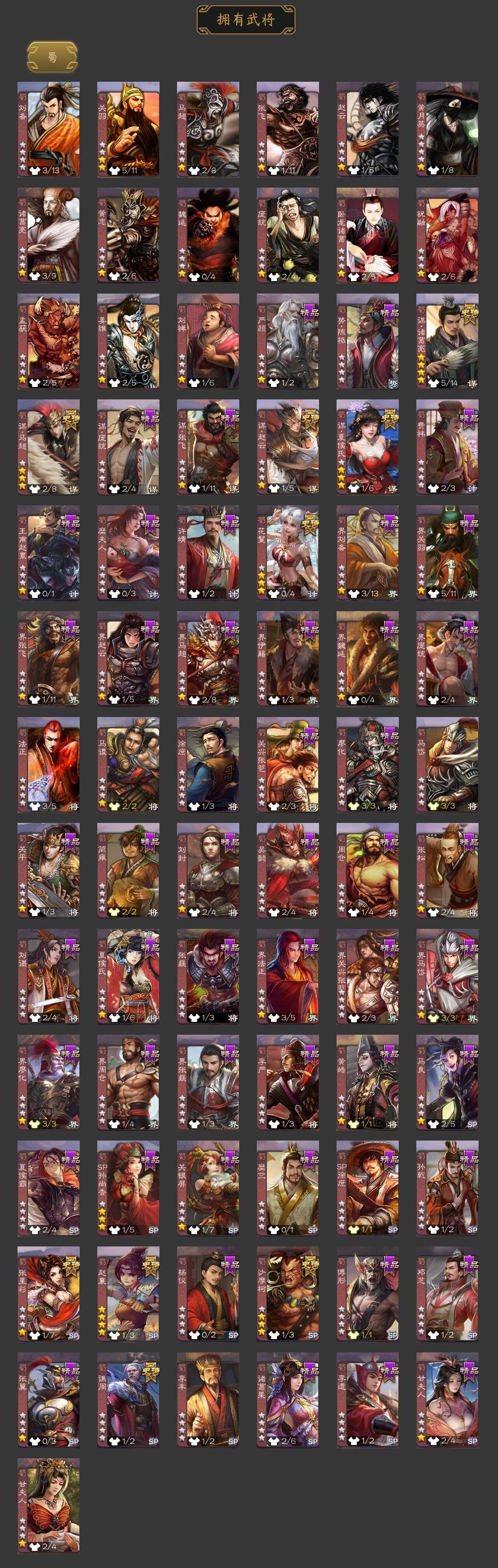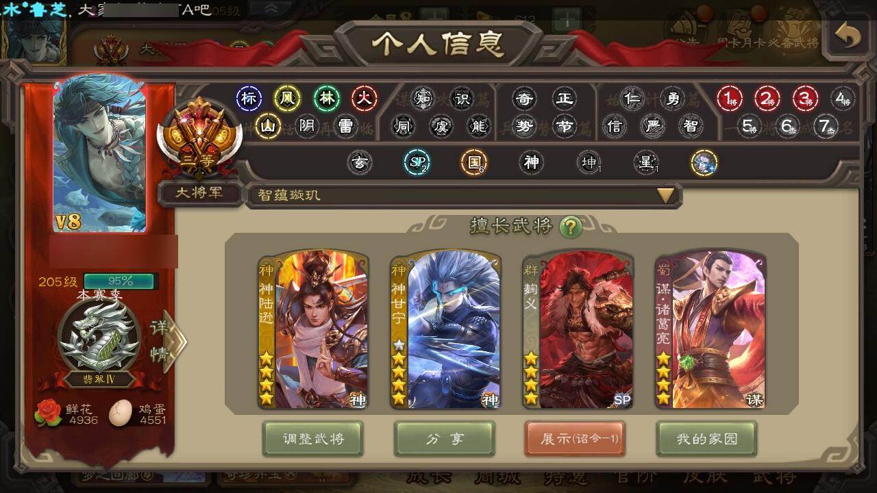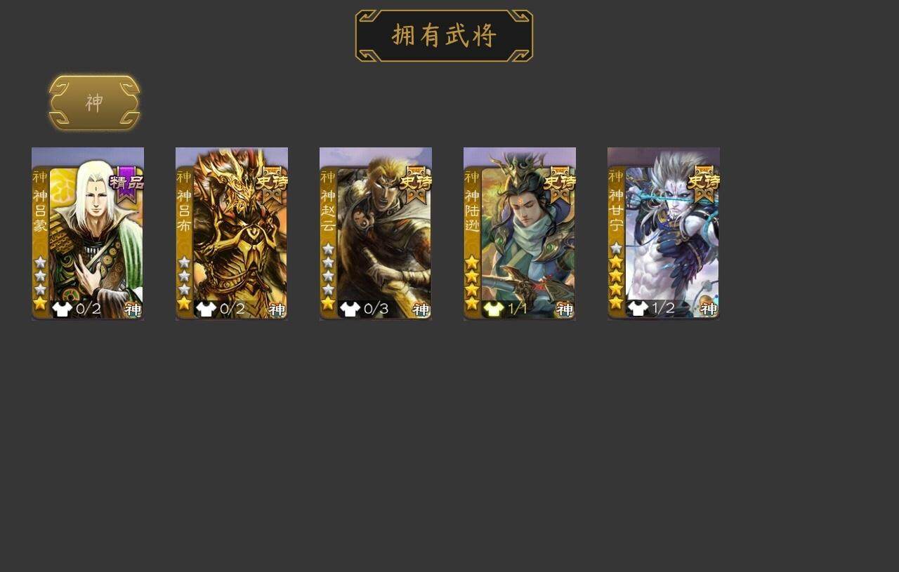 [15170520]【941】官阶:大将军;vip等级:vip8;史诗武将数量:33;动态皮肤数量:28;武将总数:324;史诗宝珠数量:0;将魂数量:740;神将:5;魏国史诗武将:18;蜀国史诗武将:9;吴国史诗武将:1;群史诗武将:12 神吕布神赵云神陆逊神甘宁神吕蒙星周不疑界钟会界于禁曹纯戏志才谋夏侯惇清河公主势辛宪英谋诸葛亮谋夏侯氏谋赵云谋马超赵襄张星彩沙摩柯谯周花鬘界徐盛左慈张让星甘宁司马徽麹义界李儒卑弥呼谋张角李傕阎象友徐庶星董卓神甘宁-万人辟易动态神陆逊-绽焰摧枯动态星周不疑-才广志宏动态星周不疑-龙年清明动态甄姬-明珠耀躯(动态)sp蔡文姬-兔年冬日动态钟会-谋谟之勋动态界钟会-谋谟之勋动态戏志才-举棋若定动态曹纯-虎年春节动态清河公主-魅影萦心动态费祎-安民护祚(动态)关羽-明良千古动态诸葛果-蛇年限定动态卧龙诸葛-火烧博望动态周处-义除三害动态吕蒙-剑起惊澜动态孙权-永开吴祚动态陆逊-蛇年清明动态麹义-扬刀立威动态吕布-鼠年七夕动态界吕布-鼠年七夕动态星甘宁-锦帆游侠动态