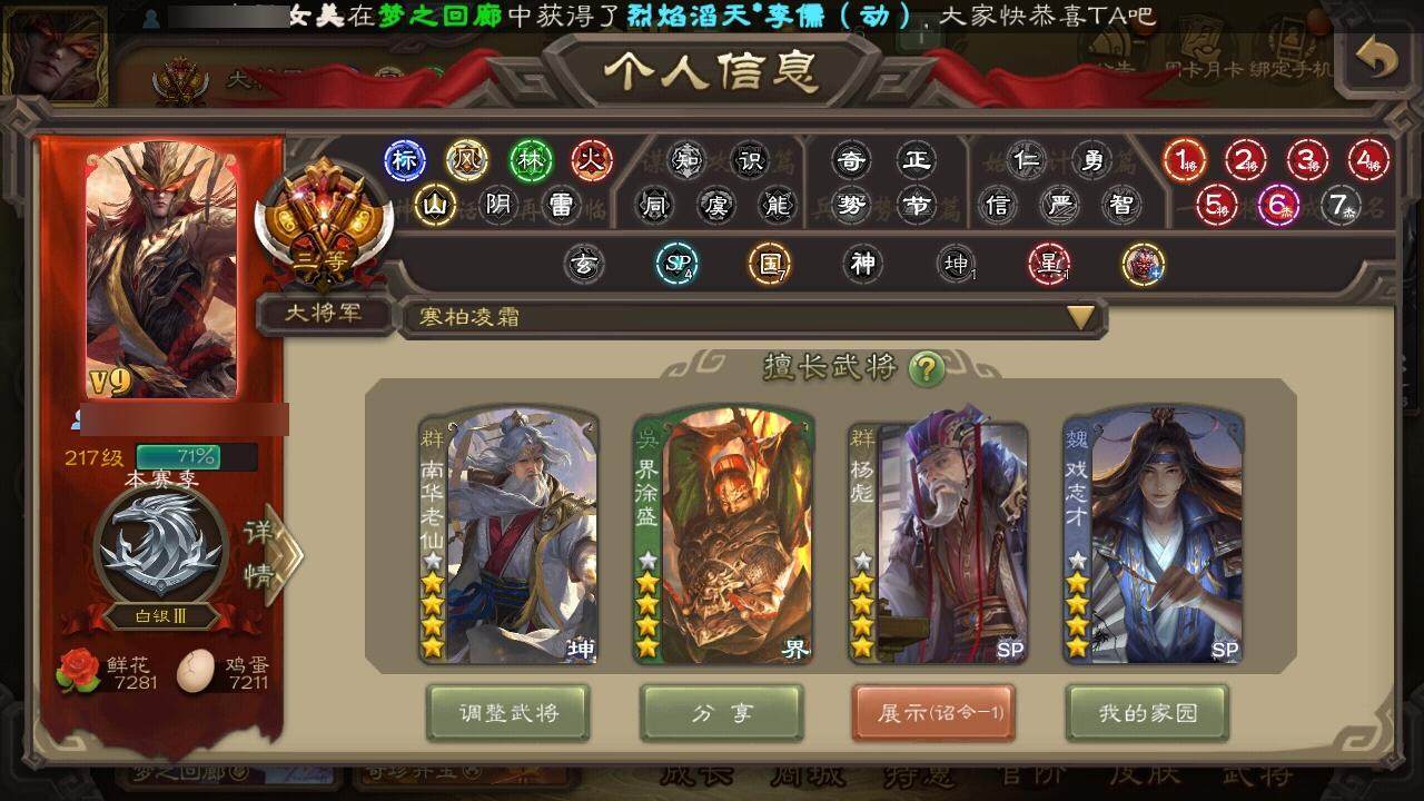 [15170537]【891】官阶:大将军;vip等级:vip9;史诗武将数量:39;动态皮肤数量:37;武将总数:382;史诗宝珠数量:2;将魂数量:4270;神将:4;魏国史诗武将:22;蜀国史诗武将:10;吴国史诗武将:5;群史诗武将:11 神赵云神吕蒙神周瑜神诸葛亮郭女王星周不疑杨修王元姬界钟会界于禁郝昭陈琳曹纯戏志才谋赵云谋马超诸葛瞻张星彩王平沙摩柯谯周界黄忠花鬘董允孙皓骆统界徐盛贺齐势陆郁生星魏延左慈张让杨彪苏飞麹义南华老仙沮授公孙康许攸星董卓神太史慈-勇撼日月动态神诸葛亮-风舞魔鸟动态神曹操-天下归心神赵云-神龙天降星周不疑-才广志宏动态钟繇-安民护祚(动态)曹丕-气荡山河(动态)甄姬-明珠耀躯(动态)sp蔡文姬-兔年冬日动态邓艾-神兵天降动态界邓艾-神兵天降动态张春华-雪中舞刃动态戏志才-举棋若定动态曹纯-长坂败备动态司马昭-昭威淮南(动态)星徐晃-斧引霹雳动态孟获-祸崇南疆动态刘备-龙御天下动态马超-牛年春节动态赵云-牛年春节动态诸葛瞻-绵竹之殇动态界赵云-牛年春节动态界马超-牛年春节动态马云騄-牛年春节动态甘夫人-为君担忧动态周处-义除三害动态孙权-永开吴祚动态孙策-虎踞江东动态孙权-牛年七夕动态孙尚香-兔年春节动态界孙权-牛年七夕动态徐盛-破军杀将动态孙鲁育-猪年春节动态曹节-龙年中秋动态灵雎-霜刃绚练动态袁绍-声震寰宇动态南华老仙-冠绝天下动态麹义-扬刀立威动态sp貂蝉-驭魂千机动态皇甫嵩-奋钺振旅动态左慈-蛇年限定动态