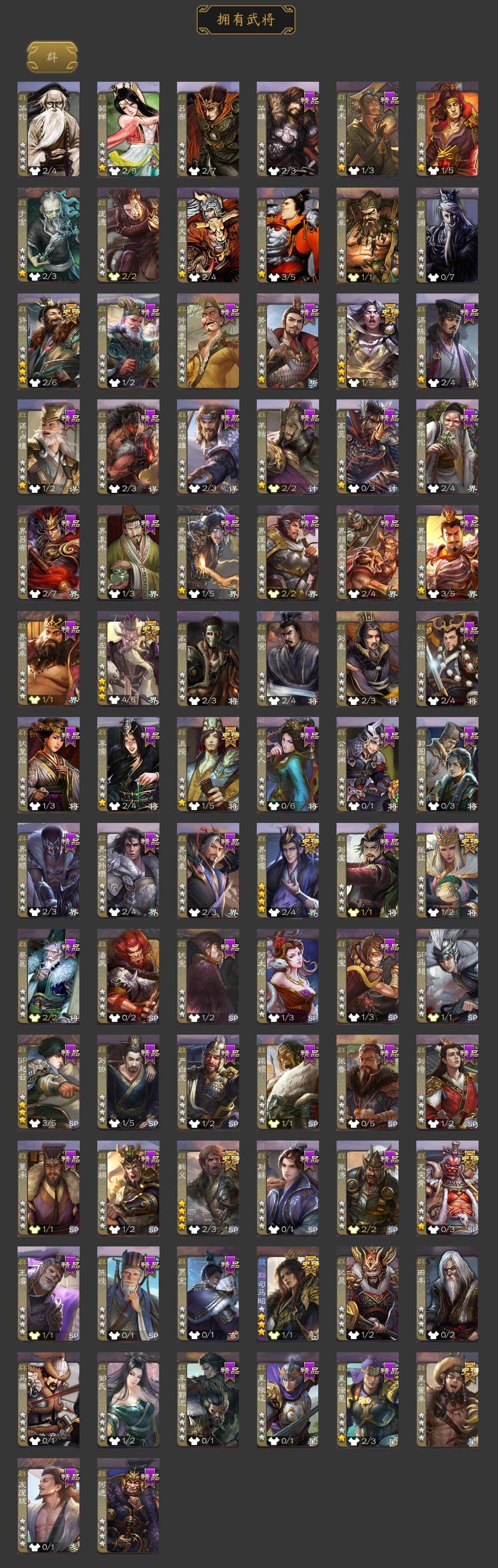 [15170571]【586】官阶:大将军;vip等级:vip8;史诗武将数量:31;动态皮肤数量:35;武将总数:341;史诗宝珠数量:1;将魂数量:1501;神将:5;魏国史诗武将:19;蜀国史诗武将:7;吴国史诗武将:5;群史诗武将:11 神吕布神陆逊神太史慈神吕蒙神诸葛亮星周不疑王粲魏-司马昭界钟会曹纯清河公主谋诸葛亮谋赵云诸葛瞻沙摩柯谯周界黄忠花鬘周处骆统留赞界徐盛势陆郁生谋黄月英谋荀彧张让麹义沮授界左慈界李儒谋张角许攸陈珪星董卓神太史慈-勇撼日月动态神张辽-散敌擒孙神吕蒙-心生万象星周不疑-才广志宏动态钟会-潜蛟觊天动态曹丕-气荡山河(动态)甄姬-明珠耀躯(动态)sp蔡文姬-兔年冬日动态朱灵-以战破氐动态司马昭-昭威淮南(动态)张辽-龙生九子(动态)星徐晃-斧引霹雳动态清河公主-魅影萦心动态诸葛亮-龙年限定动态刘备-明良千古动态黄月英-木牛流马动态界刘备-明良千古动态界黄月英-木牛流马动态关索-虎年七夕动态诸葛果-蛇年限定动态卧龙诸葛-火烧博望动态太史慈-涤荡江东动态周处-义除三害动态吕蒙-剑起惊澜动态陆逊-龙年七夕动态孙权-永开吴祚动态孙权-冠绝天下动态孙尚香-星流霆击动态界孙尚香-星流霆击动态徐盛-破军杀将动态周瑜-蛇年端午动态鲁肃-蛇年端午动态骆统-落笔生花动态灵雎-霜刃绚练动态袁绍-声震寰宇动态麹义-扬刀立威动态左慈-役使鬼神动态李儒-鸠杀少帝动态界李儒-鸠杀少帝动态sp赵云-威名尽显动态皇甫嵩-奋钺振旅动态左慈-蛇年限定动态