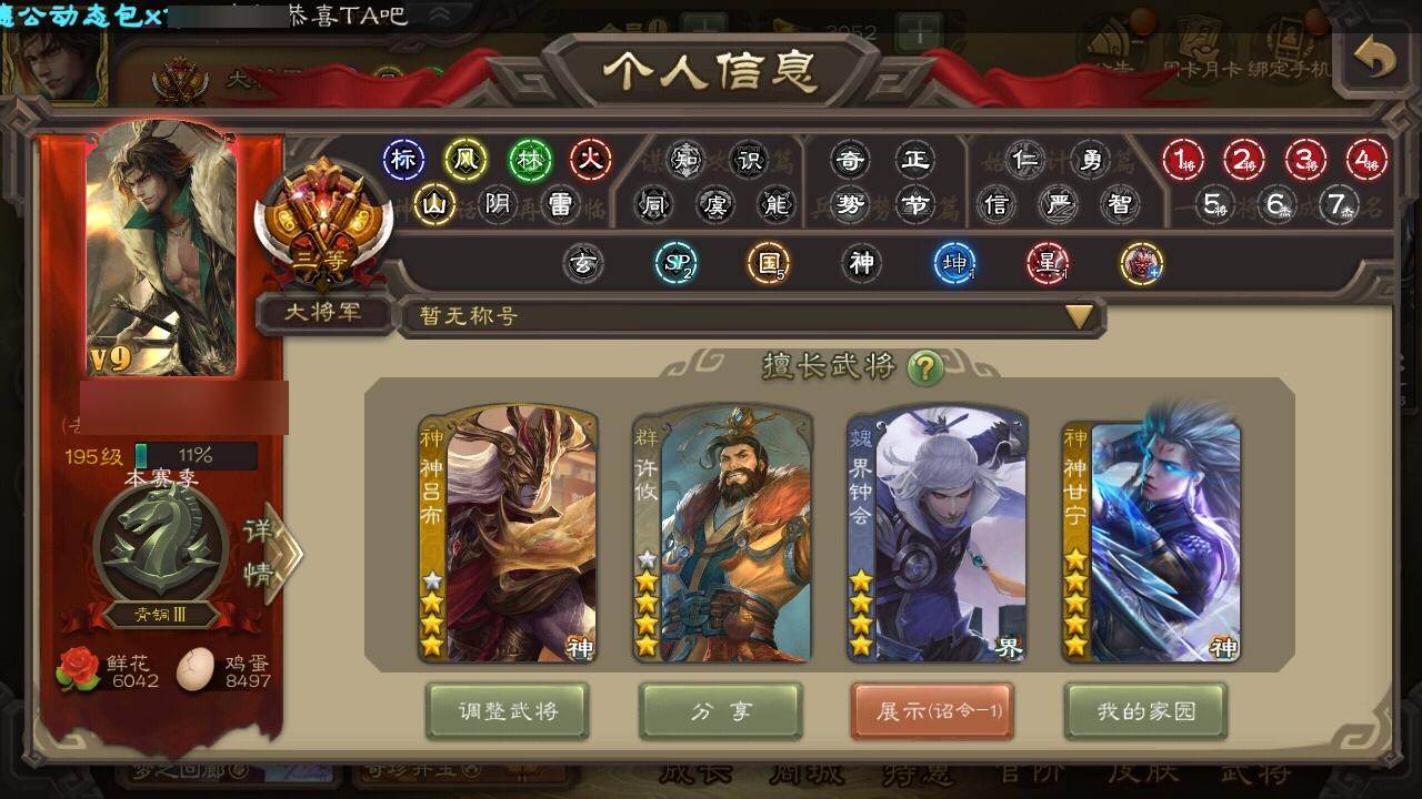 [15170739]【396】官阶:大将军;vip等级:vip9;史诗武将数量:38;动态皮肤数量:31;武将总数:344;史诗宝珠数量:1;将魂数量:1478;神将:9;魏国史诗武将:18;蜀国史诗武将:7;吴国史诗武将:6;群史诗武将:14 神吕布神赵云神甘宁神张辽神太史慈神关羽神吕蒙神周瑜神诸葛亮王粲杨修王元姬魏-司马昭界钟会郝昭曹纯马云騄谋赵云谋马超沙摩柯谯周界黄忠花鬘周处骆统留赞界朱然界徐盛贺齐谋郭嘉裴秀左慈苏飞麹义南华老仙沮授界李儒公孙康谋张角张绣李傕许攸星董卓神荀彧-虎年清明动态神吕蒙-心生万象神甘宁-万人辟易动态神吕布-冠绝天下动态神赵云-神龙天降星周不疑-才广志宏动态曹植-龙年中秋动态钟会-谋谟之勋动态界钟会-谋谟之勋动态曹纯-虎年春节动态王元姬-鼠年冬至动态司马昭-昭威淮南(动态)司马懿-重张区宇(动态)诸葛诞-寿春举义(动态)刘备-明良千古动态关羽-明良千古动态黄月英-虎年中秋动态诸葛亮-明良千古动态界刘备-明良千古动态界诸葛亮-明良千古动态张星彩-虎年端午动态鲍三娘-虎年七夕动态李丰-太仓聚粟动态卧龙诸葛-火烧博望动态孙权-永开吴祚动态孙策-虎踞江东动态孙权-吴王六剑动态孙尚香-星流霆击动态大乔-猪年七夕动态界大乔-猪年七夕动态界孙权-吴王六剑动态界孙尚香-星流霆击动态高顺-每战必克动态灵雎-霜刃绚练动态南华老仙-冠绝天下动态貂蝉-鼠年七夕动态袁绍-一往无前动态许攸-盛气凌人动态界貂蝉-鼠年七夕动态李儒-鸠杀少帝动态界李儒-鸠杀少帝动态左慈-蛇年限定动态