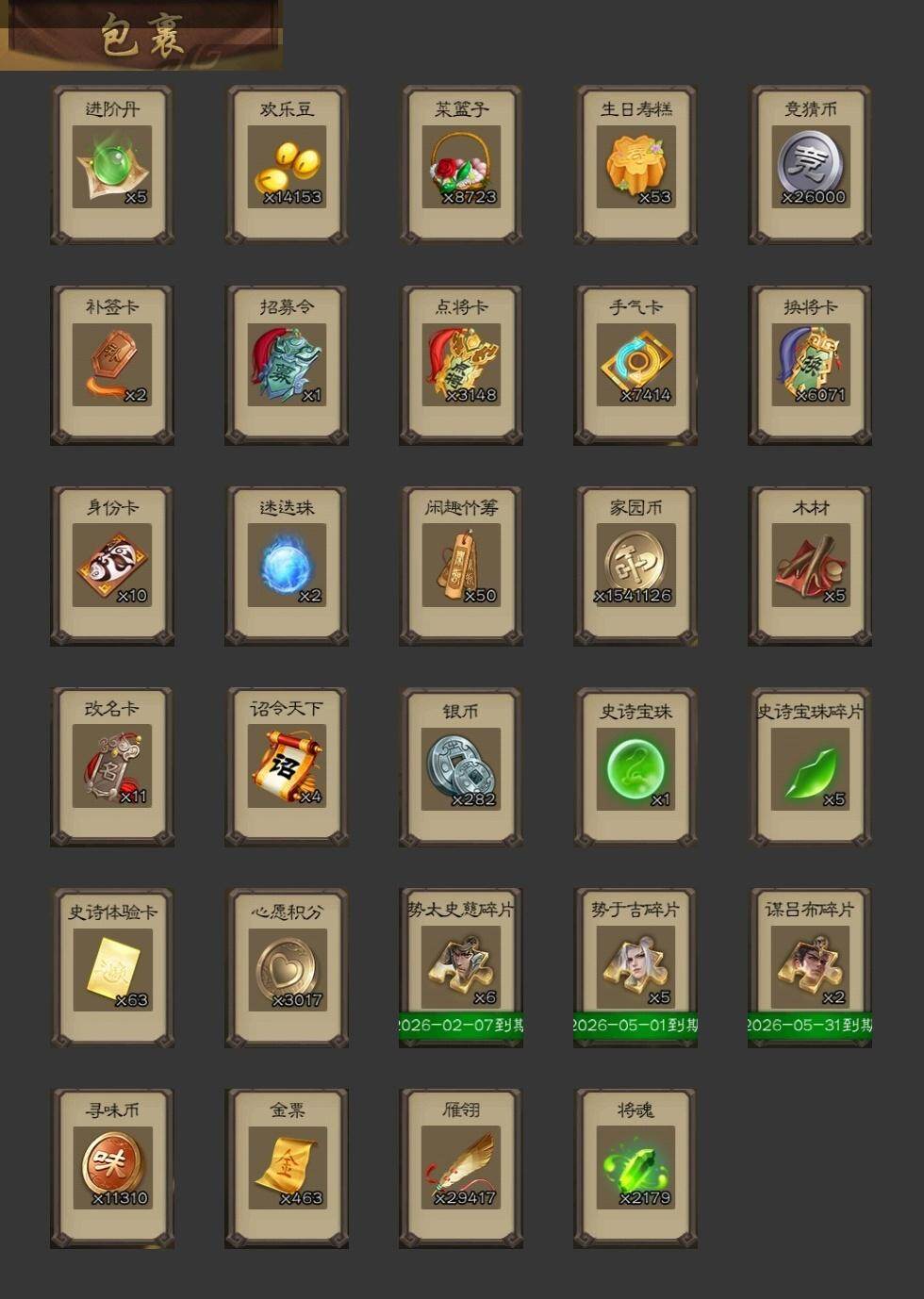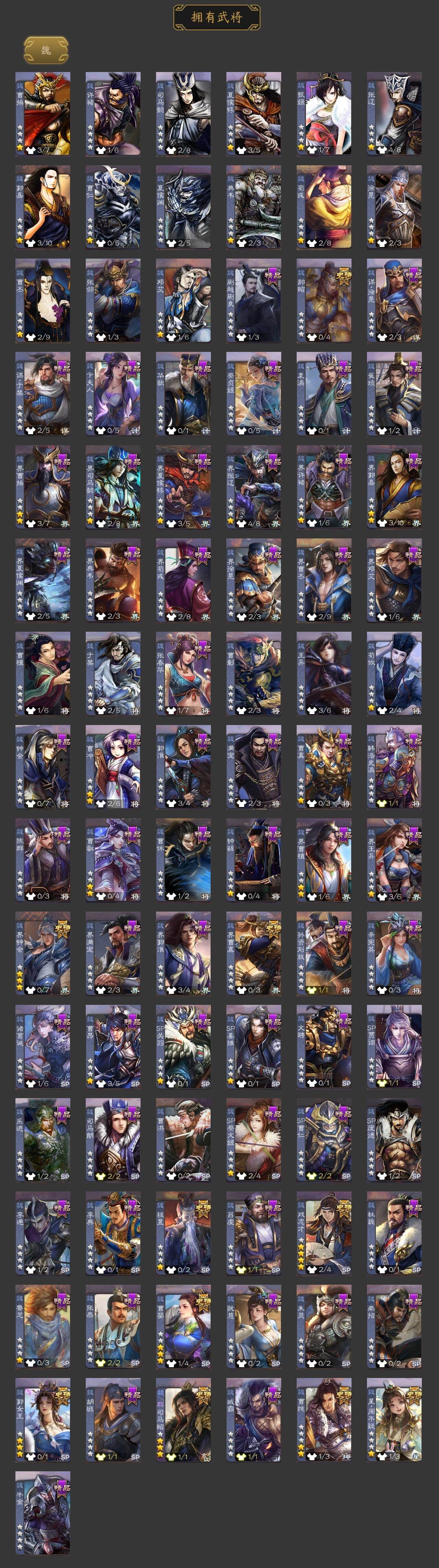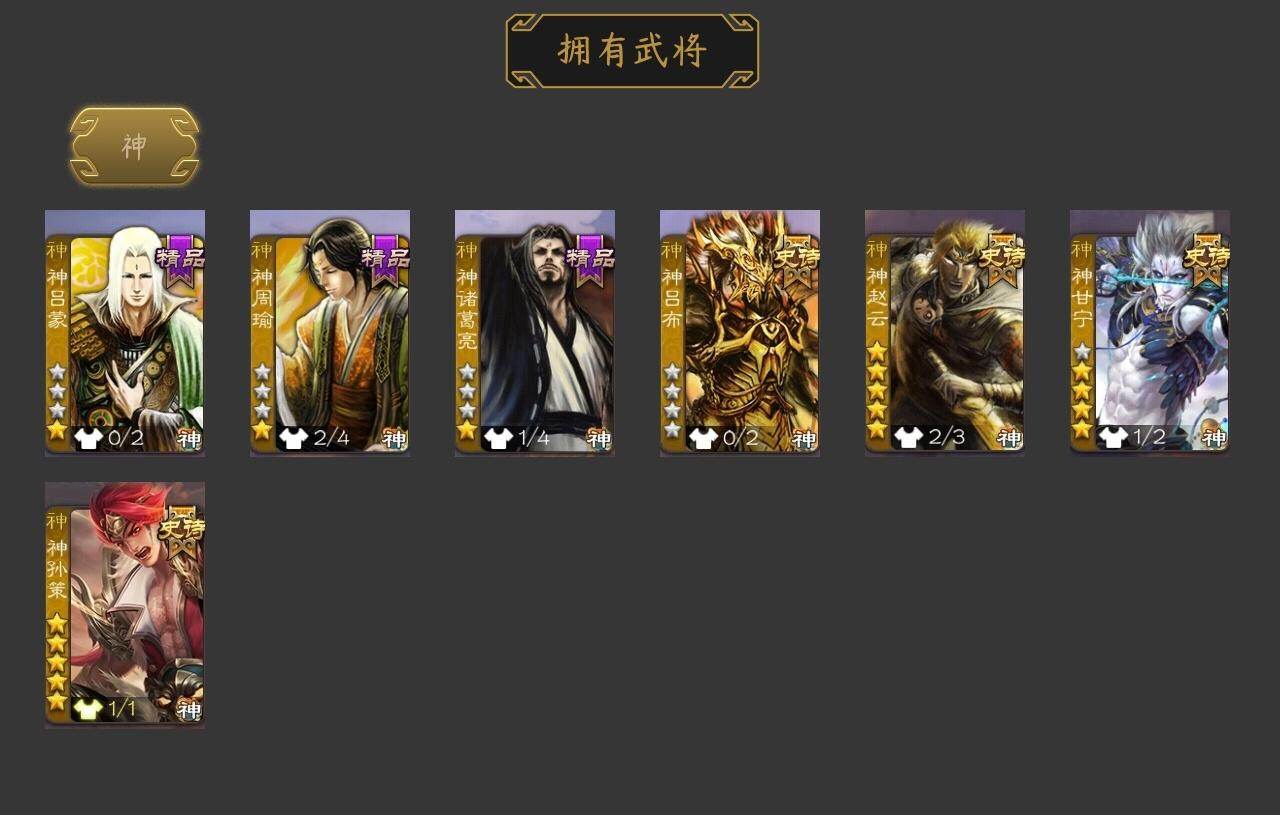 [15170839]【169】官阶:大将军;vip等级:vip9;史诗武将数量:36;动态皮肤数量:36;武将总数:348;史诗宝珠数量:1;将魂数量:2179;神将:7;魏国史诗武将:16;蜀国史诗武将:6;吴国史诗武将:5;群史诗武将:10 神吕布神赵云神甘宁神孙策神吕蒙神周瑜神诸葛亮郭女王星周不疑魏-司马昭界钟会界曹真郝昭曹婴曹纯戏志才马云騄诸葛瞻王平沙摩柯谯周花鬘周处骆统界朱然界徐盛贺齐左慈张让星黄忠麹义南华老仙沮授界李儒公孙康卑弥呼星董卓神郭嘉-虎年清明动态神太史慈-勇撼日月动态神孙策-霸王再世动态神周瑜-波澜不惊神甘宁-万人辟易动态神诸葛亮-孟章诛邪动态神赵云-战龙在野动态神赵云-神龙天降星周不疑-才广志宏动态sp蔡文姬-兔年冬日动态戏志才-举棋若定动态曹婴-兔年春节动态曹纯-虎年春节动态王元姬-鼠年冬至动态司马昭-昭威淮南(动态)星徐晃-斧引霹雳动态花鬘-依心缱绻动态刘备-龙御天下动态费祎-安民护祚(动态)关羽-明良千古动态诸葛果-蛇年限定动态太史慈-涤荡江东动态孙策-兔年中秋动态周处-义除三害动态孙权-永开吴祚动态孙策-虎踞江东动态孙权-冠绝天下动态孙尚香-兔年春节动态徐盛-破军杀将动态孙寒华-蛇年限定动态鲁肃-蛇年端午动态灵雎-霜刃绚练动态袁绍-声震寰宇动态杨彪-忧心国事动态