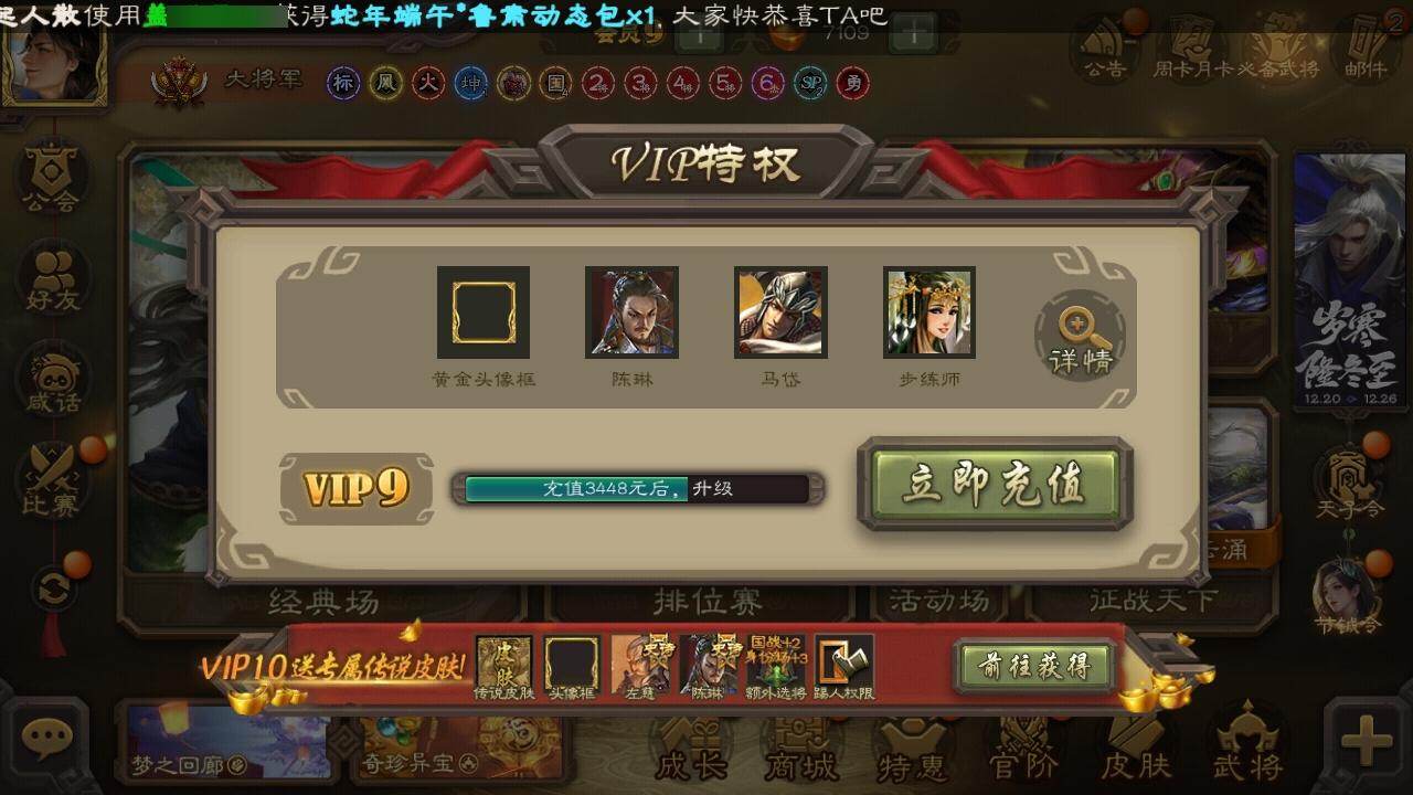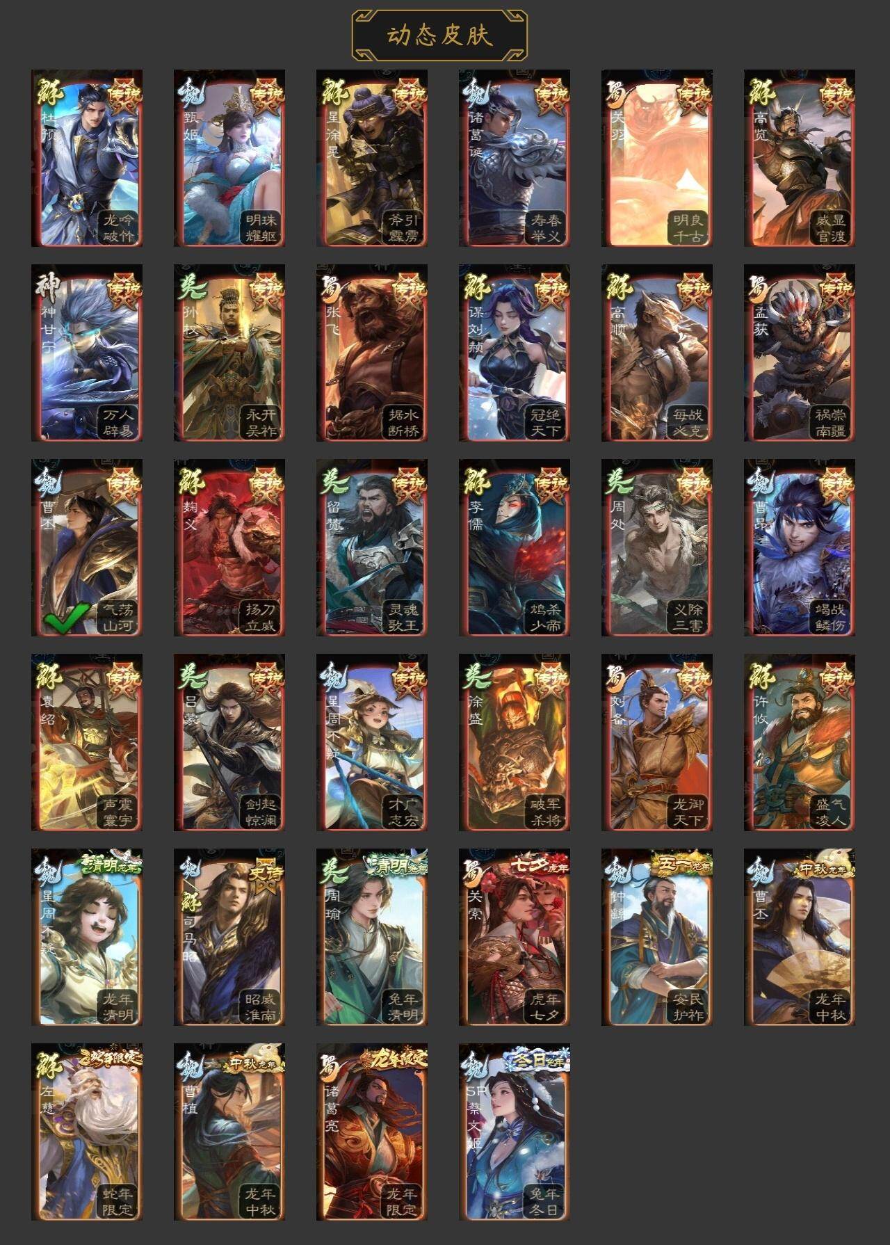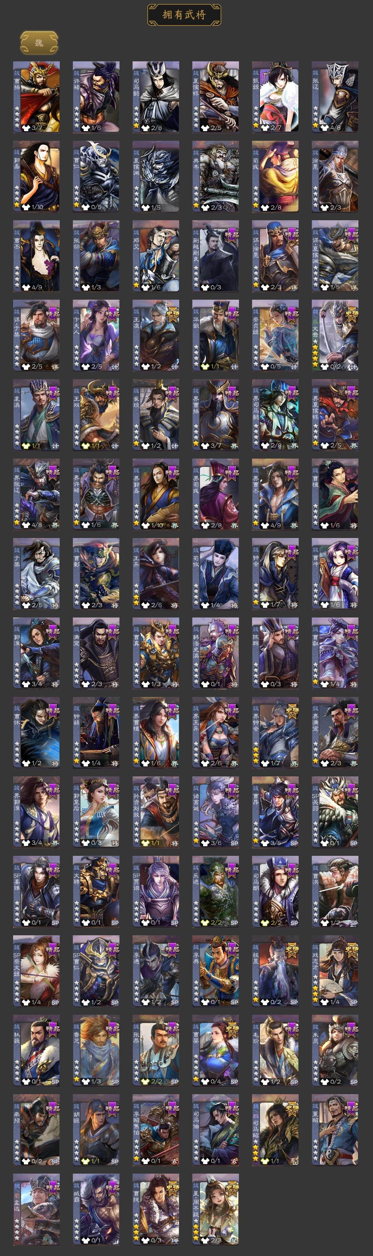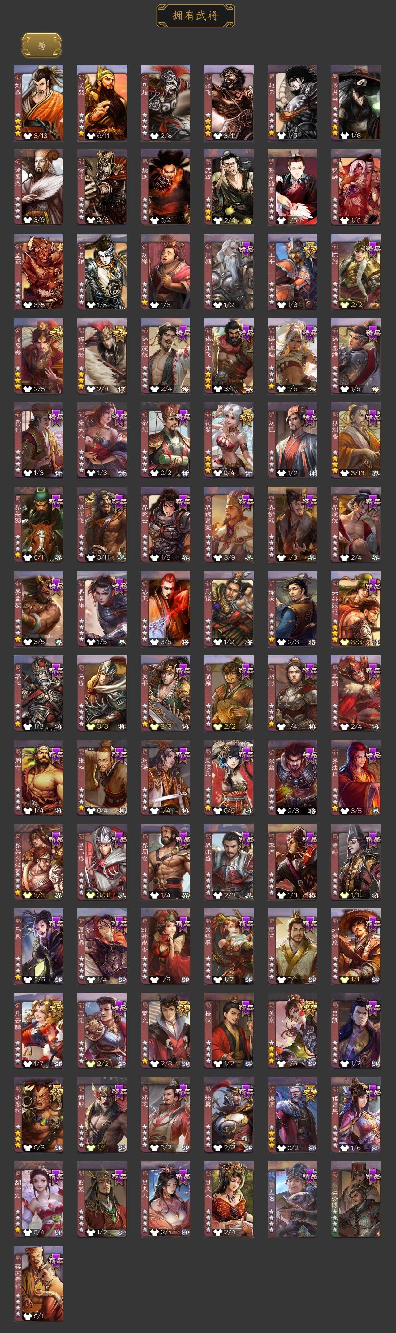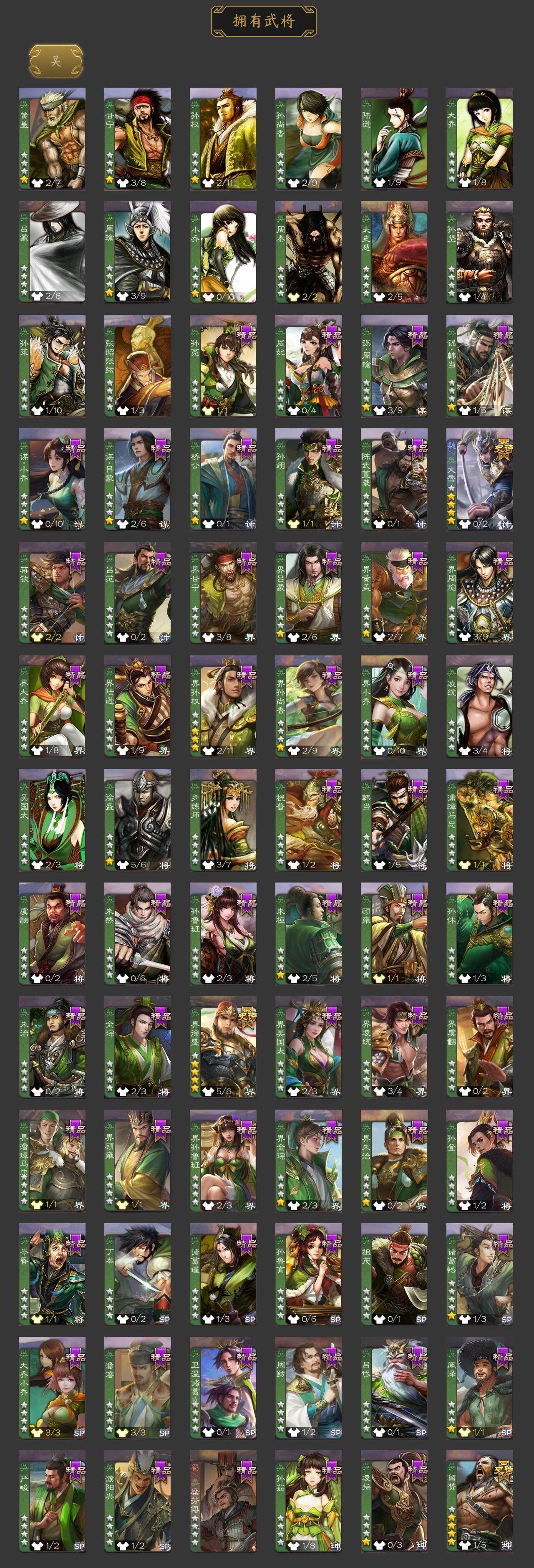 [15170946]【452】官阶:大将军;vip等级:vip9;史诗武将数量:34;动态皮肤数量:33;武将总数:342;史诗宝珠数量:1;将魂数量:3226;神将:3;魏国史诗武将:24;蜀国史诗武将:9;吴国史诗武将:2;群史诗武将:13 神吕布神赵云神吕蒙星周不疑文鸯王凌魏-司马昭界钟会曹婴曹纯戏志才关索马云騄谋马超诸葛瞻王平沙摩柯谯周花鬘董允留赞界徐盛左慈张让星黄忠麹义南华老仙沮授界李儒公孙康杜预谋张角张绣阎象许攸神鲁肃-九州为局神甘宁-万人辟易动态星周不疑-才广志宏动态曹植-龙年中秋动态钟繇-安民护祚(动态)曹丕-气荡山河(动态)星周不疑-龙年清明动态甄姬-明珠耀躯(动态)曹丕-龙年中秋动态sp蔡文姬-兔年冬日动态曹昂-竭战麟伤动态司马昭-昭威淮南(动态)诸葛诞-寿春举义(动态)星徐晃-斧引霹雳动态孟获-祸崇南疆动态刘备-龙御天下动态诸葛亮-龙年限定动态关羽-明良千古动态张飞-据水断桥动态界张飞-据水断桥动态关索-虎年七夕动态周处-义除三害动态吕蒙-剑起惊澜动态孙权-永开吴祚动态周瑜-免年清明动态徐盛-破军杀将动态刘赞-灵魂歌王动态高顺-每战必克动态袁绍-声震寰宇动态高览-威显官渡动态麹义-扬刀立威动态杜预-龙吟破竹动态许攸-盛气凌人动态李儒-鸠杀少帝动态界李儒-鸠杀少帝动态左慈-蛇年限定动态谋刘赪-冠绝天下动态