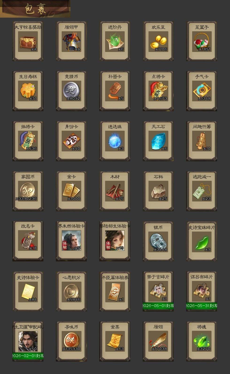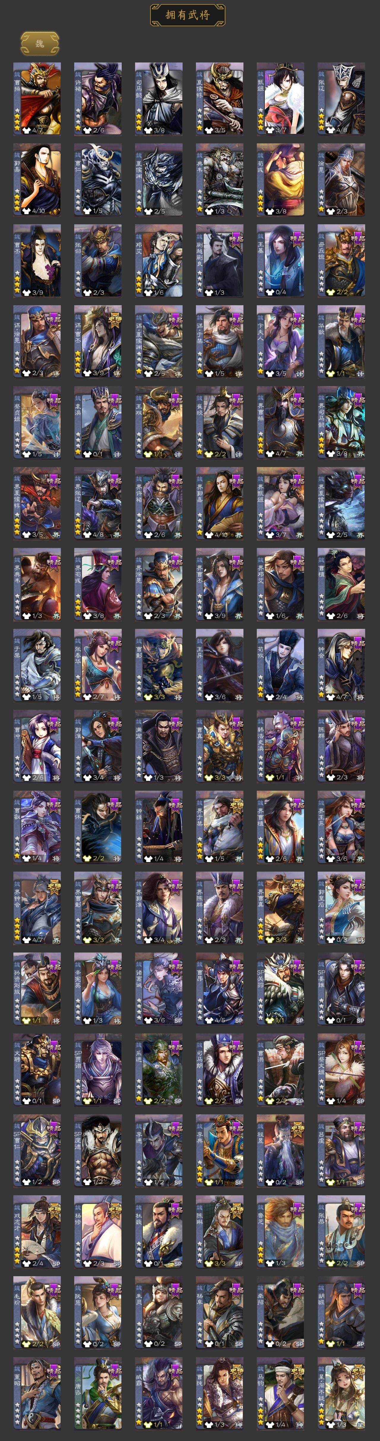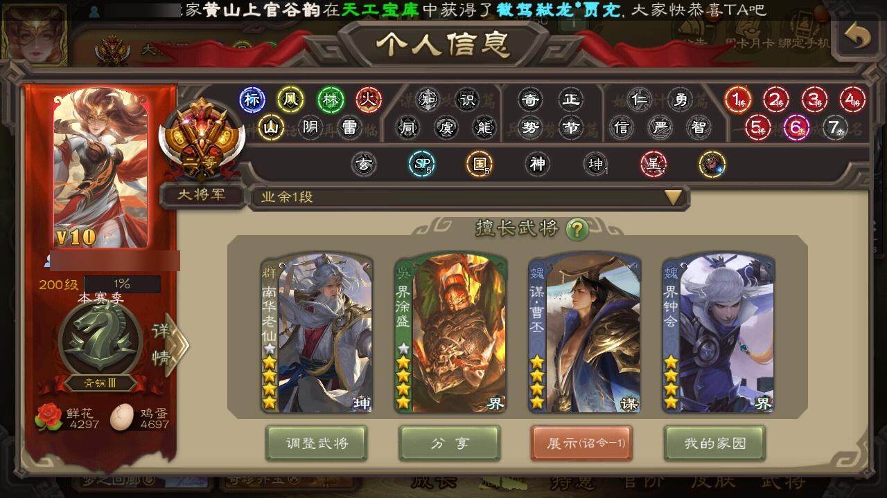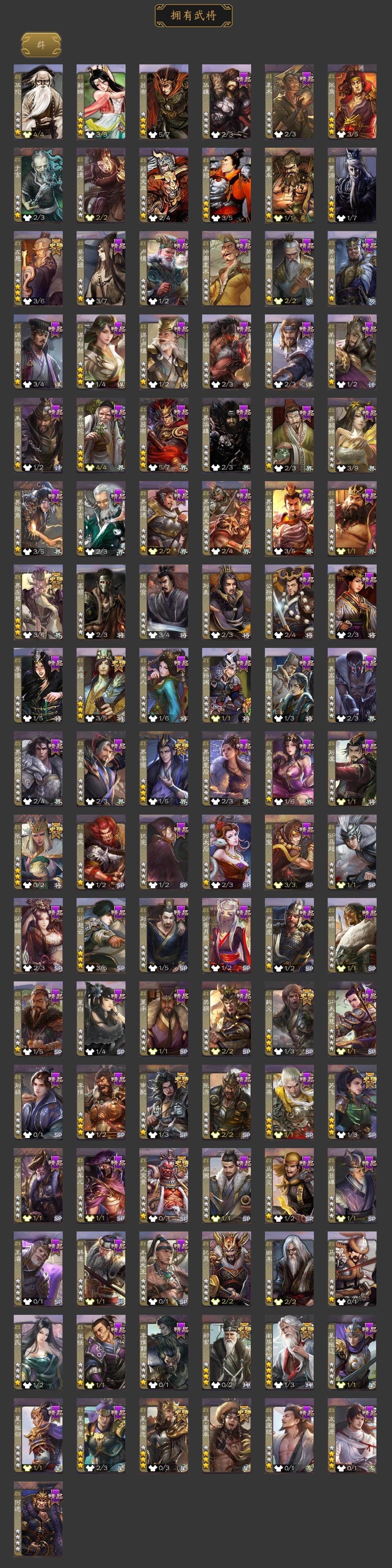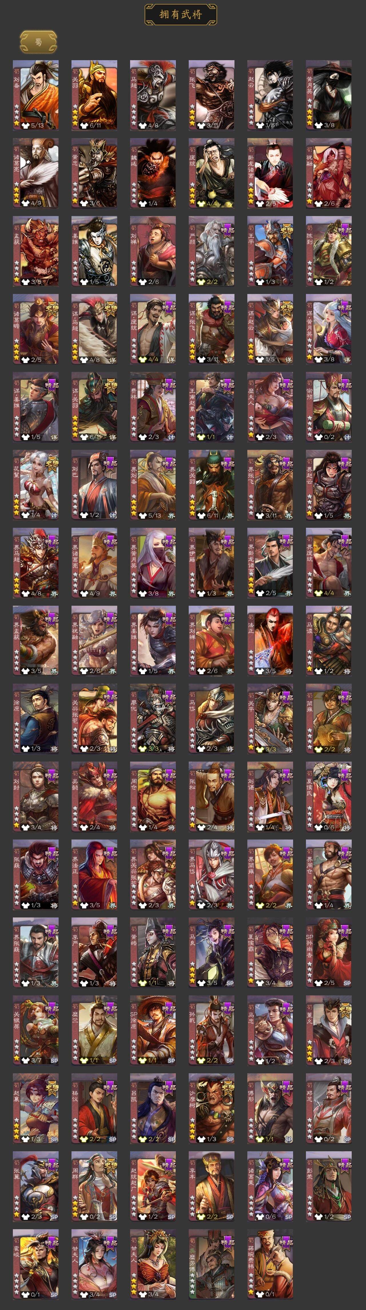 [15171225]【273】官阶:大将军;vip等级:vip10;史诗武将数量:42;动态皮肤数量:54;武将总数:399;史诗宝珠数量:0;将魂数量:3270;神将:5;魏国史诗武将:34;蜀国史诗武将:10;吴国史诗武将:6;群史诗武将:15 神赵云神吕蒙神周瑜神诸葛亮神鲁肃星周不疑杨修马钧界钟会界于禁界曹真陈琳曹纯戏志才谋曹丕谋赵云谋马超诸葛瞻周群赵襄王平沙摩柯花鬘董允谋关羽周处吴景骆统界徐盛贺齐势陆郁生谋黄月英左慈郑玄张让星黄忠苏飞审配麹义南华老仙沮授界左慈界李儒李傕友徐庶星董卓神鲁肃-九州为局神太史慈-勇撼日月动态神荀彧-匡汉延祚动态神诸葛亮-孟章诛邪动态神曹操-天下归心星周不疑-才广志宏动态钟会-龙年端午(动态)钟会-潜蛟觊天动态钟繇-安民护祚(动态)曹丕-气荡山河(动态)甄姬-明珠耀躯(动态)sp蔡文姬-兔年冬日动态司马懿-牛年立冬动态荀彧-驱虎吞狼动态界司马懿-牛年立冬动态张春华-牛年立冬动态钟会-谋谟之勋动态曹真-虎年春节动态界钟会-谋谟之勋动态戏志才-举棋若定动态曹婴-锋芒毕露动态曹纯-长坂败备动态孟获-祸崇南疆动态刘备-龙御天下动态卧龙诸葛-龙跃凤鸣动态费祎-安民护祚(动态)刘备-龙骧麟振动态马超-牛年春节动态马超-虎年冬至动态黄月英-虎年中秋动态诸葛瞻-绵竹之殇动态界刘备-龙骧麟振动态界马超-牛年春节动态甘夫人-为君担忧动态李丰-太仓聚粟动态太史慈-涤荡江东动态孙策-兔年清明动态孙茹-龙年七夕动态周处-义除三害动态吕蒙-剑起惊澜动态陆逊-龙年七夕动态孙权-永开吴祚动态周瑜-兔年七夕动态孙策-虎踞江东动态步骘-鸿笔丽藻动态孙权-猪年端午动态孙尚香-星流霆击动态界孙权-猪年端午动态界孙尚香-星流霆击动态徐盛-破军杀将动态陆逊-蛇年清明动态灵雎-霜刃绚练动态袁绍-声震寰宇动态高览-威显官渡动态南华老仙-冠绝天下动态貂蝉-鼠年七夕动态吕布-鼠年七夕动态吕布-傲睨万物