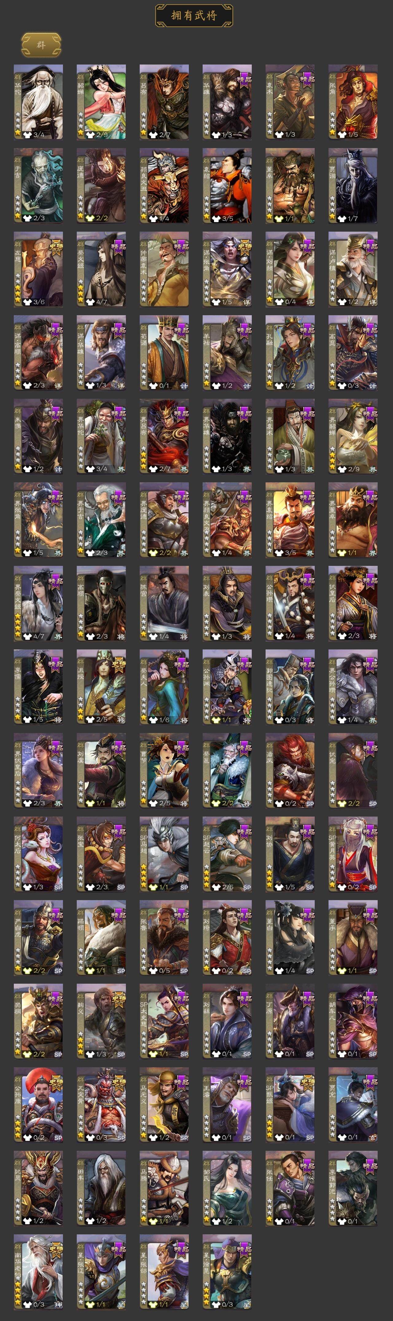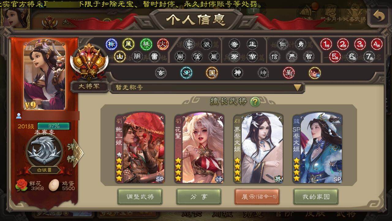 [15171315]【836】官阶:大将军;vip等级:vip9;史诗武将数量:33;动态皮肤数量:24;武将总数:371;史诗宝珠数量:0;将魂数量:7709;神将:6;魏国史诗武将:20;蜀国史诗武将:9;吴国史诗武将:5;群史诗武将:7 神吕布神赵云神甘宁神太史慈神吕蒙神周瑜星周不疑杨修界钟会曹婴曹纯戏志才关索谋马超诸葛瞻张星彩沙摩柯谯周界黄忠花鬘鲍三娘谋孙策周处骆统界朱然贺齐左慈麹义南华老仙沮授公孙康谋张角sp甄姬神张辽-威震江东神太史慈-勇撼日月动态神甘宁-万人辟易动态神诸葛亮-观星唤雨神吕布-冠绝天下动态星周不疑-才广志宏动态张昌蒲-龙年端午(动态)sp蔡文姬-兔年冬日动态司马懿-牛年立冬动态曹丕-猪年端午动态界司马懿-牛年立冬动态界曹丕-猪年端午动态戏志才-举棋若定动态曹纯-长坂败备动态王元姬-鼠年冬至动态花鬘-依心缱绻动态夏侯氏-明良千古动态关索-虎年七夕动态鲍三娘-虎年七夕动态太史慈-涤荡江东动态周处-义除三害动态陆逊-龙年七夕动态孙策-虎踞江东动态灵雎-霜刃绚练动态袁绍-声震寰宇动态麹义-扬刀立威动态蔡文姬-泪捻琵琶动态界蔡文姬-泪捻琵琶动态张琪瑛-虎年冬至动态