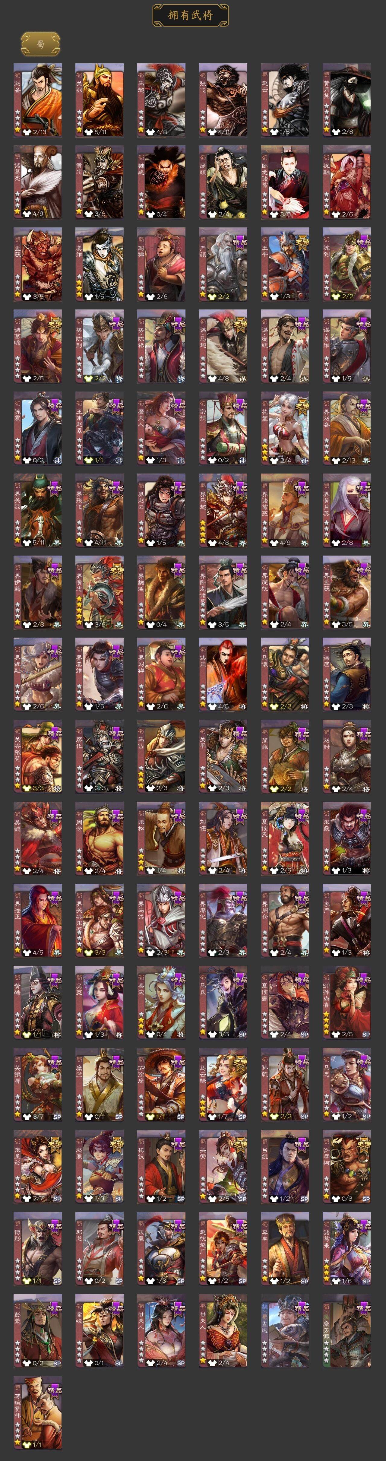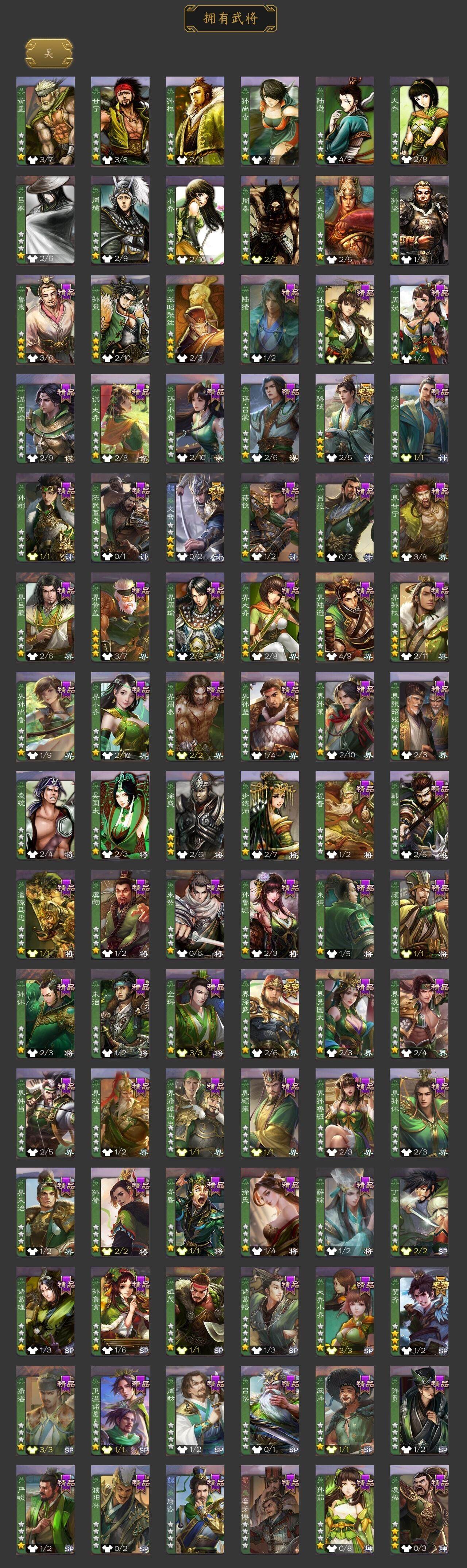 [15171421]【907】官阶:大将军;vip等级:vip10;史诗武将数量:47;动态皮肤数量:19;武将总数:400;史诗宝珠数量:9;将魂数量:1073;神将:7;魏国史诗武将:11;蜀国史诗武将:10;吴国史诗武将:3;群史诗武将:18 神吕布神赵云神张辽神关羽神吕蒙神周瑜神诸葛亮sp司马昭星周不疑王粲杨修文鸯王元姬界钟会界于禁嵇康陈琳曹纯戏志才刘晔谋曹丕关索马云騄谋马超诸葛瞻赵襄张星彩王平沙摩柯界黄忠花鬘骆统界徐盛贺齐裴秀左慈张让星黄忠星甘宁苏飞司马徽审配麹义庞德公南华老仙沮授谋张角张绣李傕许攸友徐庶星董卓神吕蒙-心生万象神诸葛亮-观星唤雨神曹操-天下归心sp蔡文姬-兔年冬日动态邓艾-神兵天降动态界邓艾-神兵天降动态张春华-宣穆夜袭动态界曹植-鼠年端午动态戏志才-举棋若定动态朱灵-以战破氐动态花鬘-依心缱绻动态诸葛亮-龙年限定动态关索-依心缱绻动态关羽-明良千古动态马超-牛年春节动态界马超-牛年春节动态卧龙诸葛-火烧博望动态太史慈-涤荡江东动态周处-义除三害动态许攸-火烧乌巢动态麹义-扬刀立威动态sp赵云-单骑救主动态兀突骨-鼠年春节动态庞德公-超脱于世动态星甘宁-锦帆游侠动态皇甫嵩-奋钺振旅动态左慈-蛇年限定动态