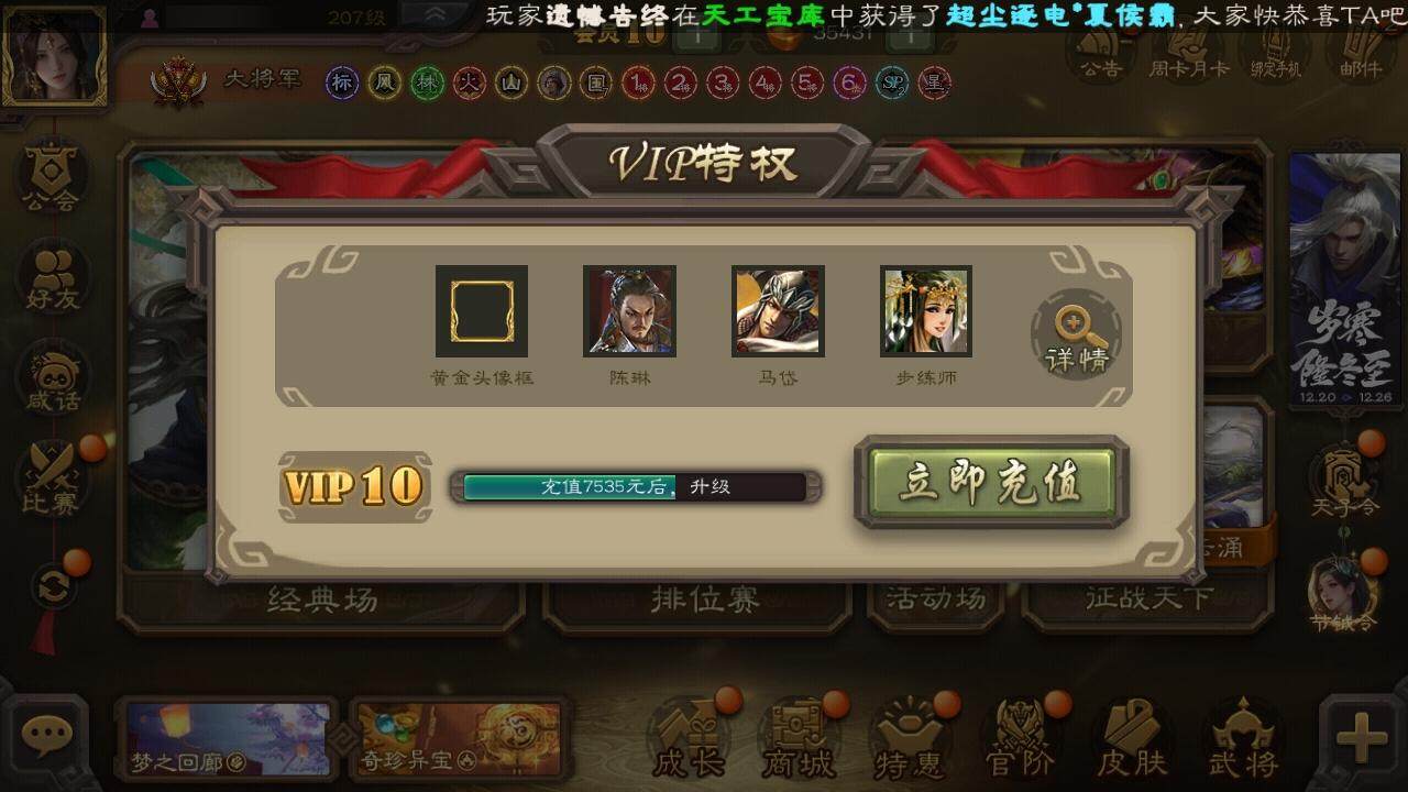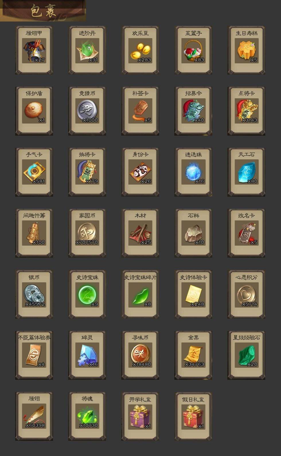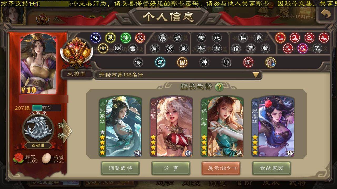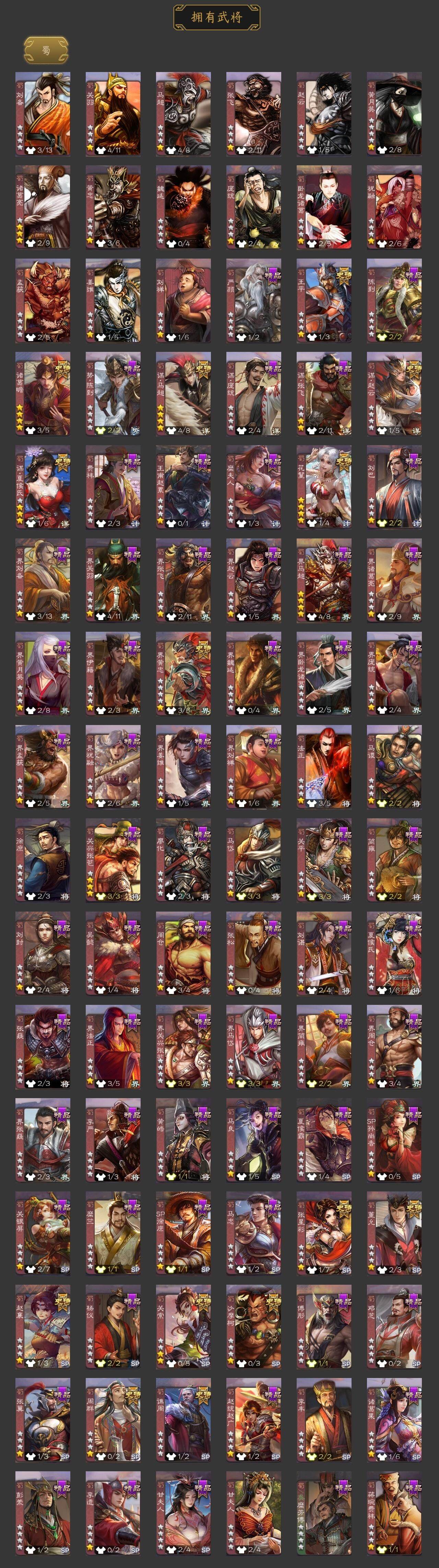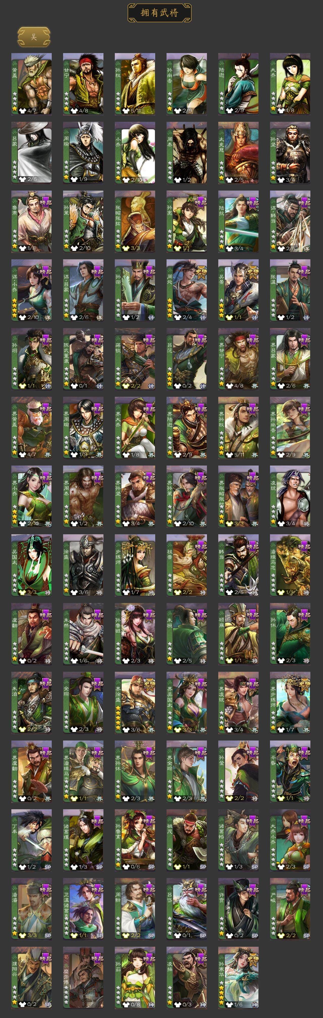 [15171467]【395】官阶:大将军;vip等级:vip10;史诗武将数量:45;动态皮肤数量:44;武将总数:380;史诗宝珠数量:9;将魂数量:10730;神将:4;魏国史诗武将:27;蜀国史诗武将:14;吴国史诗武将:5;群史诗武将:13 神吕布神赵云神吕蒙神周瑜星周不疑杨修马钧界钟会界于禁界曹真嵇康郝昭曹纯戏志才关索谋夏侯氏谋赵云谋马超诸葛瞻周群赵襄张星彩王平沙摩柯谯周界黄忠花鬘董允周处吴景孙寒华界徐盛界步练师谋郭嘉界沮授左慈郑玄张让星黄忠苏飞南华老仙沮授界李儒杜预许攸星董卓神太史慈-勇撼日月动态郭嘉-以身证道(动态)曹植-龙年中秋动态曹丕-气荡山河(动态)甄姬-明珠耀躯(动态)sp蔡文姬-兔年冬日动态荀彧-驱虎吞狼动态张春华-雪中舞刃动态曹昂-竭战麟伤动态戏志才-举棋若定动态曹婴-兔年春节动态朱灵-以战破氐动态司马昭-昭威淮南(动态)司马懿-重张区宇(动态)星徐晃-斧引霹雳动态花鬘-依心缱绻动态刘备-龙御天下动态诸葛亮-龙年限定动态费祎-安民护祚(动态)关羽-明良千古动态马超-虎年冬至动态马超-星夜袭曹动态诸葛瞻-绵竹之殇动态界马超-星夜袭曹动态马云騄-牛年春节动态李丰-太仓聚粟动态卧龙诸葛-火烧博望动态周处-义除三害动态孙权-永开吴祚动态孙策-虎踞江东动态孙寒华-威灵尽显动态孙权-牛年七夕动态界孙权-牛年七夕动态徐盛-破军杀将动态蔡夫人-计上心来动态灵雎-霜刃绚练动态杜预-弼朝博虬动态麹义-扬刀立威动态貂蝉-鼠年七夕动态吕布-傲睨万物动态袁绍-一往无前动态许攸-盛气凌人动态界貂蝉-鼠年七夕动态界袁绍-一往无前动态李儒-鸠杀少帝动态界李儒-鸠杀少帝动态张鲁-虎年冬至动态左慈-蛇年限定动态