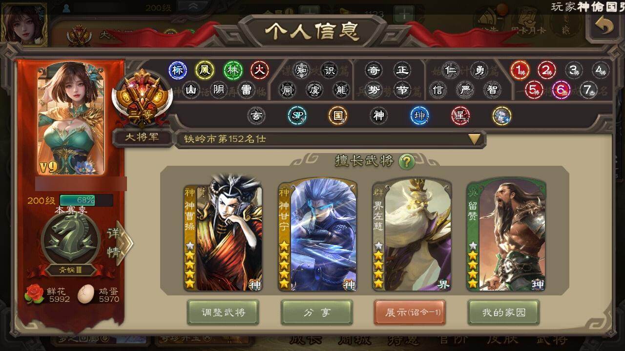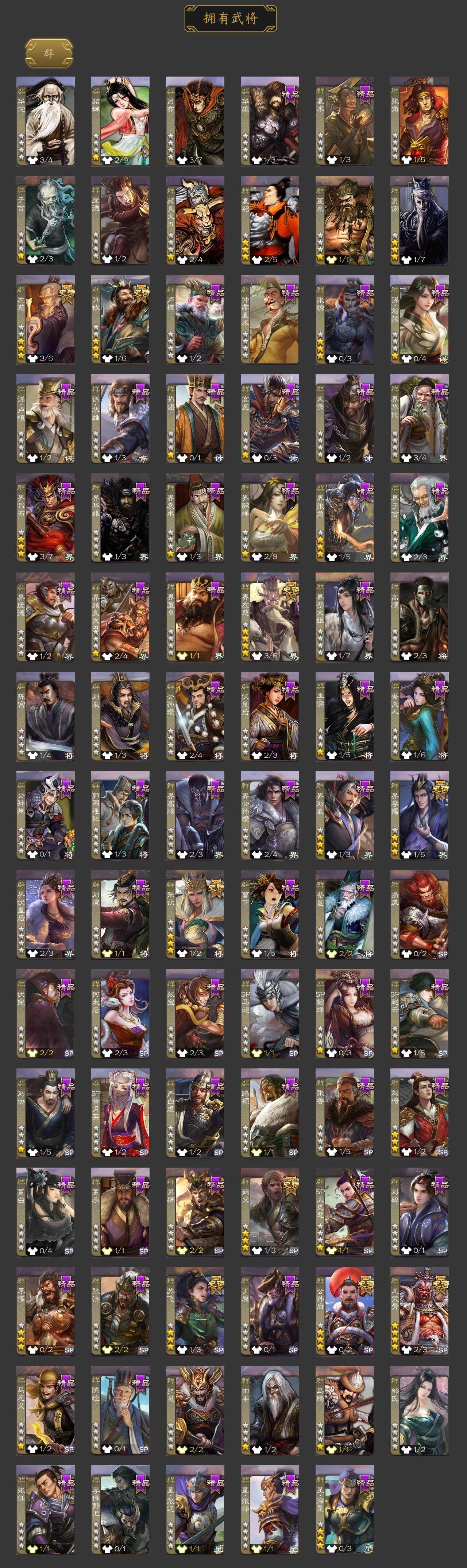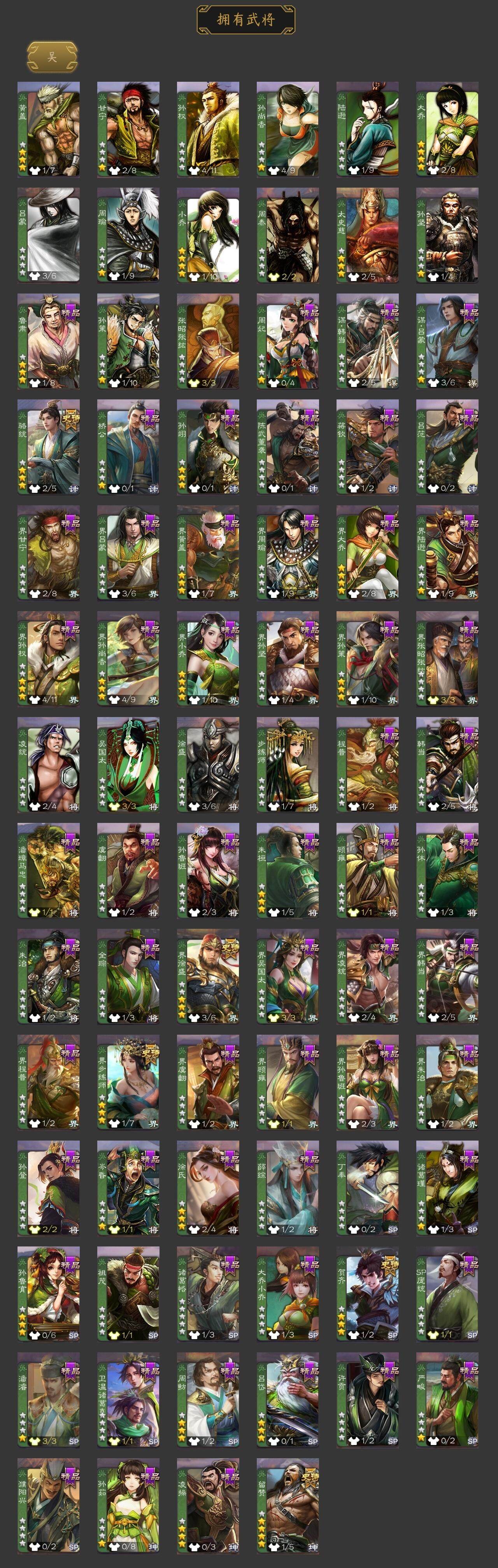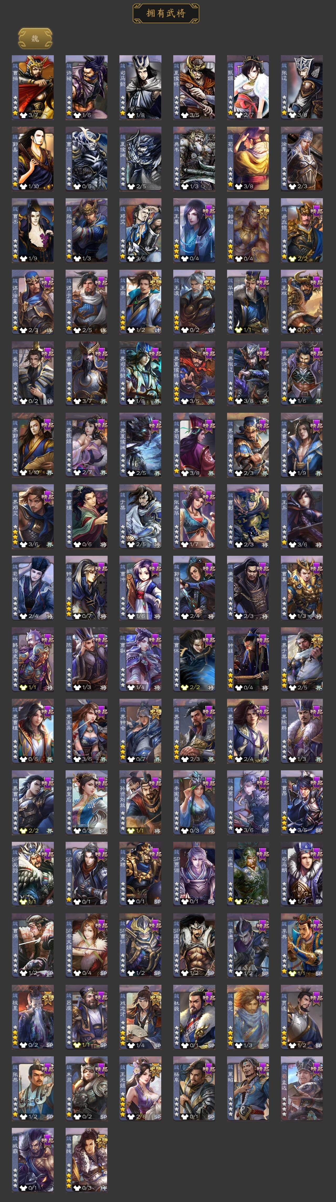 [15171544]【569】官阶:大将军;vip等级:vip9;史诗武将数量:35;动态皮肤数量:23;武将总数:355;史诗宝珠数量:27;将魂数量:5798;神将:6;魏国史诗武将:10;蜀国史诗武将:8;吴国史诗武将:5;群史诗武将:11 神曹操神赵云神甘宁神张辽神吕蒙神周瑜王粲王元姬王凌界钟会界于禁郝昭曹纯戏志才关索马云騄谋马超诸葛瞻沙摩柯界黄忠花鬘董允骆统留赞界徐盛界步练师贺齐左慈张让苏飞麹义界左慈界李儒公孙康张绣李傕许攸陈珪神甘宁-万人辟易动态神周瑜-焰腾麒麟动态神赵云-战龙在野动态荀彧-驱虎吞狼动态邓艾-神兵天降动态界邓艾-神兵天降动态于禁-威严毅重动态界于禁-威严毅重动态王元姬-鼠年冬至动态马超-牛年春节动态马超-虎年冬至动态界马超-牛年春节动态关银屏-虎年端午动态关银屏-兔年春节动态鲍三娘-虎年七夕动态李丰-太仓聚粟动态周处-义除三害动态孙策-虎踞江东动态孙权-猪年端午动态界孙权-猪年端午动态徐氏-琪花瑶草动态刘赞-抗音而歌动态吕布-傲睨万物动态左慈-役使鬼神动态兀突骨-鼠年春节动态星甘宁-肝胆相照动态