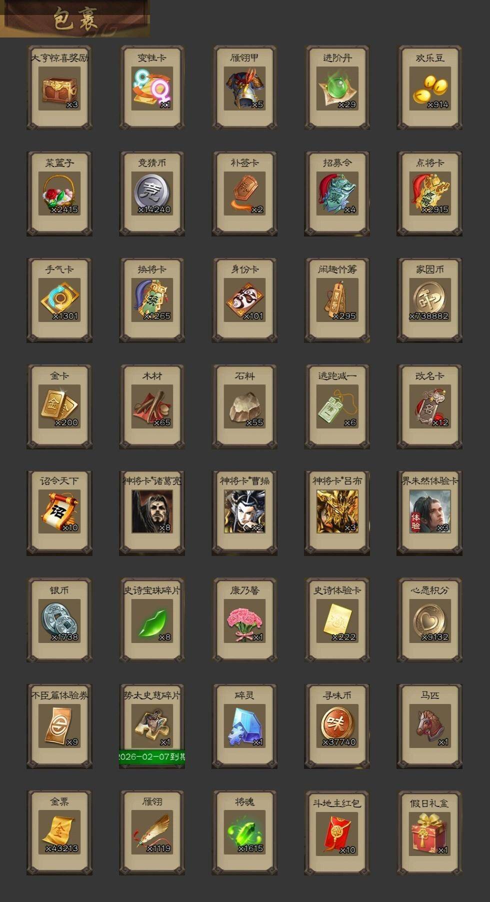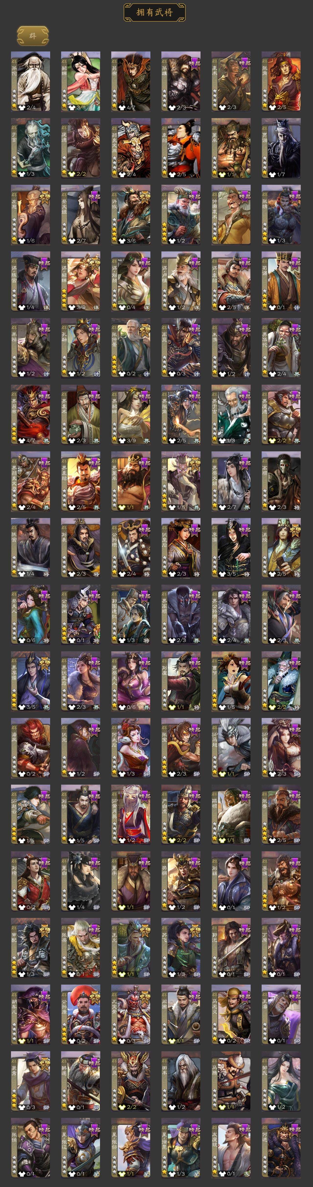 [15171593]【182】官阶:大将军;vip等级:vip10;史诗武将数量:36;动态皮肤数量:29;武将总数:383;史诗宝珠数量:0;将魂数量:1615;神将:5;魏国史诗武将:19;蜀国史诗武将:9;吴国史诗武将:5;群史诗武将:14 神张辽神关羽神吕蒙神周瑜神诸葛亮杨修界钟会界于禁嵇康陈琳曹纯戏志才谋马超诸葛瞻周群张星彩沙摩柯谯周傅佥花鬘董允吴景孙寒华骆统界徐盛谋孙权谋貂蝉裴秀左慈张仲景王允苏飞审配沮授界左慈界李儒公孙康张绣李傕许攸神太史慈-勇撼日月动态神诸葛亮-观星唤雨郭嘉-以身证道(动态)曹丕-气荡山河(动态)星周不疑-龙年清明动态甄姬-明珠耀躯(动态)司马懿-鹰视狼顾动态界司马懿-鹰视狼顾动态张春华-宣穆夜袭动态张春华-雪中舞刃动态戏志才-举棋若定动态司马师-牛年中秋动态刘备-龙御天下动态刘备-龙骧麟振动态马超-虎年冬至动态黄月英-虎年中秋动态界刘备-龙骧麟振动态关银屏-兔年春节动态鲍三娘-虎年七夕动态诸葛果-蛇年限定动态周处-义除三害动态孙策-虎踞江东动态孙寒华-威灵尽显动态孙权-牛年七夕动态孙尚香-星流霆击动态界孙权-牛年七夕动态界孙尚香-星流霆击动态徐盛-破军杀将动态孙寒华-蛇年限定动态貂蝉-舞惑群心动态吕布-鼠年七夕动态张角-黄天当立动态许攸-盛气凌人动态界吕布-鼠年七夕动态李儒-鸠杀少帝动态界李儒-鸠杀少帝动态sp貂蝉-驭魂千机动态张鲁-安民护祚动态