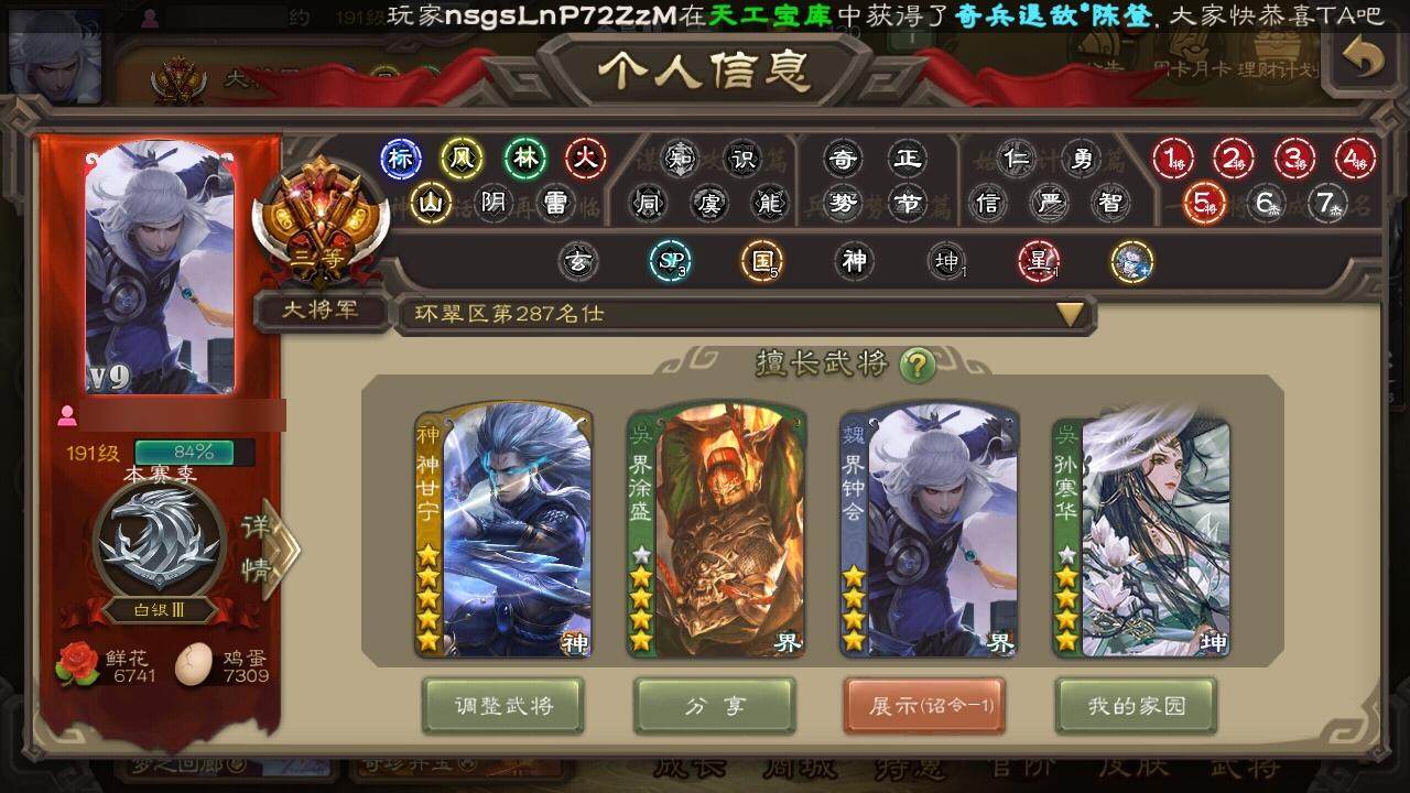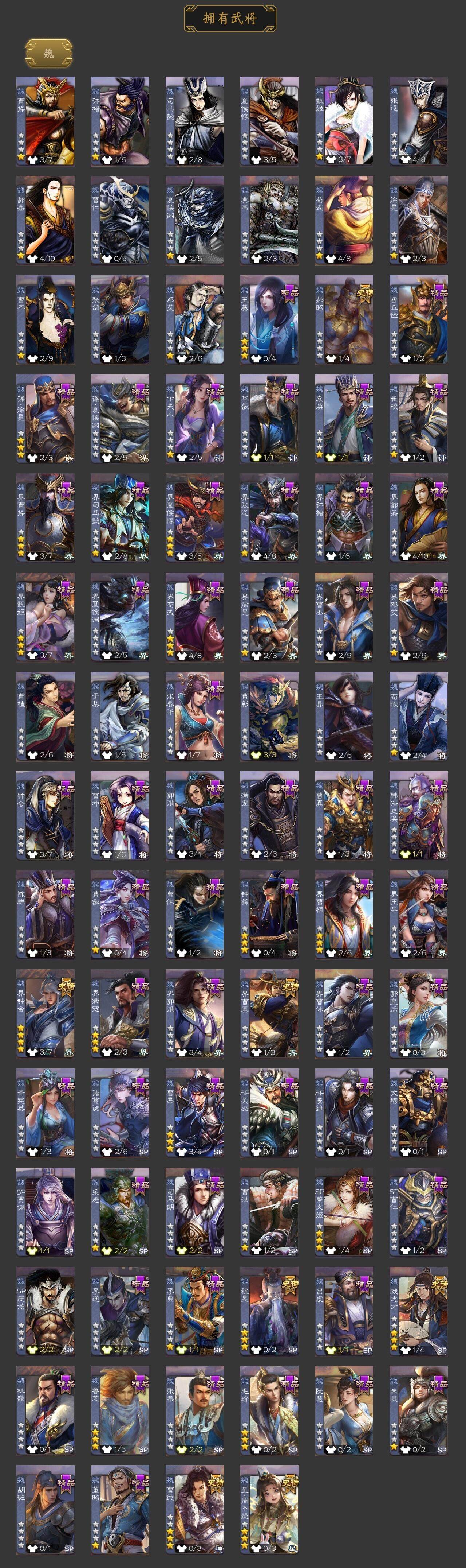 [15171683]【479】官阶:大将军;vip等级:vip9;史诗武将数量:34;动态皮肤数量:29;武将总数:340;史诗宝珠数量:5;将魂数量:3842;神将:6;魏国史诗武将:20;蜀国史诗武将:8;吴国史诗武将:5;群史诗武将:9 神赵云神刘备神甘宁神张辽神吕蒙神周瑜星周不疑界钟会界曹真郝昭曹纯戏志才谋夏侯氏谋马超诸葛瞻张星彩沙摩柯谯周花鬘董允吴景孙寒华骆统界徐盛谋孙权界沮授左慈张让苏飞麹义沮授界李儒公孙康许攸神郭嘉-虎年清明动态神荀彧-虎年清明动态神甘宁-万人辟易动态sp司马昭-鼠年冬至(动态)曹丕-气荡山河(动态)甄姬-明珠耀躯(动态)sp蔡文姬-兔年冬日动态邓艾-神兵天降动态界邓艾-神兵天降动态钟会-谋谟之勋动态界钟会-谋谟之勋动态辛宪英-鼠年春节动态曹婴-兔年春节动态司马昭-昭威淮南(动态)刘备-龙御天下动态诸葛亮-龙年限定动态马超-虎年冬至动态黄月英-鼠年春节动态界黄月英-鼠年春节动态夏侯氏-猪年中秋动态鲍三娘-柳娇桃艳动态李丰-太仓聚粟动态周处-义除三害动态孙权-永开吴祚动态孙策-虎踞江东动态周瑜-免年清明动态孙权-吴王六剑动态孙尚香-兔年春节动态孙尚香-星流霆击动态界孙权-吴王六剑动态界孙尚香-星流霆击动态徐盛-破军杀将动态灵雎-霜刃绚练动态袁绍-声震寰宇动态李儒-鸠杀少帝动态界李儒-鸠杀少帝动态苏飞-肝胆相照动态兀突骨-鼠年春节动态