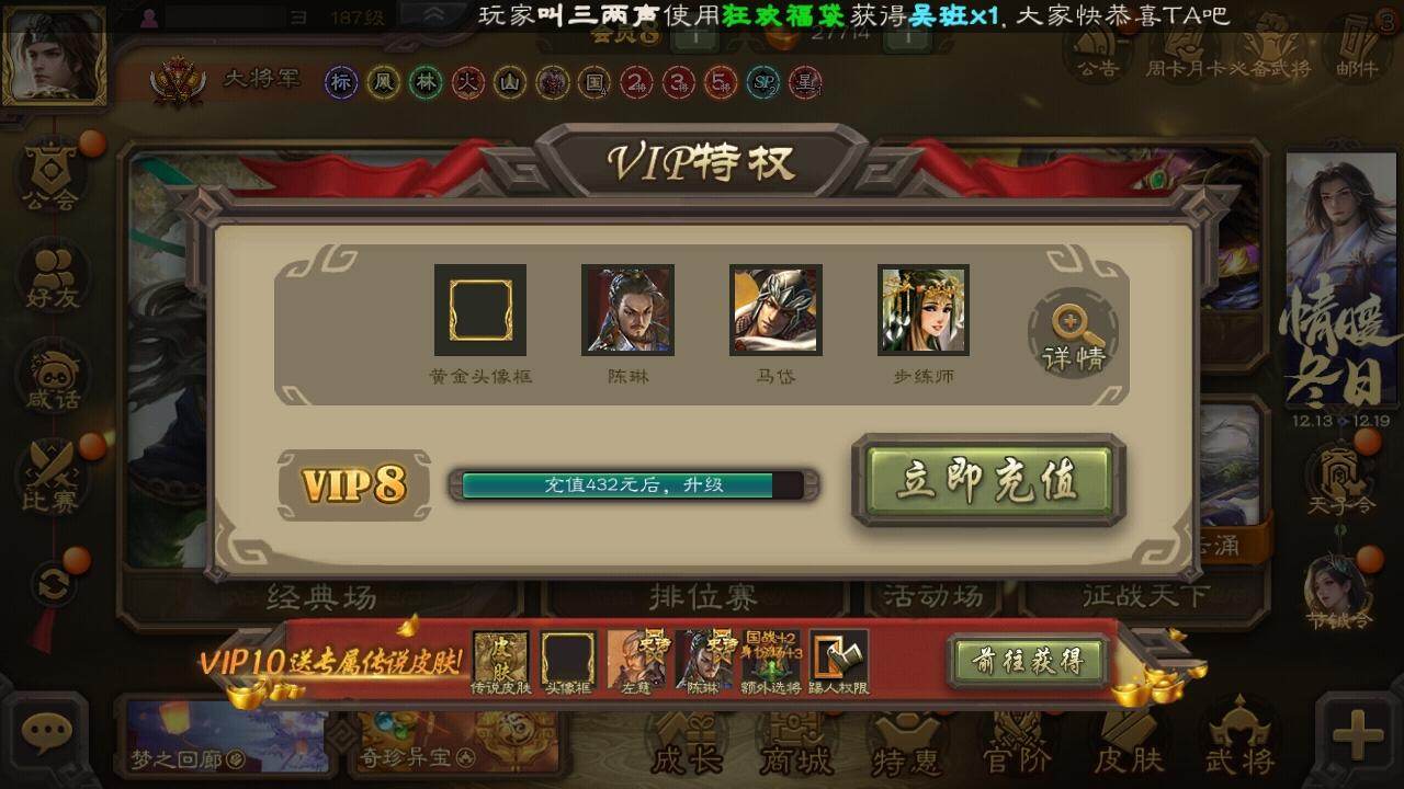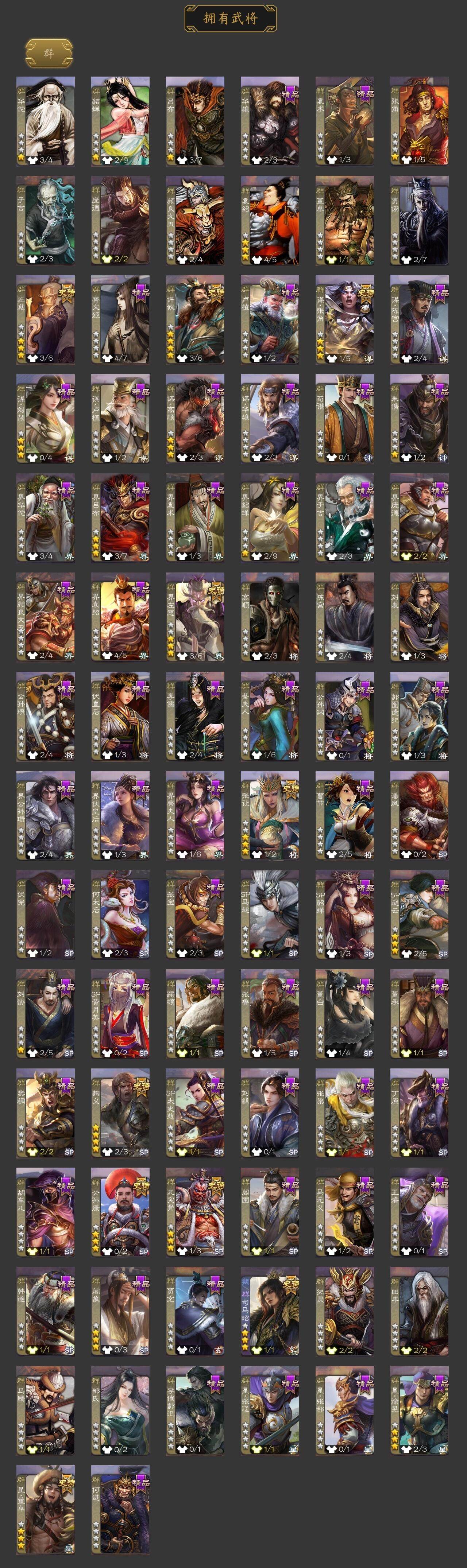 [15171735]【696】官阶:大将军;vip等级:vip8;史诗武将数量:35;动态皮肤数量:44;武将总数:352;史诗宝珠数量:5;将魂数量:6802;神将:5;魏国史诗武将:34;蜀国史诗武将:9;吴国史诗武将:4;群史诗武将:9 神吕布神赵云神孙策神吕蒙神周瑜星周不疑文鸯魏-司马昭界钟会界曹真郝昭曹纯戏志才清河公主谋赵云谋马超诸葛瞻王平沙摩柯谯周界黄忠花鬘董允周处留赞界朱然界徐盛左慈张让麹义界左慈公孙康谋张角阎象许攸星董卓神孙策-霸王再世动态神刘备-龙兴海内神关羽-佑子伐吴神周瑜-陵光引灵动态神赵云-神龙天降星周不疑-才广志宏动态钟会-龙年端午(动态)钟繇-安民护祚(动态)曹丕-气荡山河(动态)星周不疑-龙年清明动态甄姬-明珠耀躯(动态)曹丕-龙年中秋动态sp蔡文姬-兔年冬日动态荀彧-驱虎吞狼动态邓艾-神兵天降动态界邓艾-神兵天降动态钟会-谋谟之勋动态界钟会-谋谟之勋动态曹纯-虎年春节动态王元姬-鼠年冬至动态司马昭-昭威淮南(动态)星徐晃-斧引霹雳动态清河公主-魅影萦心动态刘备-龙御天下动态马超-牛年春节动态诸葛瞻-绵竹之殇动态关银屏-兔年春节动态李丰-太仓聚粟动态卧龙诸葛-火烧博望动态周处-义除三害动态吕蒙-剑起惊澜动态黄盖-兔年端午动态孙权-永开吴祚动态孙策-虎踞江东动态孙权-牛年七夕动态孙尚香-兔年春节动态界孙权-牛年七夕动态凌统-长风破浪动态徐盛-破军杀将动态界凌统-长风破浪动态许攸-火烧乌巢动态袁绍-声震寰宇动态左慈-道法显威(动态)麹义-扬刀立威动态吕布-虓虎之勇动态袁绍-一往无前动态界吕布-虓虎之勇动态界袁绍-一往无前动态李儒-鸠杀少帝动态张鲁-虎年冬至动态sp赵云-威名尽显动态左慈-蛇年限定动态