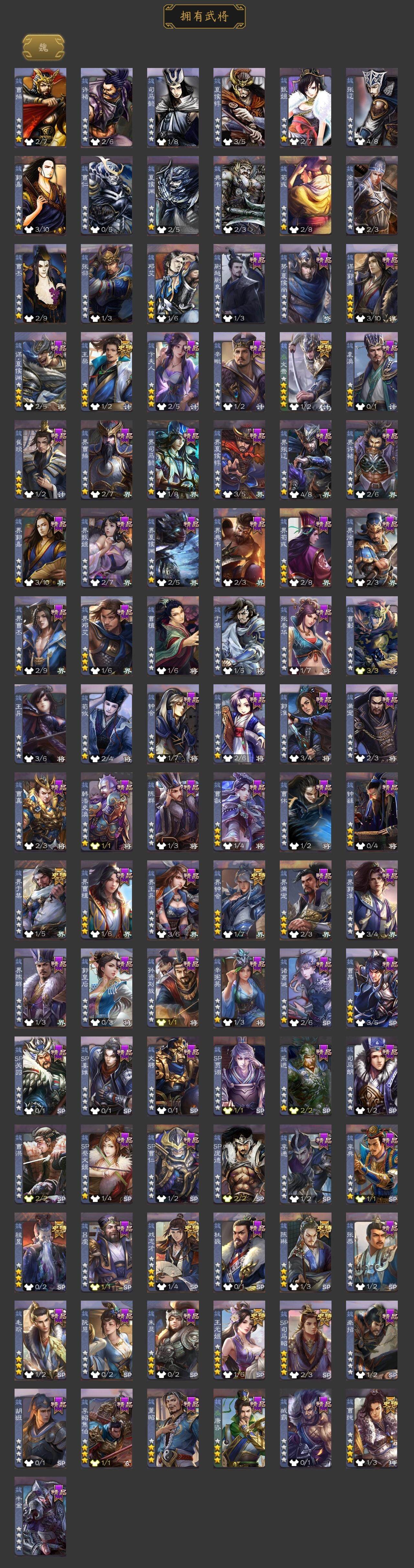 [15171802]【846】官阶:大将军;vip等级:vip6;史诗武将数量:37;动态皮肤数量:19;武将总数:357;史诗宝珠数量:0;将魂数量:1807;神将:7;魏国史诗武将:14;蜀国史诗武将:7;吴国史诗武将:2;群史诗武将:14 神吕布神赵云神陆逊神刘备神张辽神吕蒙神周瑜sp司马昭王粲文鸯王元姬界钟会界于禁陈琳曹纯戏志才关索谋诸葛亮谋赵云谋马超诸葛瞻王平谯周吴景孙寒华谋郭嘉谋公孙瓒左慈星黄忠星甘宁苏飞麹义南华老仙沮授界李儒谋张角友徐庶星董卓sp甄姬sp司马昭-鼠年冬至(动态)郭嘉-以身证道(动态)sp蔡文姬-兔年冬日动态界曹植-鼠年端午动态曹纯-虎年春节动态王元姬-鼠年冬至动态羊徽瑜-牛年中秋动态诸葛亮-龙年限定动态关羽-明良千古动态马超-牛年春节动态诸葛亮-明良千古动态界马超-牛年春节动态界诸葛亮-明良千古动态关索-鼠年中秋动态周处-义除三害动态孙寒华-莲华熠熠动态周瑜-鼠年春节动态界周瑜-鼠年春节动态鲁肃-蛇年端午动态文鸯-势若万钧动态南华老仙-冠绝天下动态麹义-扬刀立威动态苏飞-肝胆相照动态张琪瑛-虎年冬至动态