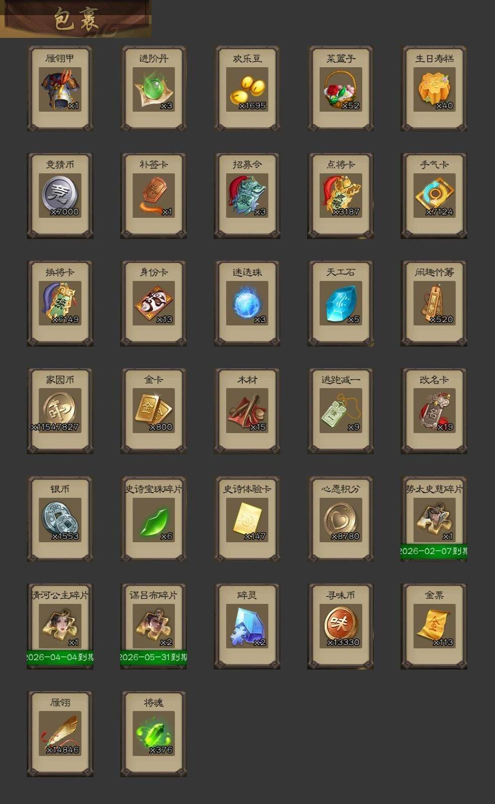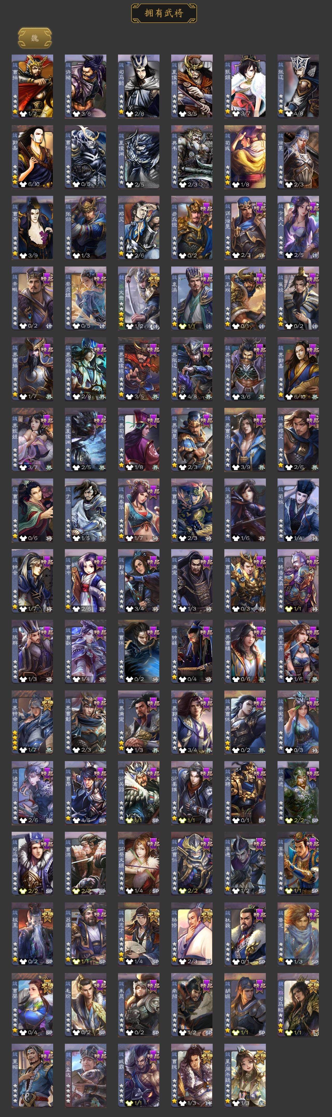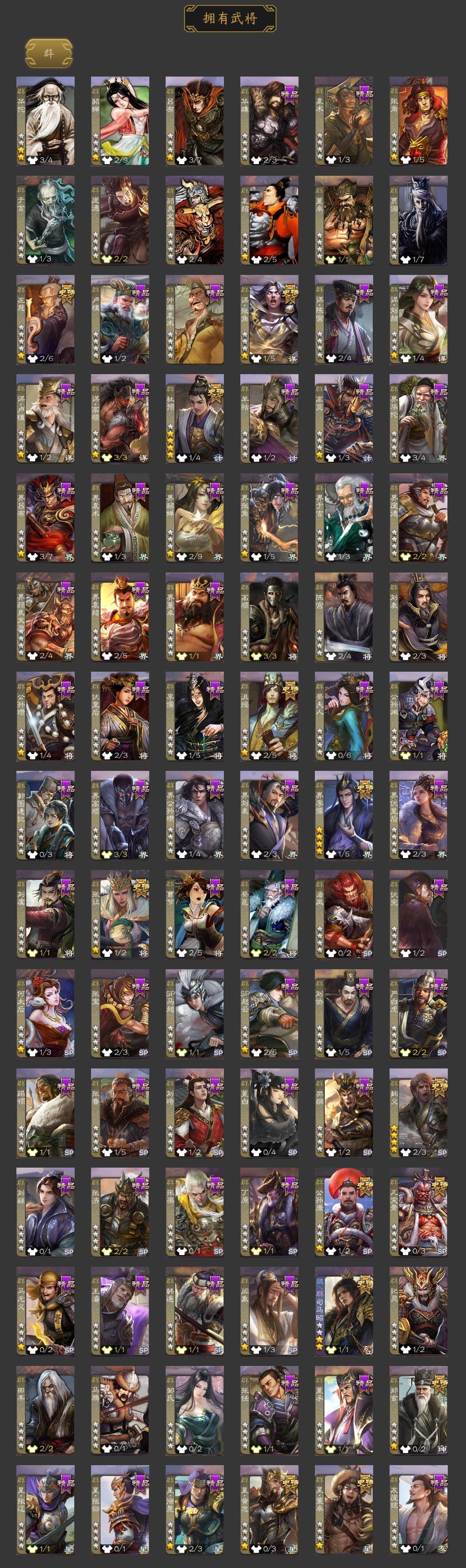 [15171861]【265】官阶:大将军;vip等级:vip8;史诗武将数量:33;动态皮肤数量:27;武将总数:347;史诗宝珠数量:0;将魂数量:376;神将:3;魏国史诗武将:20;蜀国史诗武将:6;吴国史诗武将:5;群史诗武将:12 神太史慈神吕蒙神周瑜星周不疑杨修文鸯魏-司马昭界钟会曹婴曹纯戏志才谋赵云谋马超诸葛瞻沙摩柯谯周花鬘谋陆逊周处界徐盛界步练师势太史慈左慈郑玄张让星黄忠麹义沮授界李儒公孙康杜预谋张角阎象星董卓神太史慈-勇撼日月动态郭嘉-以身证道(动态)星周不疑-才广志宏动态曹丕-气荡山河(动态)甄姬-明珠耀躯(动态)曹丕-龙年中秋动态sp蔡文姬-兔年冬日动态钟会-谋谟之勋动态界钟会-谋谟之勋动态司马昭-昭威淮南(动态)星徐晃-斧引霹雳动态刘备-龙御天下动态马超-西凉雄狮动态界马超-西凉雄狮动态周处-义除三害动态吕蒙-剑起惊澜动态孙权-永开吴祚动态孙策-虎踞江东动态孙寒华-莲华熠熠动态孙尚香-兔年春节动态徐盛-破军杀将动态孙寒华-蛇年限定动态文鸯-势若万钧动态高顺-每战必克动态曹节-龙年中秋动态麹义-扬刀立威动态杜预-龙吟破竹动态吕布-鼠年七夕动态界吕布-鼠年七夕动态sp赵云-威名尽显动态左慈-蛇年限定动态