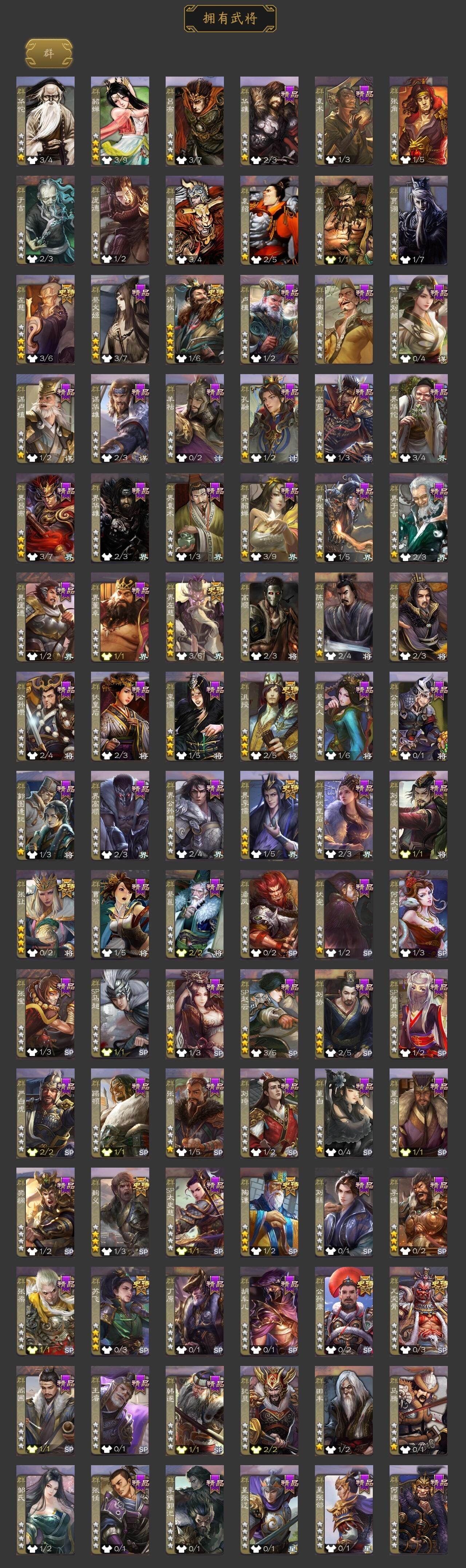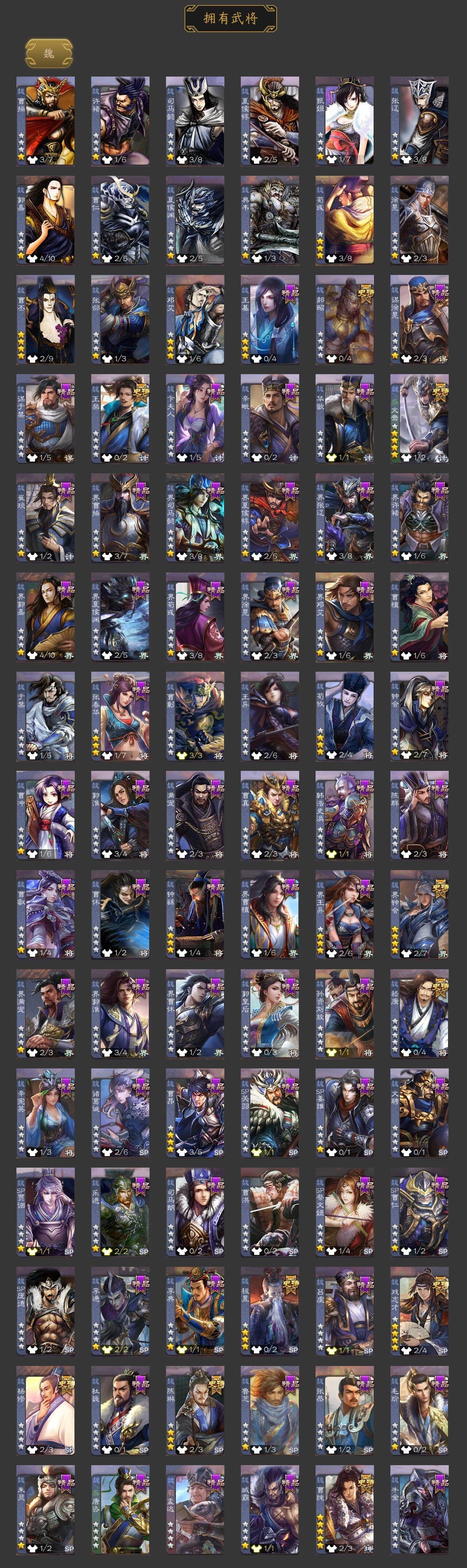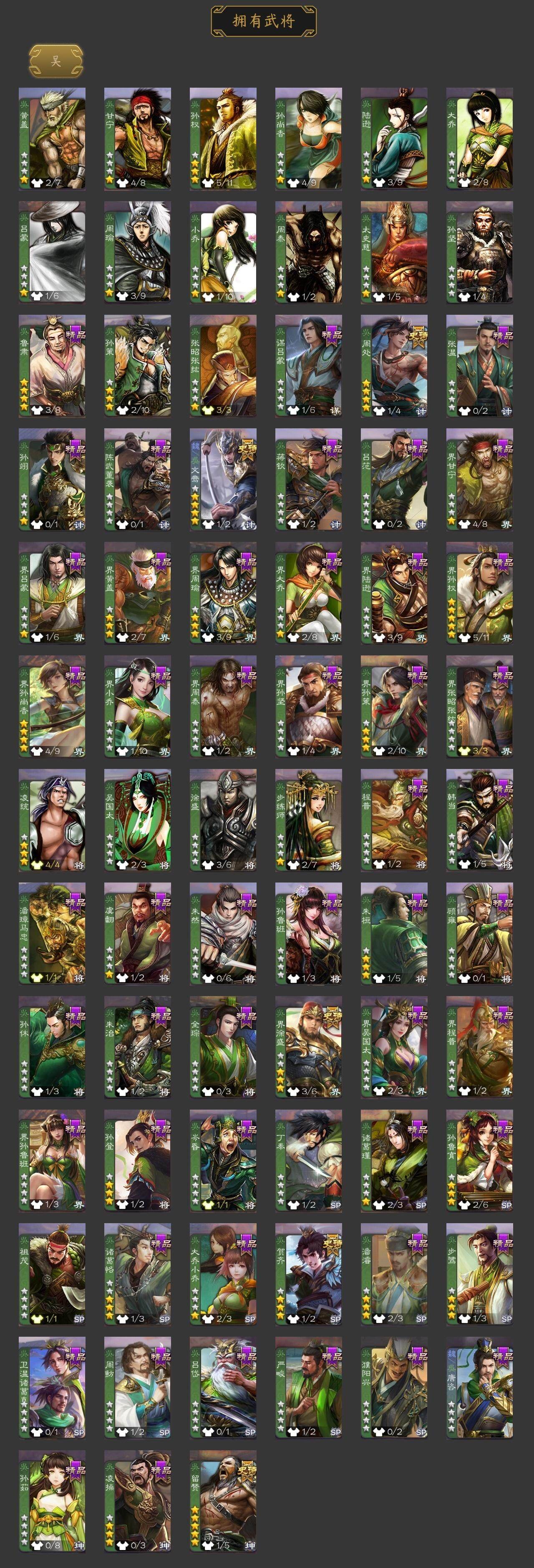 [15171921]【552】官阶:大将军;vip等级:vip10;史诗武将数量:34;动态皮肤数量:28;武将总数:339;史诗宝珠数量:0;将魂数量:738;神将:2;魏国史诗武将:13;蜀国史诗武将:9;吴国史诗武将:4;群史诗武将:11 神吕蒙神周瑜王粲杨修文鸯界钟会嵇康郝昭陈琳曹纯戏志才关索马云騄谋黄忠谋马超周群张星彩谯周董允鲍三娘周处留赞界徐盛贺齐左慈张让陶谦苏飞麹义沮授界左慈界李儒公孙康李傕许攸神曹操-天下归心星周不疑-龙年清明动态sp蔡文姬-兔年冬日动态荀彧-驱虎吞狼动态戏志才-举棋若定动态朱灵-以战破氐动态曹纯-虎年春节动态曹纯-长坂败备动态诸葛亮-龙年限定动态卧龙诸葛-龙跃凤鸣动态刘备-龙骧麟振动态关羽-明良千古动态马超-牛年春节动态马超-虎年冬至动态黄月英-虎年中秋动态诸葛亮-虎年中秋动态界刘备-龙骧麟振动态界马超-牛年春节动态关银屏-虎年端午动态张星彩-虎年端午动态鲍三娘-虎年七夕动态鲍三娘-柳娇桃艳动态李丰-太仓聚粟动态胡金定-明良千古动态周处-义除三害动态孙权-牛年七夕动态孙权-吴王六剑动态孙尚香-兔年春节动态孙尚香-星流霆击动态大乔-猪年七夕动态孙策-猪年七夕动态鲁肃-联刘抗曹动态界大乔-猪年七夕动态界孙权-牛年七夕动态界孙权-吴王六剑动态界孙尚香-星流霆击动态界孙策-猪年七夕动态凌统-长风破浪动态步练师-牛年七夕动态孙鲁育-猪年春节动态刘赞-灵魂歌王动态文鸯-势若万钧动态貂蝉-鼠年七夕动态界貂蝉-鼠年七夕动态sp赵云-单骑救主动态