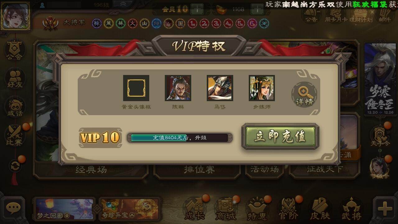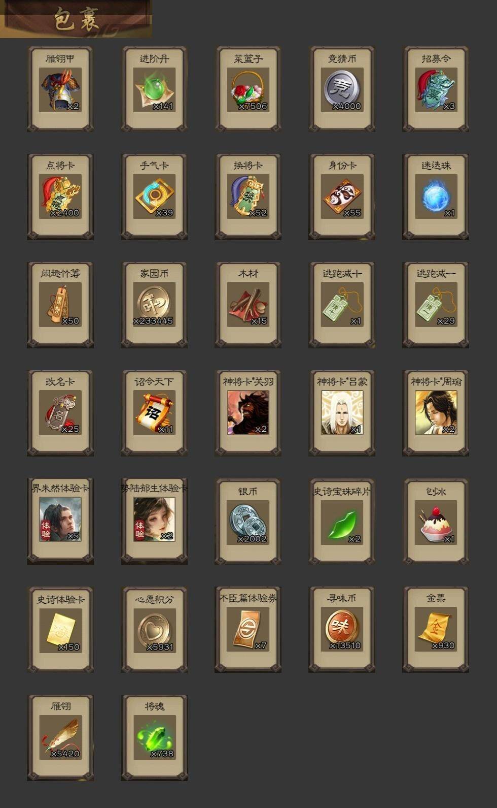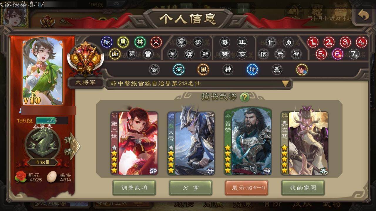 [15171921]【552】官阶:大将军;vip等级:vip10;史诗武将数量:34;动态皮肤数量:28;武将总数:339;史诗宝珠数量:0;将魂数量:738;神将:2;魏国史诗武将:13;蜀国史诗武将:9;吴国史诗武将:4;群史诗武将:11 神吕蒙神周瑜王粲杨修文鸯界钟会嵇康郝昭陈琳曹纯戏志才关索马云騄谋黄忠谋马超周群张星彩谯周董允鲍三娘周处留赞界徐盛贺齐左慈张让陶谦苏飞麹义沮授界左慈界李儒公孙康李傕许攸神曹操-天下归心星周不疑-龙年清明动态sp蔡文姬-兔年冬日动态荀彧-驱虎吞狼动态戏志才-举棋若定动态朱灵-以战破氐动态曹纯-虎年春节动态曹纯-长坂败备动态诸葛亮-龙年限定动态卧龙诸葛-龙跃凤鸣动态刘备-龙骧麟振动态关羽-明良千古动态马超-牛年春节动态马超-虎年冬至动态黄月英-虎年中秋动态诸葛亮-虎年中秋动态界刘备-龙骧麟振动态界马超-牛年春节动态关银屏-虎年端午动态张星彩-虎年端午动态鲍三娘-虎年七夕动态鲍三娘-柳娇桃艳动态李丰-太仓聚粟动态胡金定-明良千古动态周处-义除三害动态孙权-牛年七夕动态孙权-吴王六剑动态孙尚香-兔年春节动态孙尚香-星流霆击动态大乔-猪年七夕动态孙策-猪年七夕动态鲁肃-联刘抗曹动态界大乔-猪年七夕动态界孙权-牛年七夕动态界孙权-吴王六剑动态界孙尚香-星流霆击动态界孙策-猪年七夕动态凌统-长风破浪动态步练师-牛年七夕动态孙鲁育-猪年春节动态刘赞-灵魂歌王动态文鸯-势若万钧动态貂蝉-鼠年七夕动态界貂蝉-鼠年七夕动态sp赵云-单骑救主动态