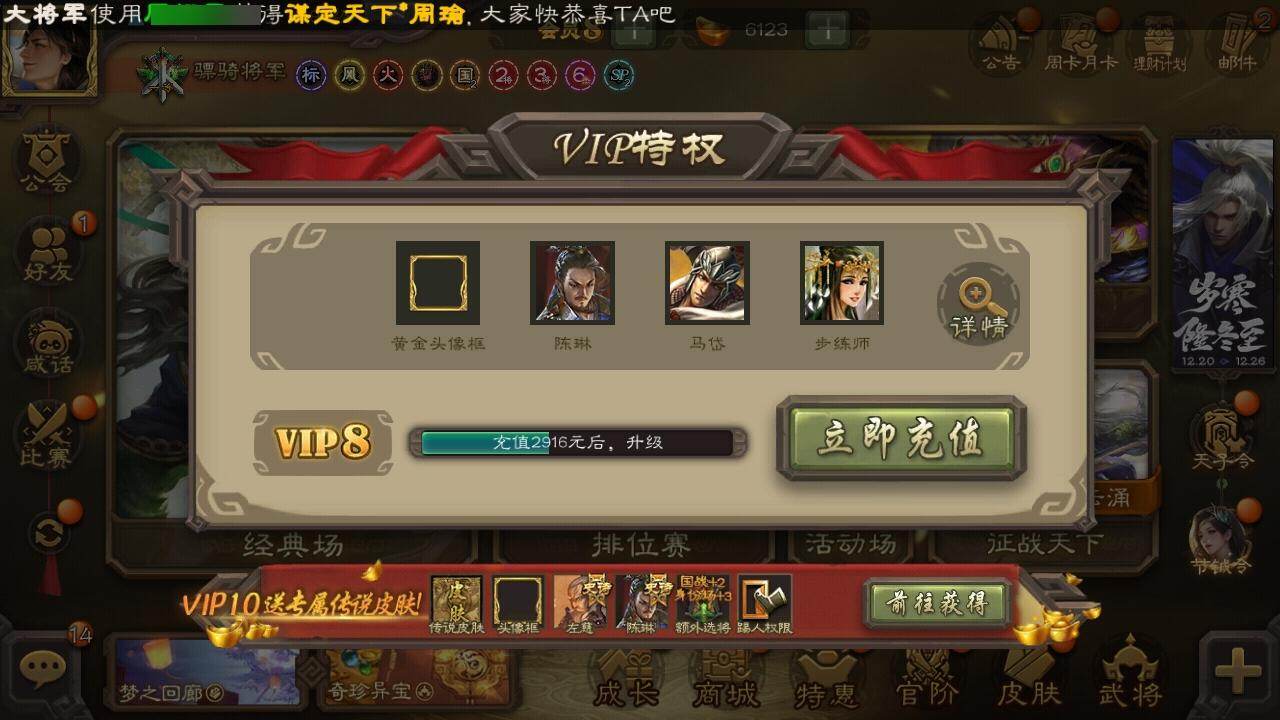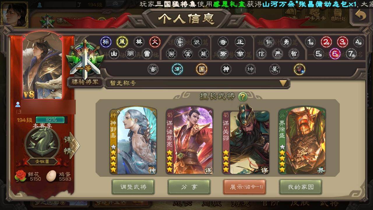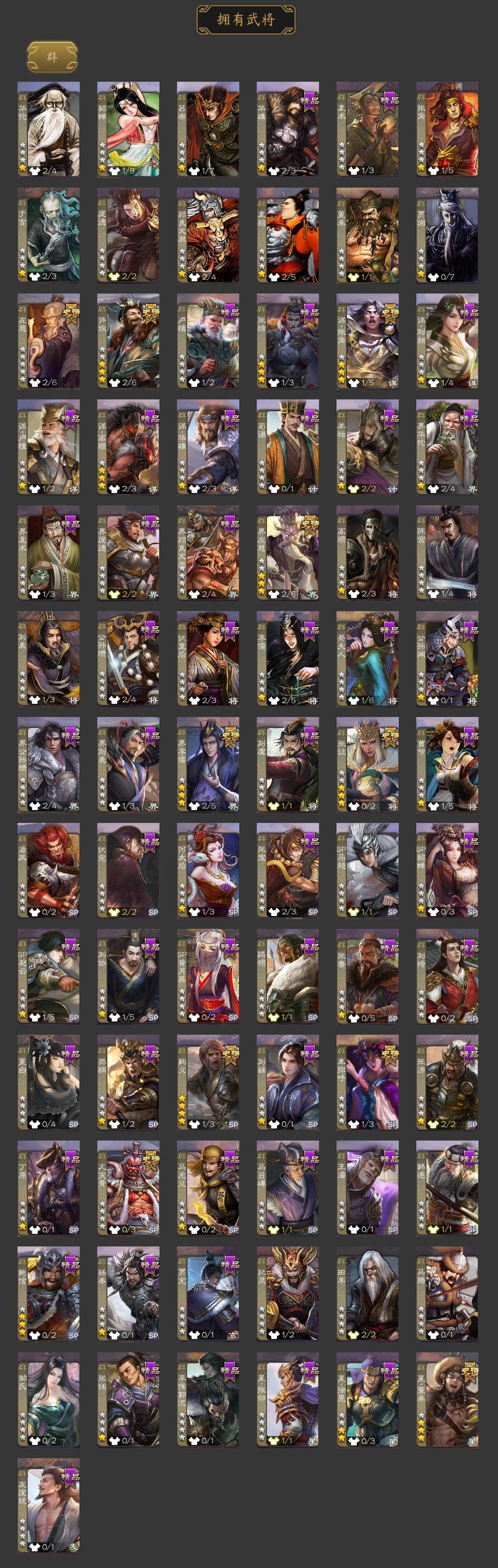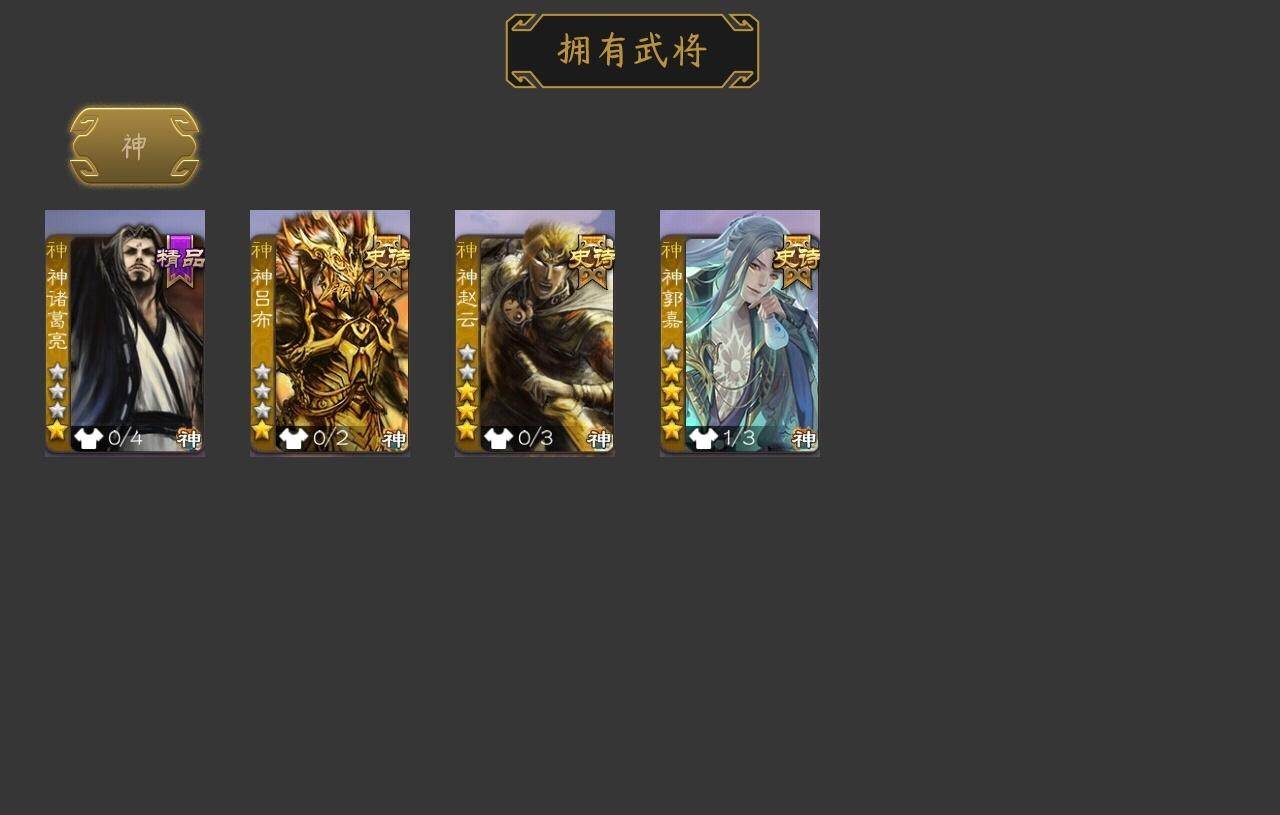 [15172234]【254】官阶:骠骑将军;vip等级:vip8;史诗武将数量:36;动态皮肤数量:23;武将总数:317;史诗宝珠数量:0;将魂数量:2071;神将:4;魏国史诗武将:19;蜀国史诗武将:11;吴国史诗武将:3;群史诗武将:11 神吕布神赵云神郭嘉神诸葛亮星周不疑杨修文鸯界钟会曹纯戏志才蒋干清河公主关索谋诸葛亮谋赵云谋马超诸葛瞻赵襄张星彩王平沙摩柯花鬘谋关羽吴景骆统界徐盛左慈张让麹义界左慈界李儒卑弥呼鲍信谋张角张绣许攸星董卓神郭嘉-虎年清明动态郭嘉-以身证道(动态)星周不疑-才广志宏动态钟会-龙年端午(动态)曹丕-气荡山河(动态)甄姬-明珠耀躯(动态)sp蔡文姬-兔年冬日动态钟会-谋谟之勋动态界钟会-谋谟之勋动态曹昂-竭战麟伤动态清河公主-魅影萦心动态费祎-安民护祚(动态)关索-虎年七夕动态诸葛果-蛇年限定动态卧龙诸葛-火烧博望动态周处-义除三害动态吕蒙-剑起惊澜动态孙权-永开吴祚动态徐盛-破军杀将动态麹义-扬刀立威动态李儒-鸠杀少帝动态界李儒-鸠杀少帝动态皇甫嵩-奋钺振旅动态左慈-蛇年限定动态