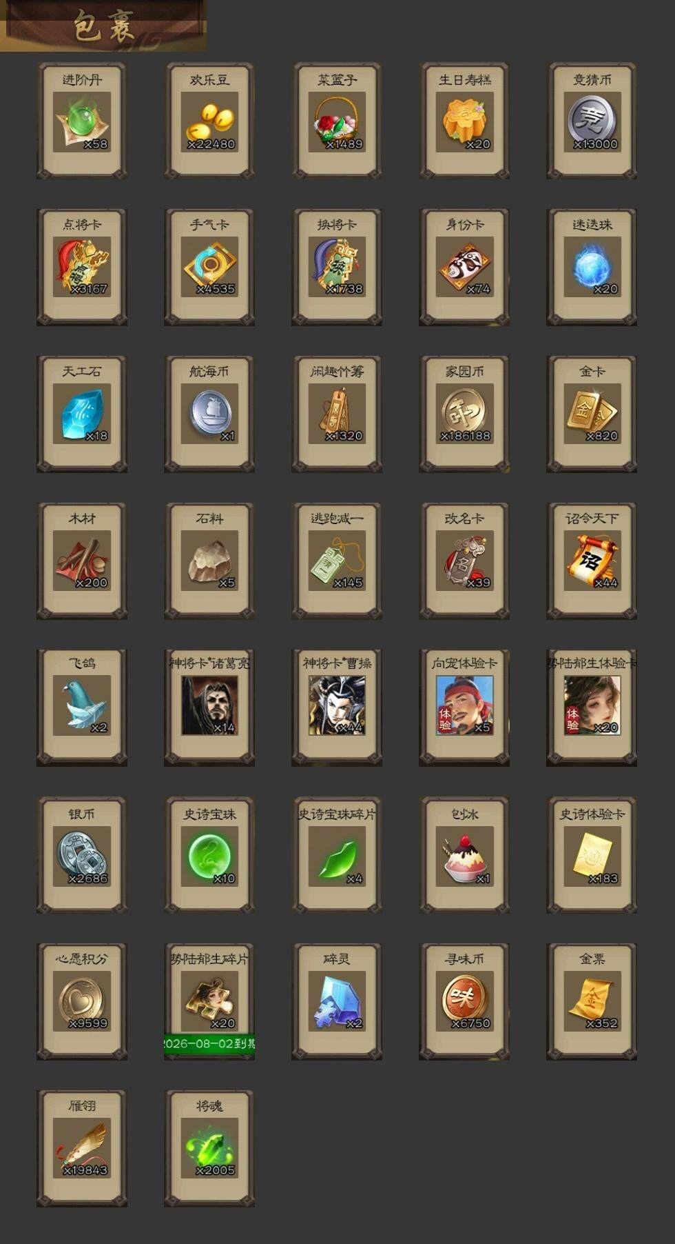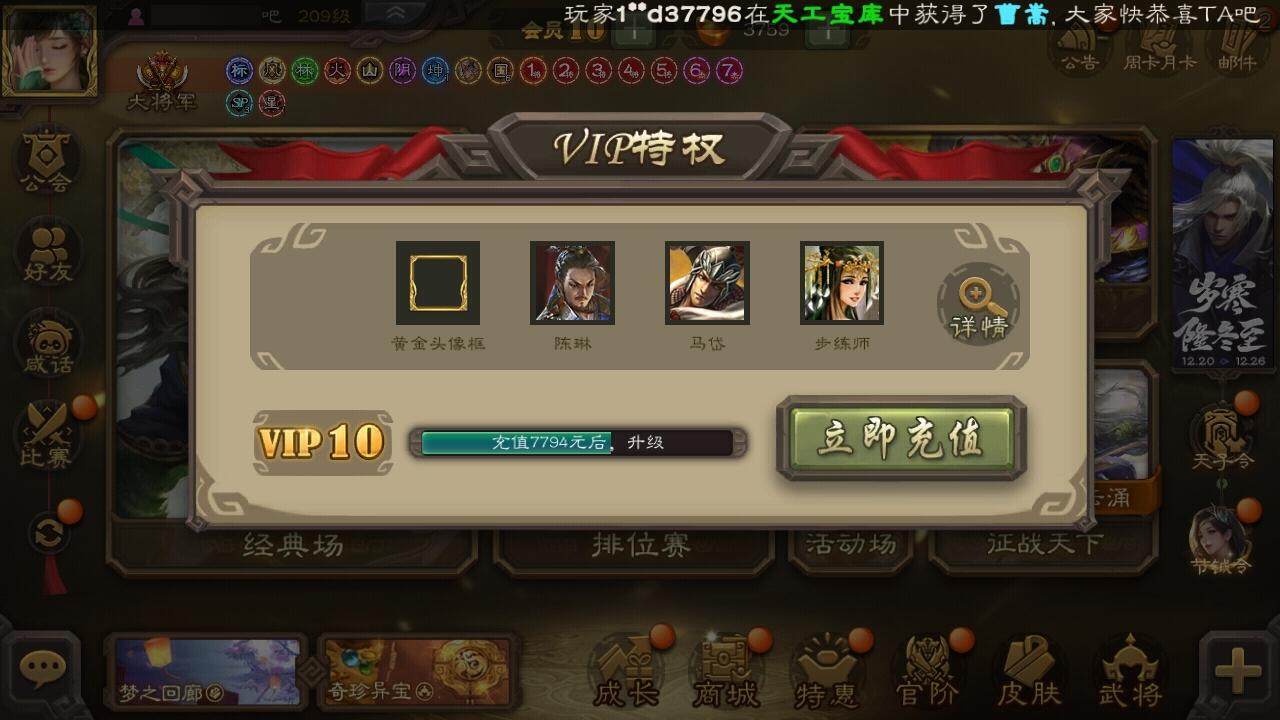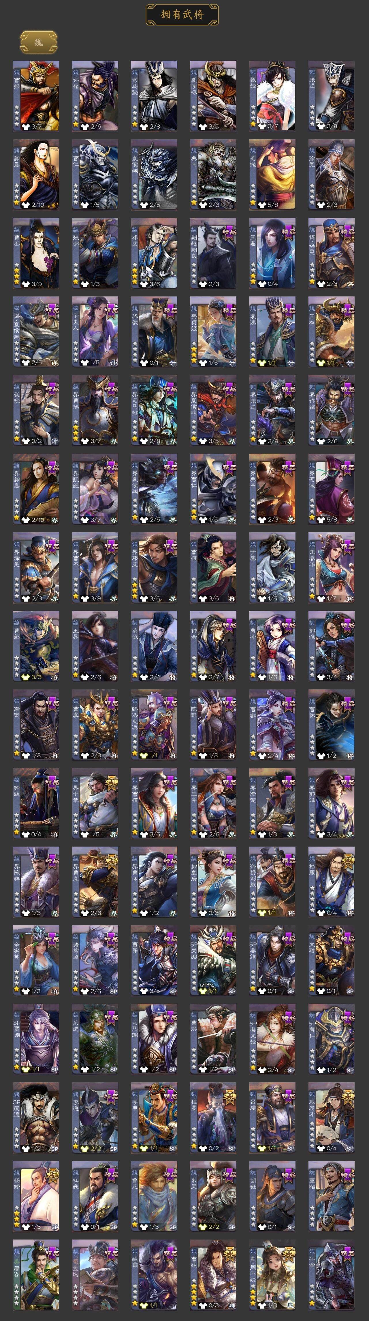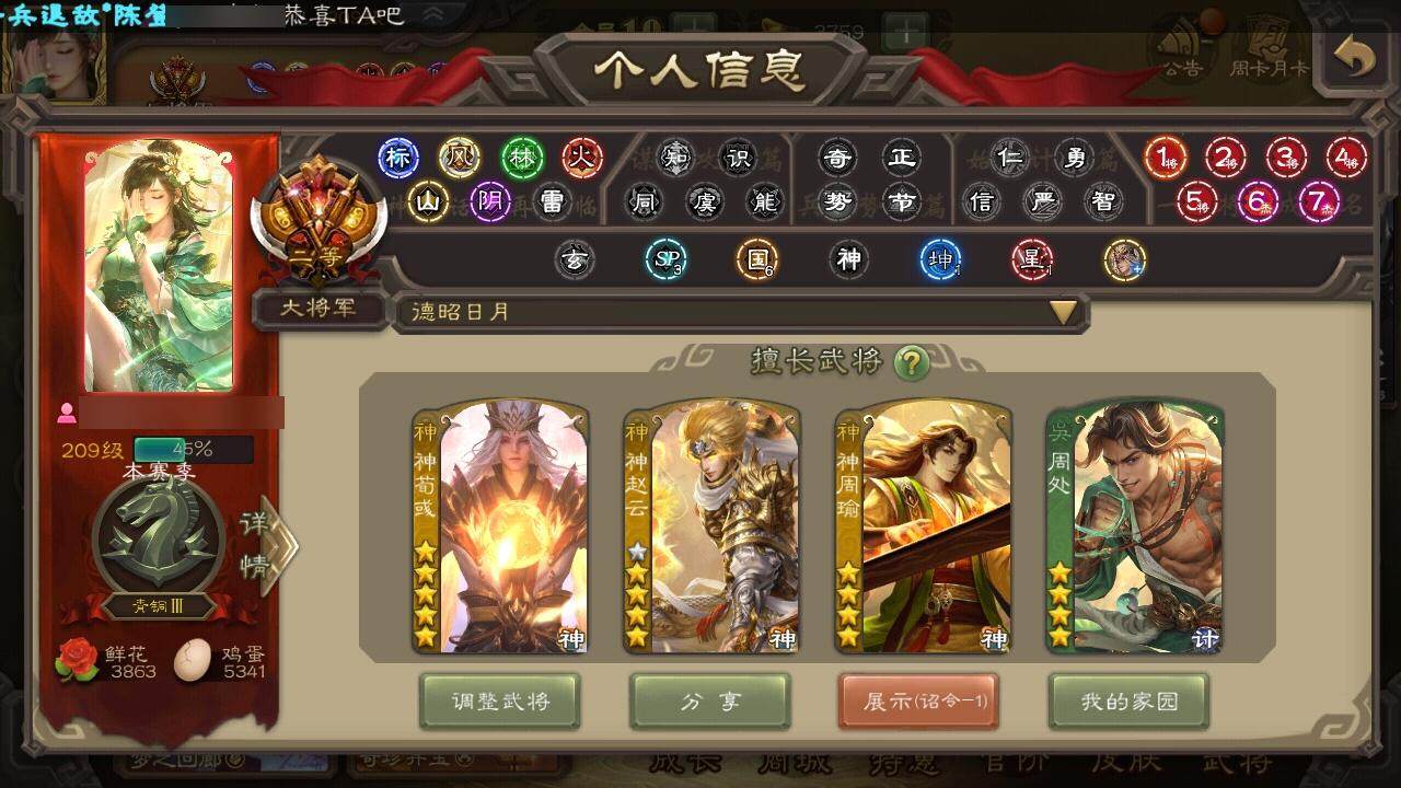 [15172374]【611】官阶:大将军;vip等级:vip10;史诗武将数量:41;动态皮肤数量:34;武将总数:397;史诗宝珠数量:10;将魂数量:2005;神将:8;魏国史诗武将:19;蜀国史诗武将:9;吴国史诗武将:7;群史诗武将:16 神吕布神赵云神刘备神荀彧神关羽神吕蒙神周瑜神诸葛亮星周不疑杨修界于禁界曹真嵇康曹纯戏志才马云騄谋赵云谋马超诸葛瞻周群王平沙摩柯界黄忠花鬘周处吴景骆统留赞界朱然界徐盛界步练师谋黄月英左慈郑玄张让星黄忠苏飞麹义沮授界左慈公孙康卑弥呼鲍信阎象许攸友徐庶星董卓神荀彧-匡汉延祚动态神周瑜-陵光引灵动态神诸葛亮-观星唤雨神曹操-天下归心神曹操-玄天通冥动态神赵云-战龙在野动态星周不疑-才广志宏动态曹植-龙年中秋动态曹丕-气荡山河(动态)甄姬-明珠耀躯(动态)曹丕-龙年中秋动态sp蔡文姬-兔年冬日动态邓艾-神兵天降动态界邓艾-神兵天降动态朱灵-以战破氐动态王元姬-鼠年冬至动态星徐晃-斧引霹雳动态花鬘-依心缱绻动态刘备-龙御天下动态诸葛亮-龙年限定动态费祎-安民护祚(动态)关羽-明良千古动态黄月英-明良千古动态界黄月英-明良千古动态赵襄-猪年春节动态周处-义除三害动态孙权-永开吴祚动态孙策-虎踞江东动态孙权-牛年七夕动态大乔-猪年七夕动态大乔-鼠年春分动态孙策-猪年七夕动态界大乔-猪年七夕动态界大乔-鼠年春分动态界孙权-牛年七夕动态界孙策-猪年七夕动态孙鲁育-牛年端午动态袁绍-声震寰宇动态卑弥呼-呼风唤雨动态貂蝉-鼠年七夕动态吕布-鼠年七夕动态左慈-役使鬼神动态许攸-盛气凌人动态界吕布-鼠年七夕动态界貂蝉-鼠年七夕动态李儒-鸠杀少帝动态杨彪-忧心国事动态