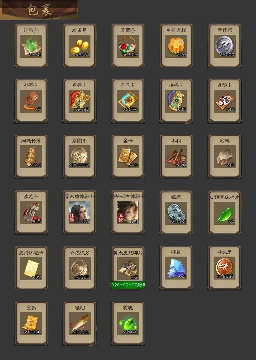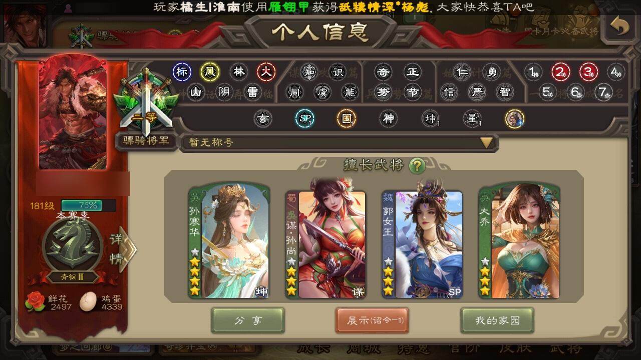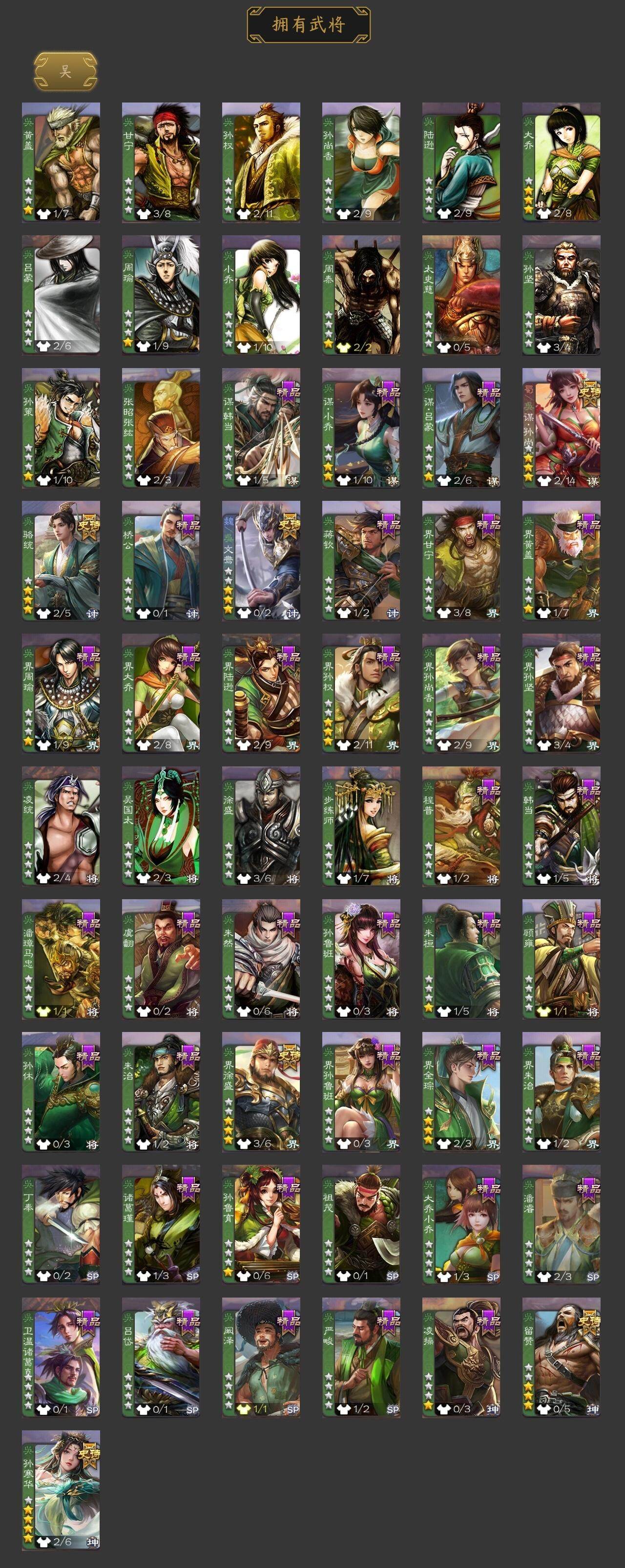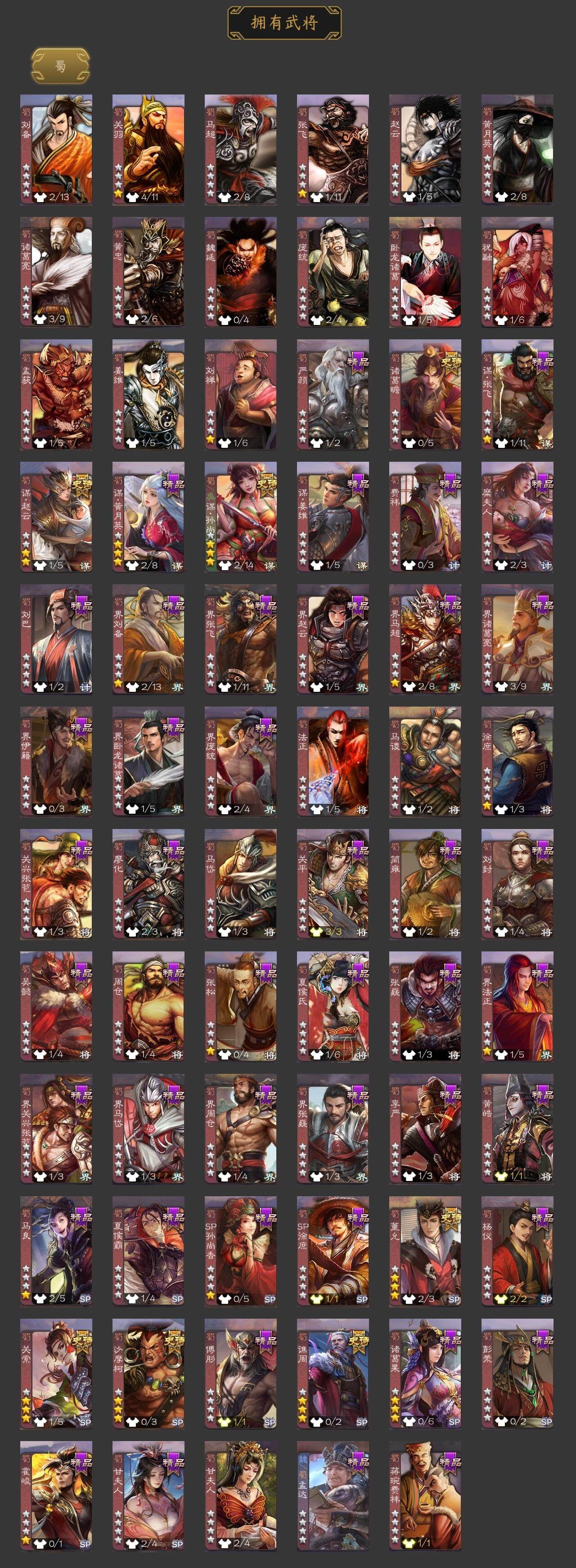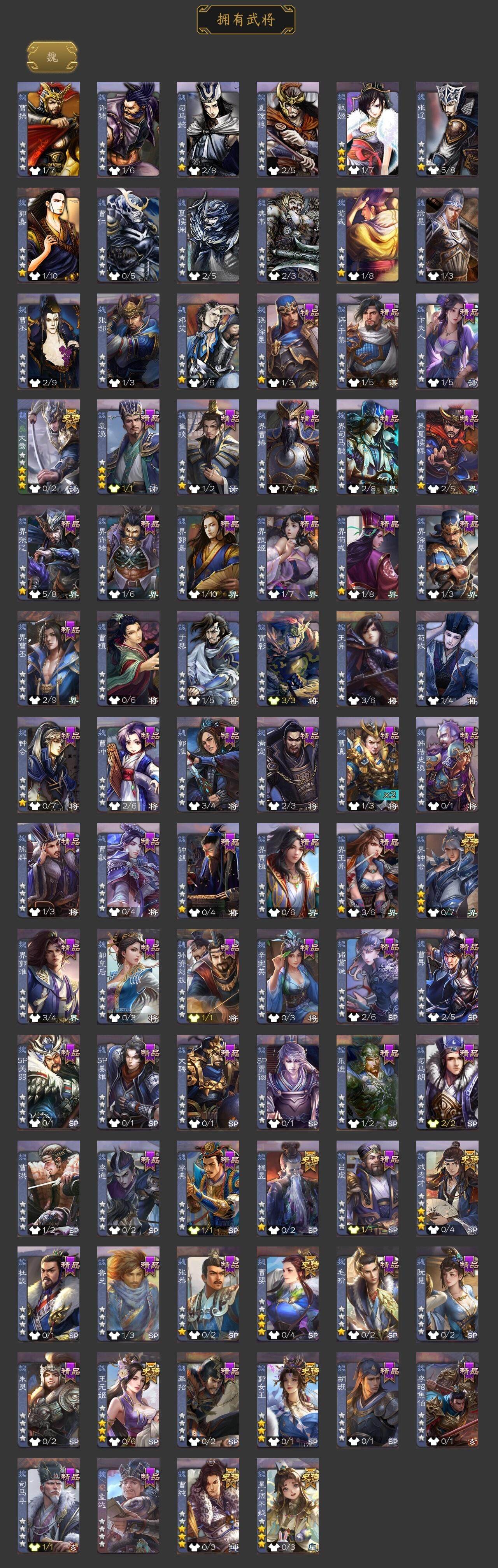 [15172394]【649】官阶:骠骑将军;vip等级:vip8;史诗武将数量:28;动态皮肤数量:18;武将总数:277;史诗宝珠数量:0;将魂数量:2070;神将:3;魏国史诗武将:6;蜀国史诗武将:8;吴国史诗武将:4;群史诗武将:7 神赵云神吕蒙神周瑜郭女王星周不疑文鸯王元姬界钟会曹婴曹纯戏志才关索谋孙尚香谋赵云诸葛瞻沙摩柯谯周董允孙寒华骆统留赞界徐盛谋黄月英裴秀界沮授麹义界李儒谋张角许攸神郭嘉-虎年清明动态神荀彧-虎年清明动态曹丕-气荡山河(动态)甄姬-明珠耀躯(动态)sp蔡文姬-兔年冬日动态花鬘-依心缱绻动态诸葛亮-龙年限定动态关羽-明良千古动态张星彩-临军对阵动态关索-虎年七夕动态小乔-兔年七夕动态周处-义除三害动态孙权-永开吴祚动态周瑜-兔年七夕动态孙寒华-蛇年限定动态袁绍-声震寰宇动态麹义-扬刀立威动态貂蝉-绝世倾城动态界貂蝉-绝世倾城动态