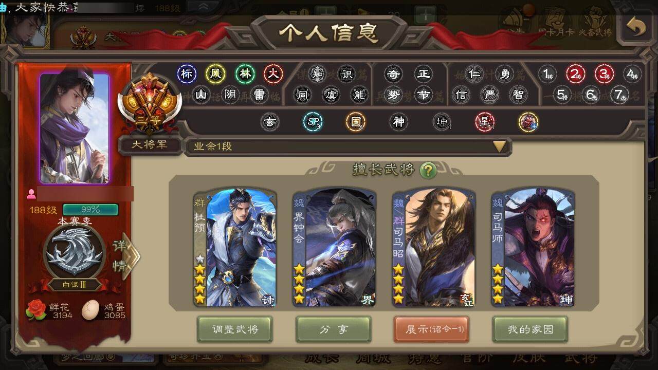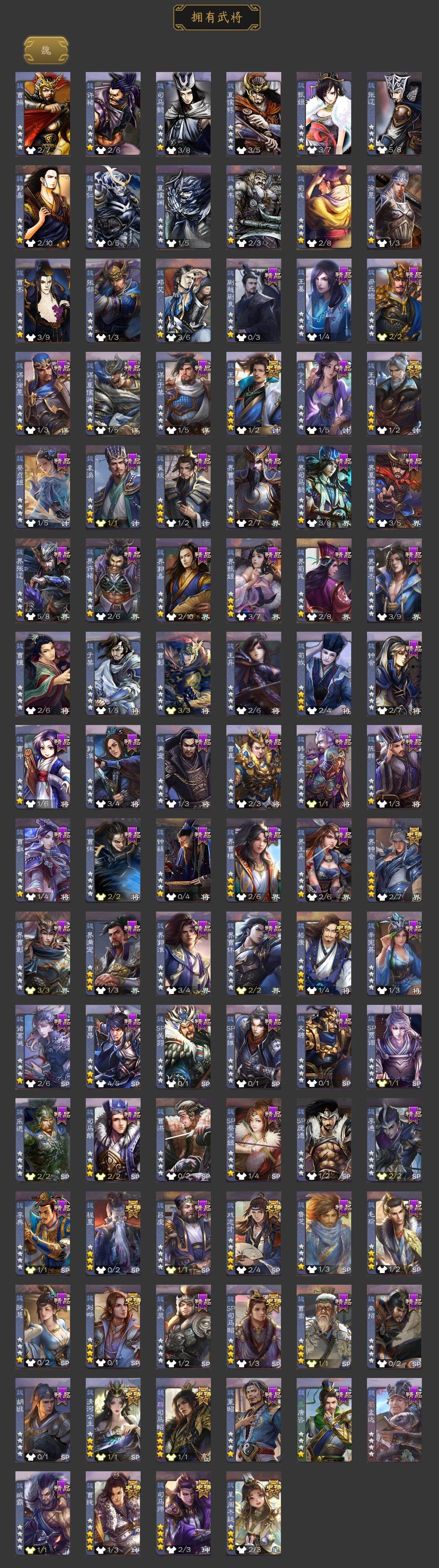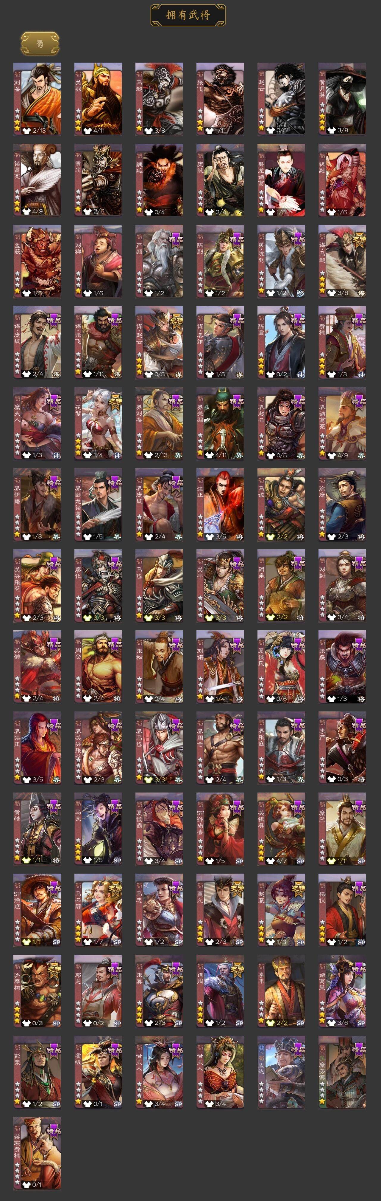 [15172549]【138】官阶:大将军;vip等级:vip9;史诗武将数量:40;动态皮肤数量:32;武将总数:345;史诗宝珠数量:1;将魂数量:3139;神将:3;魏国史诗武将:27;蜀国史诗武将:8;吴国史诗武将:4;群史诗武将:12 神陆逊神张辽神周瑜sp司马昭星周不疑王粲王凌魏-司马昭司马师界钟会嵇康曹纯戏志才刘晔清河公主马云騄谋赵云谋马超赵襄沙摩柯谯周花鬘董允谋黄盖周处界徐盛贺齐谋公孙瓒十常侍裴秀左慈郑玄星黄忠麹义南华老仙界李儒杜预谋张角星董卓神太史慈-勇撼日月动态神刘备-龙兴海内神周瑜-波澜不惊星周不疑-才广志宏动态钟会-潜蛟觊天动态曹丕-气荡山河(动态)星周不疑-龙年清明动态甄姬-明珠耀躯(动态)曹丕-龙年中秋动态sp蔡文姬-兔年冬日动态司马懿-牛年立冬动态荀彧-驱虎吞狼动态界司马懿-牛年立冬动态朱灵-以战破氐动态曹纯-长坂败备动态司马昭-昭威淮南(动态)清河公主-魅影萦心动态花鬘-依心缱绻动态马超-虎年冬至动态黄月英-明良千古动态关银屏-虎年端午动态李丰-太仓聚粟动态诸葛果-虎年中秋动态诸葛果-蛇年限定动态孙茹-龙年七夕动态周处-义除三害动态吕蒙-剑起惊澜动态孙权-冠绝天下动态小乔-鼠年春分动态周妃-笼中箜响动态凌统-长风破浪动态界凌统-长风破浪动态孙寒华-蛇年限定动态陆逊-蛇年清明动态曹节-龙年中秋动态南华老仙-冠绝天下动态杜预-龙吟破竹动态吕布-鼠年七夕动态界吕布-鼠年七夕动态张琪瑛-虎年冬至动态左慈-蛇年限定动态