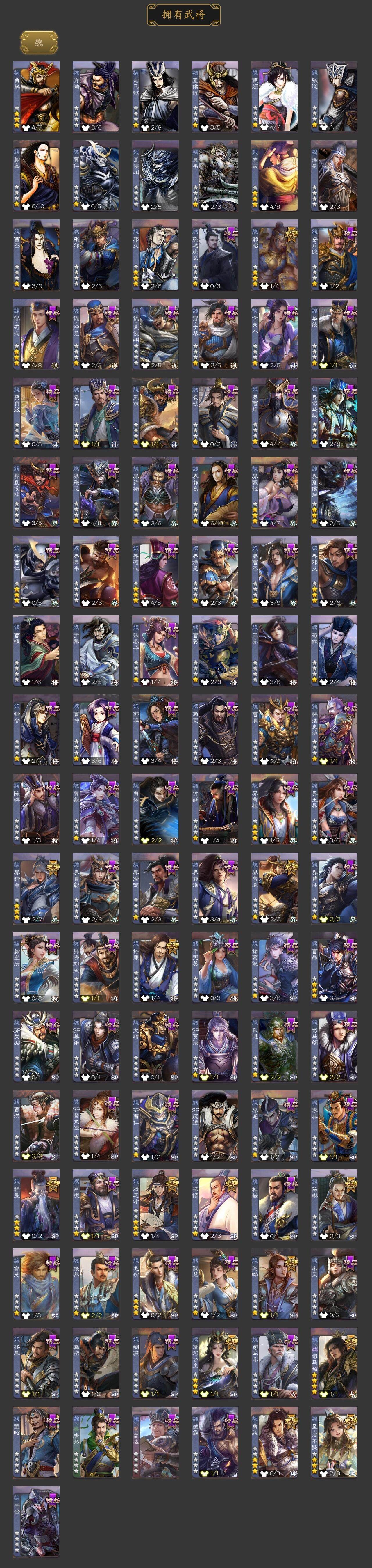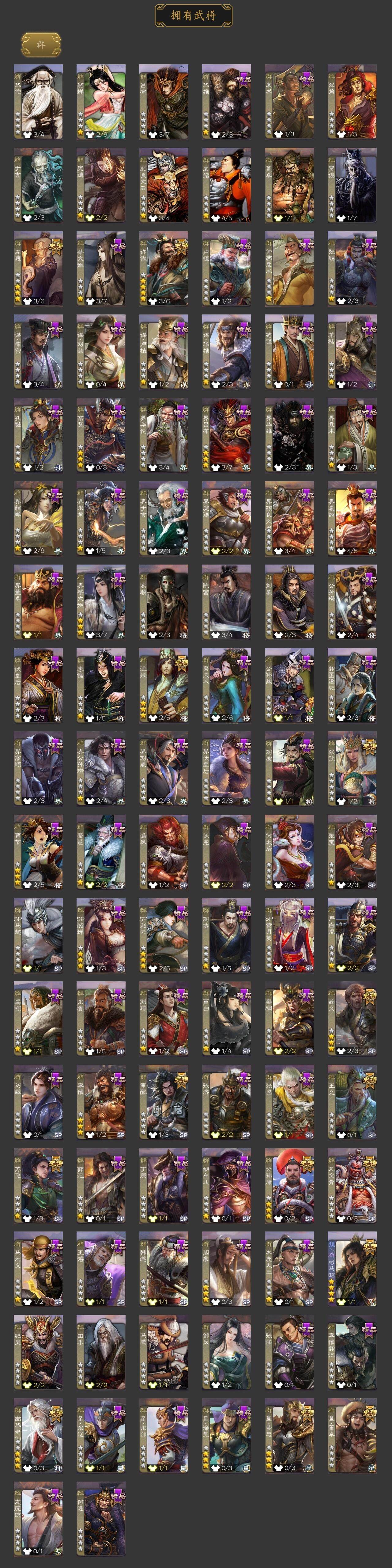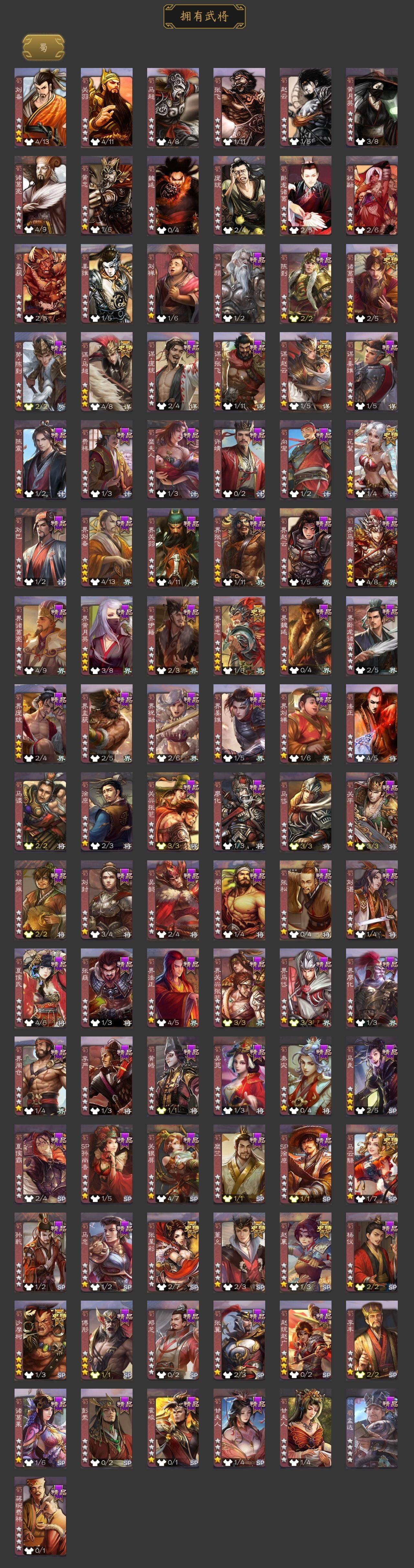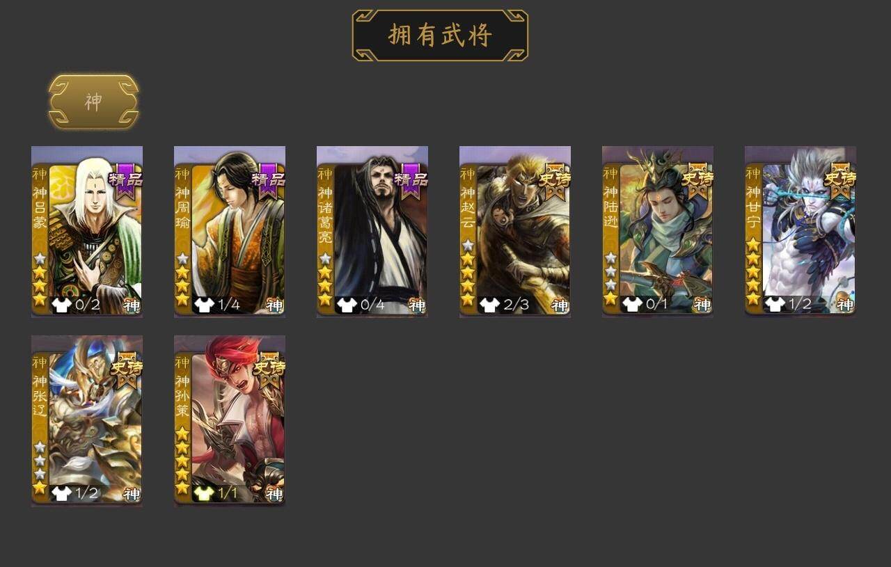 [15172634]【507】官阶:大将军;vip等级:vip10;史诗武将数量:46;动态皮肤数量:42;武将总数:411;史诗宝珠数量:0;将魂数量:0;神将:8;魏国史诗武将:28;蜀国史诗武将:10;吴国史诗武将:5;群史诗武将:16 神赵云神陆逊神甘宁神张辽神孙策神吕蒙神周瑜神诸葛亮星周不疑杨修魏-司马昭界钟会界曹真嵇康郝昭陈琳曹纯戏志才刘晔清河公主马云騄谋赵云谋马超诸葛瞻赵襄张星彩沙摩柯界黄忠花鬘董允骆统留赞界朱然界徐盛贺齐谋荀彧左慈张让星黄忠王允苏飞审配麹义南华老仙沮授公孙康张绣李傕阎象许攸星董卓神孙策-霸王再世动态神张辽-散敌擒孙神甘宁-万人辟易动态神赵云-战龙在野动态神赵云-神龙天降星周不疑-才广志宏动态曹丕-气荡山河(动态)星周不疑-龙年清明动态甄姬-明珠耀躯(动态)sp蔡文姬-兔年冬日动态许褚-兔年端午动态荀彧-驱虎吞狼动态曹丕-牛年清明动态邓艾-神兵天降动态界曹丕-牛年清明动态界邓艾-神兵天降动态钟会-谋谟之勋动态界钟会-谋谟之勋动态司马昭-昭威淮南(动态)清河公主-魅影萦心动态花鬘-依心缱绻动态刘备-龙御天下动态卧龙诸葛-龙跃凤鸣动态法正-恩山怨海动态马超-牛年春节动态马超-虎年冬至动态黄月英-虎年中秋动态诸葛亮-虎年中秋动态界马超-牛年春节动态夏侯氏-明良千古动态关银屏-兔年春节动态李丰-太仓聚粟动态周处-义除三害动态陆逊-龙年七夕动态孙权-兔年中秋动态孙权-永开吴祚动态孙策-虎踞江东动态孙权-吴王六剑动态孙尚香-星流霆击动态界孙权-吴王六剑动态界孙尚香-星流霆击动态徐盛-破军杀将动态袁绍-声震寰宇动态麹义-扬刀立威动态吕布-傲睨万物动态袁绍-一往无前动态许攸-恃功矜能动态许攸-盛气凌人动态界袁绍-一往无前动态刘焉-雄踞益州动态张琪瑛-虎年冬至动态皇甫嵩-奋钺振旅动态左慈-蛇年限定动态