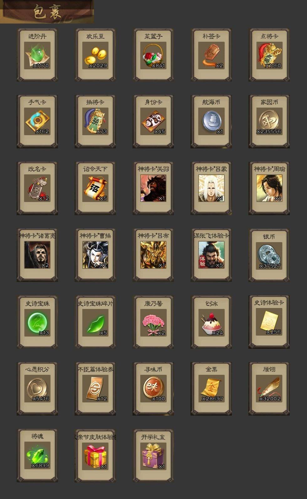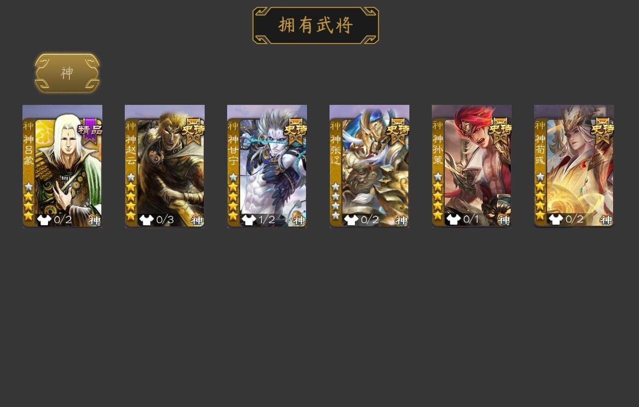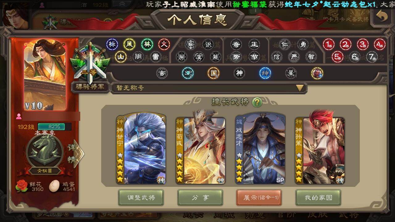 [15172703]【572】官阶:骠骑将军;vip等级:vip10;史诗武将数量:23;动态皮肤数量:10;武将总数:301;史诗宝珠数量:13;将魂数量:6899;神将:6;魏国史诗武将:13;蜀国史诗武将:2;吴国史诗武将:5;群史诗武将:7 神赵云神甘宁神张辽神孙策神荀彧神吕蒙界钟会曹纯戏志才张星彩沙摩柯留赞界朱然界徐盛界步练师贺齐左慈司马徽麹义沮授公孙康李傕许攸神甘宁-万人辟易动态神周瑜-焰腾麒麟动态许褚-虎啸生风动态邓艾-神兵天降动态王粲-笔翰如流动态界许褚-虎啸生风动态钟会-谋谟之勋动态界钟会-谋谟之勋动态戏志才-举棋若定动态刘备-明良千古动态黄月英-虎年中秋动态界刘备-明良千古动态孙权-猪年端午动态界孙权-猪年端午动态吕布-傲睨万物动态