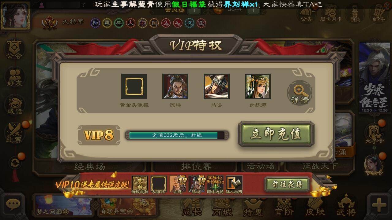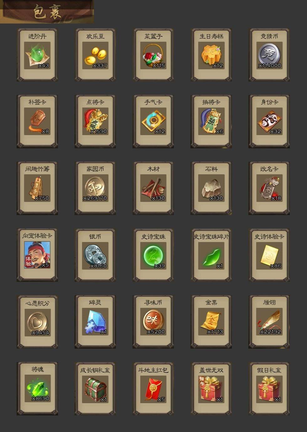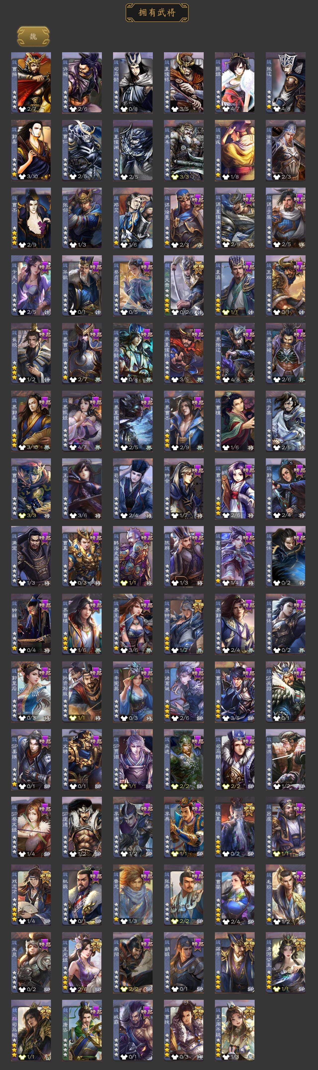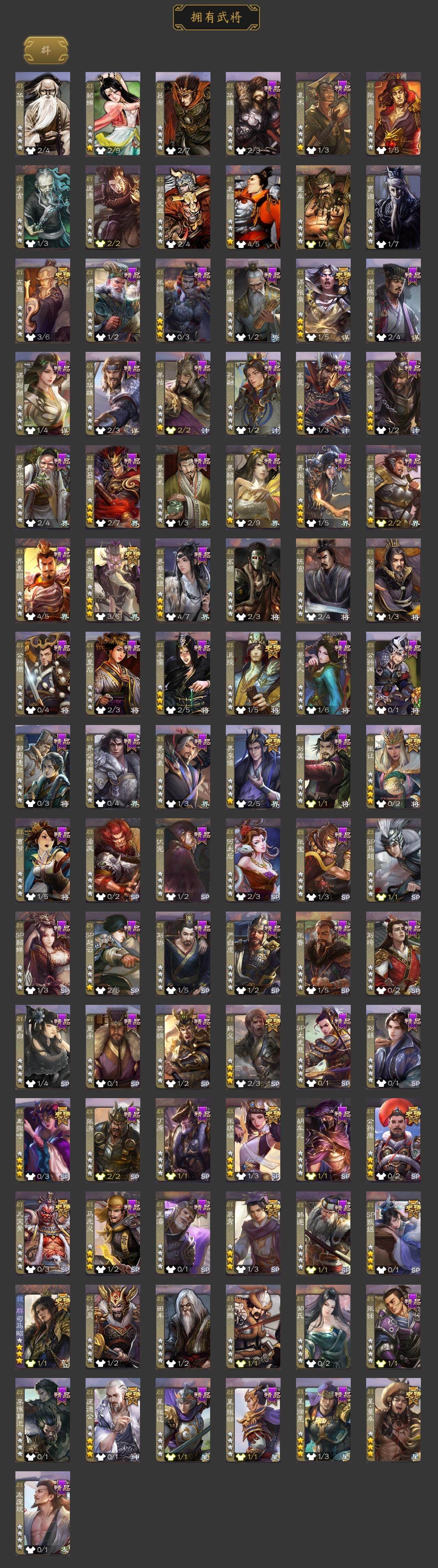 [15172949]【54】官阶:大将军;vip等级:vip8;史诗武将数量:36;动态皮肤数量:29;武将总数:335;史诗宝珠数量:39;将魂数量:8690;神将:1;魏国史诗武将:24;蜀国史诗武将:6;吴国史诗武将:4;群史诗武将:15 神诸葛亮星周不疑文鸯王元姬魏-司马昭界钟会曹婴曹纯戏志才蒋干清河公主谋赵云谋马超赵襄王平沙摩柯花鬘张奋谋陆逊界朱然界徐盛裴秀左慈张让张琪瑛麹义庞德公沮授界左慈界李儒公孙康卑弥呼谋张角张绣星董卓sp甄姬神鲁肃-九州为局神吕蒙-心生万象神诸葛亮-孟章诛邪动态神赵云-神龙天降星周不疑-才广志宏动态钟会-龙年端午(动态)曹植-龙年中秋动态曹丕-气荡山河(动态)甄姬-明珠耀躯(动态)sp蔡文姬-兔年冬日动态张春华-牛年立冬动态曹婴-兔年春节动态王元姬-鼠年冬至动态司马昭-昭威淮南(动态)星徐晃-斧引霹雳动态清河公主-魅影萦心动态花鬘-依心缱绻动态卧龙诸葛-龙跃凤鸣动态周处-义除三害动态吕蒙-剑起惊澜动态陆逊-龙年七夕动态孙权-永开吴祚动态周瑜-免年清明动态孙尚香-兔年春节动态孙尚香-星流霆击动态界孙尚香-星流霆击动态孙寒华-蛇年限定动态许攸-火烧乌巢动态袁绍-声震寰宇动态左慈-道法显威(动态)麹义-扬刀立威动态李儒-鸠杀少帝动态界李儒-鸠杀少帝动态sp赵云-威名尽显动态左慈-蛇年限定动态