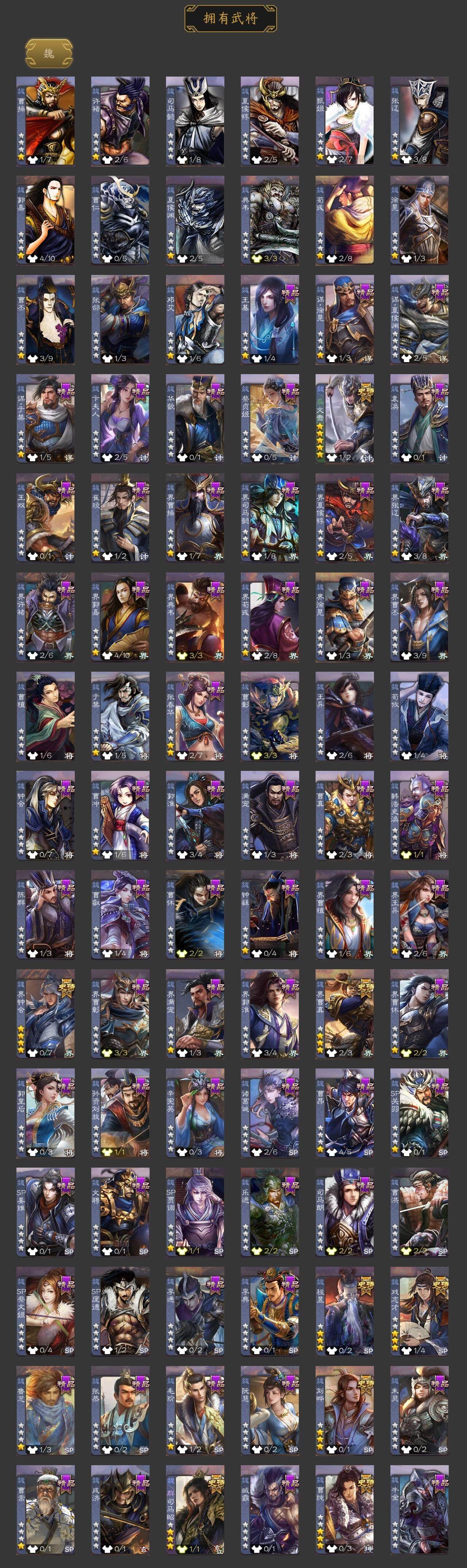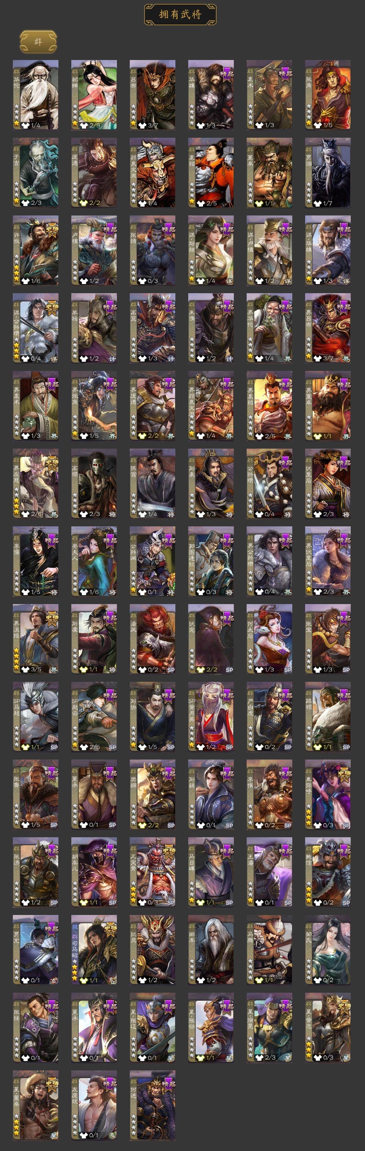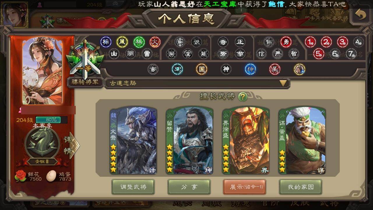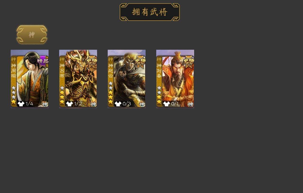 [15173123]【756】官阶:骠骑将军;vip等级:vip9;史诗武将数量:31;动态皮肤数量:22;武将总数:335;史诗宝珠数量:0;将魂数量:3940;神将:4;魏国史诗武将:14;蜀国史诗武将:5;吴国史诗武将:7;群史诗武将:10 神吕布神赵云神刘备神周瑜文鸯魏-司马昭界钟会界曹真曹纯戏志才刘晔谋赵云谋马超沙摩柯谯周花鬘谋黄盖周处骆统留赞界徐盛势陆郁生势太史慈谋公孙瓒界沮授星黄忠界左慈卑弥呼鲍信张绣李傕许攸星董卓神吕布-监兵噬魅动态星周不疑-才广志宏动态曹植-龙年中秋动态曹丕-龙年中秋动态荀彧-驱虎吞狼动态张春华-雪中舞刃动态司马昭-昭威淮南(动态)星徐晃-斧引霹雳动态鲍三娘-虎年七夕动态黄盖-兔年端午动态孙权-牛年七夕动态界孙权-牛年七夕动态徐盛-破军杀将动态刘赞-灵魂歌王动态鲁肃-蛇年端午动态文鸯-势若万钧动态麹义-扬刀立威动态吕布-鼠年七夕动态界吕布-鼠年七夕动态sp赵云-威名尽显动态皇甫嵩-奋钺振旅动态陶谦-安民护祚动态左慈-蛇年限定动态