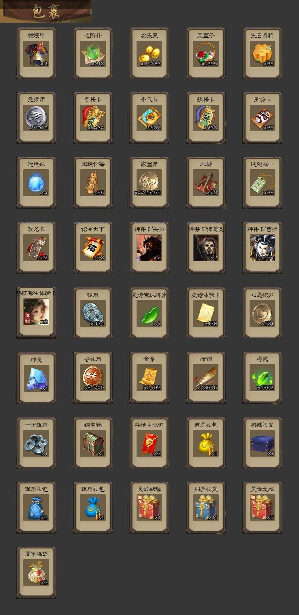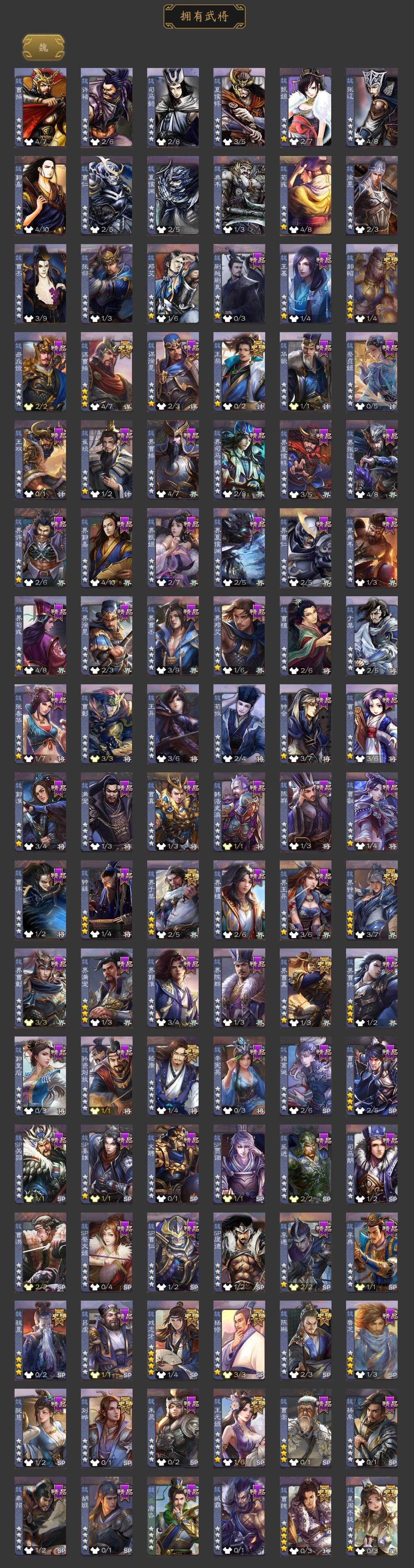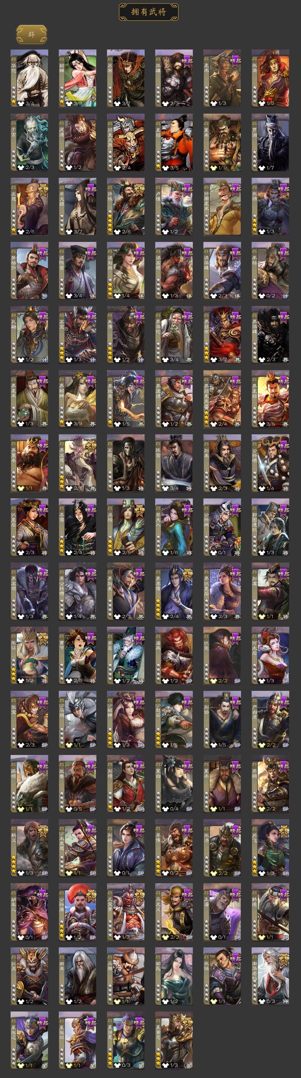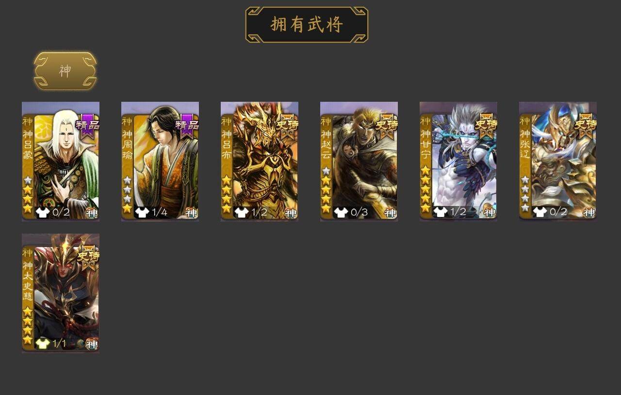 [15173264]【77】官阶:大将军;vip等级:vip10;史诗武将数量:47;动态皮肤数量:38;武将总数:382;史诗宝珠数量:0;将魂数量:1552;神将:7;魏国史诗武将:20;蜀国史诗武将:9;吴国史诗武将:6;群史诗武将:13 神吕布神赵云神甘宁神张辽神太史慈神吕蒙神周瑜星周不疑王粲谋曹操杨修王元姬界钟会界于禁界曹真嵇康郝昭陈琳曹纯戏志才刘晔马云騄谋赵云谋马超诸葛瞻周群赵襄张星彩沙摩柯花鬘谋黄盖孙寒华骆统留赞界徐盛贺齐左慈张让星黄忠苏飞麹义南华老仙沮授界左慈界李儒公孙康张绣李傕许攸神太史慈-勇撼日月动态神刘备-龙兴海内神甘宁-万人辟易动态神曹操-天下归心神吕布-冠绝天下动态钟会-龙年端午(动态)曹丕-气荡山河(动态)甄姬-明珠耀躯(动态)荀彧-驱虎吞狼动态钟会-谋谟之勋动态钟繇-稳定关右动态界钟会-谋谟之勋动态杨修-鼠年端午动态王元姬-鼠年冬至动态司马昭-昭威淮南(动态)刘备-龙御天下动态诸葛亮-龙年限定动态关羽-明良千古动态马超-虎年冬至动态诸葛亮-明良千古动态刘禅-猪年端午动态界诸葛亮-明良千古动态界刘禅-猪年端午动态夏侯氏-猪年中秋动态李丰-太仓聚粟动态太史慈-涤荡江东动态孙策-兔年清明动态周处-义除三害动态吕蒙-剑起惊澜动态孙权-永开吴祚动态周瑜-兔年七夕动态孙寒华-莲华熠熠动态黄盖-鏖战赤壁动态孙权-猪年端午动态孙尚香-星流霆击动态界黄盖-鏖战赤壁动态界孙权-猪年端午动态界孙尚香-星流霆击动态步练师-牛年七夕动态刘赞-抗音而歌动态刘赞-灵魂歌王动态貂蝉-舞惑群心动态袁绍-声震寰宇动态吕布-鼠年七夕动态许攸-盛气凌人动态谋刘赪-明良千古动态界吕布-鼠年七夕动态sp貂蝉-驭魂千机动态