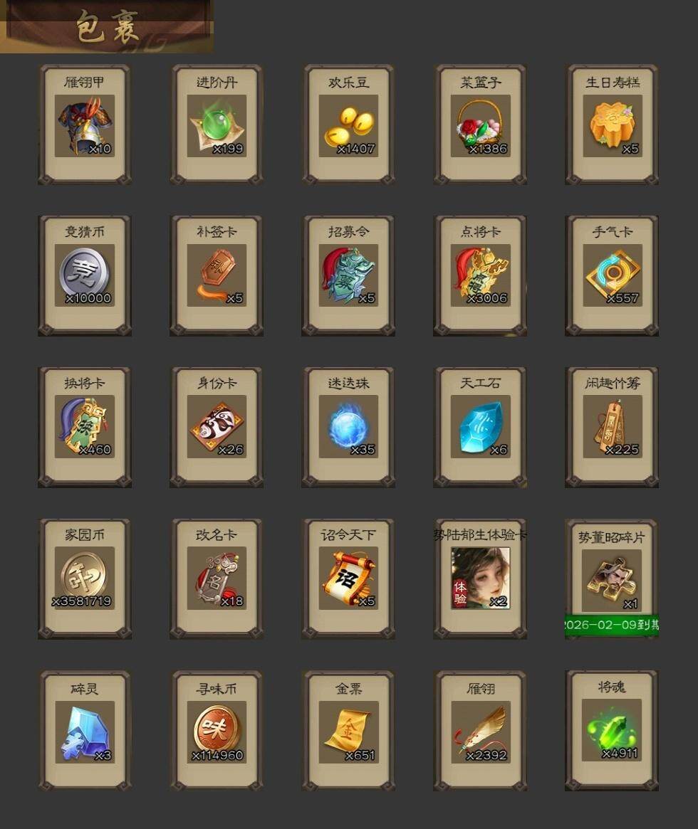 [15173396]【145】官阶:骠骑将军;vip等级:vip9;史诗武将数量:31;动态皮肤数量:26;武将总数:311;史诗宝珠数量:0;将魂数量:4911;神将:3;魏国史诗武将:18;蜀国史诗武将:9;吴国史诗武将:4;群史诗武将:10 神赵云神吕蒙神周瑜王粲魏-司马昭界钟会郝昭曹纯戏志才谋诸葛亮谋刘备谋赵云诸葛瞻赵襄沙摩柯谯周傅佥花鬘孙寒华界徐盛界步练师谋孙权谋郭嘉左慈徐荣星黄忠审配麹义南华老仙沮授界李儒许攸神鲁肃-九州为局神赵云-战龙在野动态神司马懿-鉴往知来动态钟会-龙年端午(动态)钟繇-安民护祚(动态)sp蔡文姬-兔年冬日动态曹昂-竭战麟伤动态戏志才-举棋若定动态曹婴-锋芒毕露动态司马昭-昭威淮南(动态)张辽-龙生九子(动态)星徐晃-斧引霹雳动态关羽-明良千古动态刘禅-猪年端午动态界刘禅-猪年端午动态赵襄-猪年春节动态诸葛果-蛇年限定动态太史慈-涤荡江东动态孙策-兔年清明动态周处-义除三害动态孙权-永开吴祚动态孙寒华-威灵尽显动态徐盛-破军杀将动态灵雎-霜刃绚练动态许攸-火烧乌巢动态南华老仙-冠绝天下动态左慈-役使鬼神动态左慈-蛇年限定动态