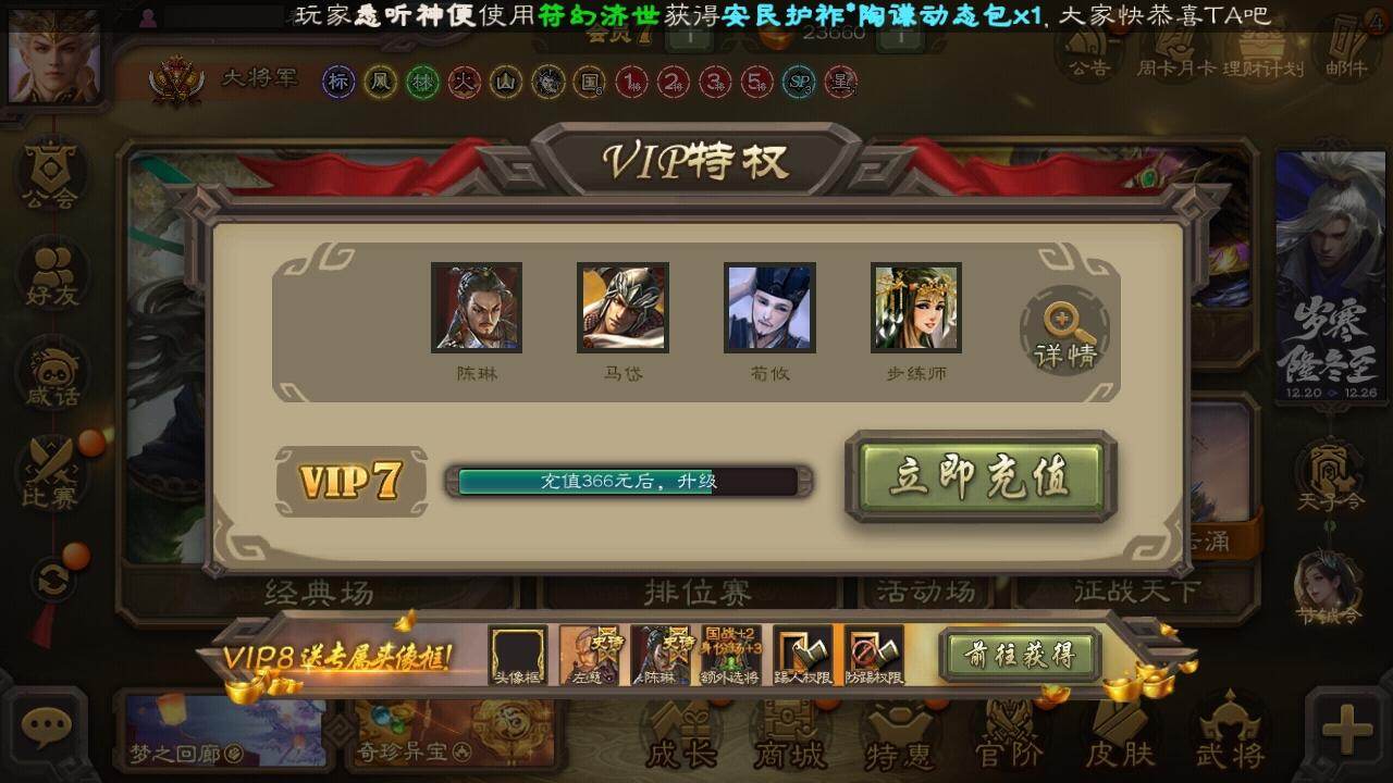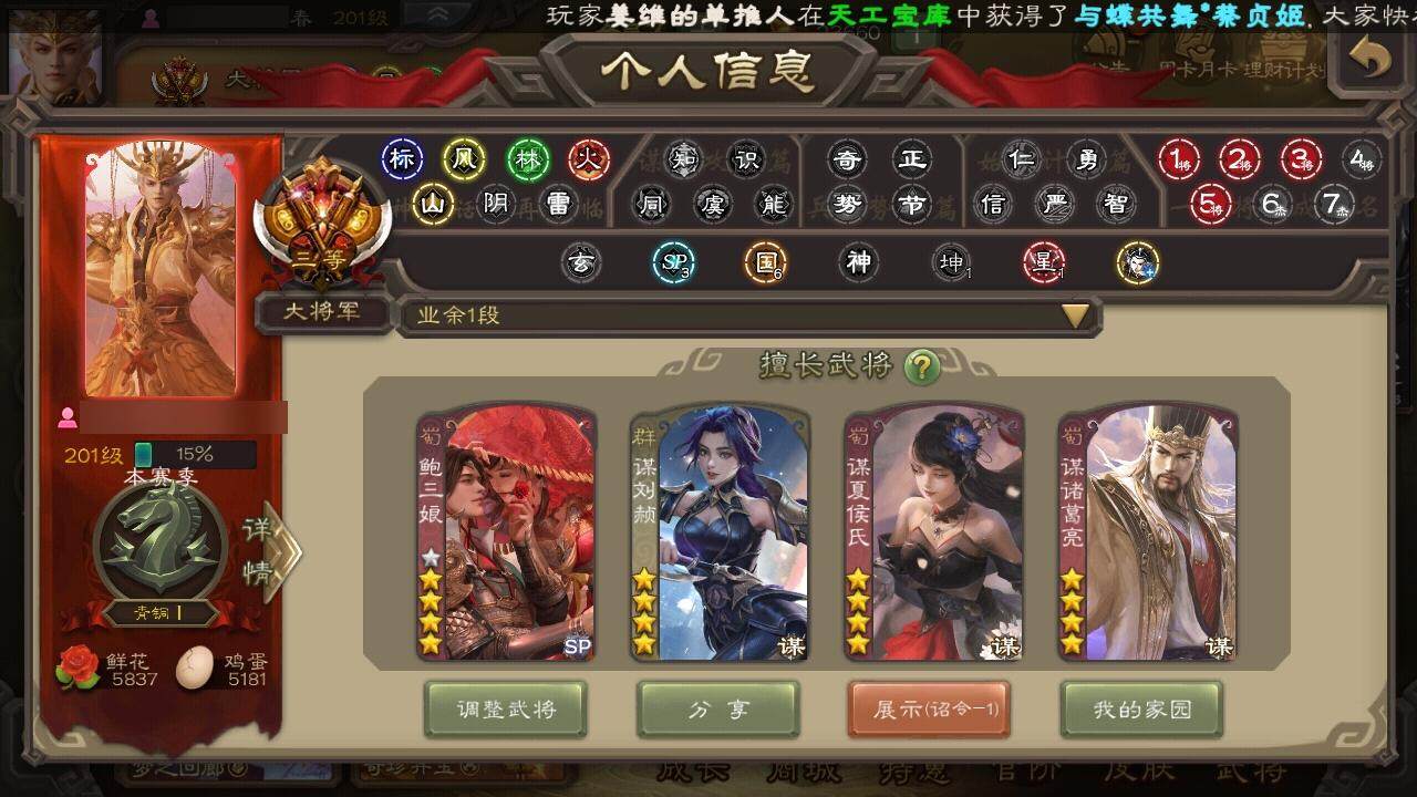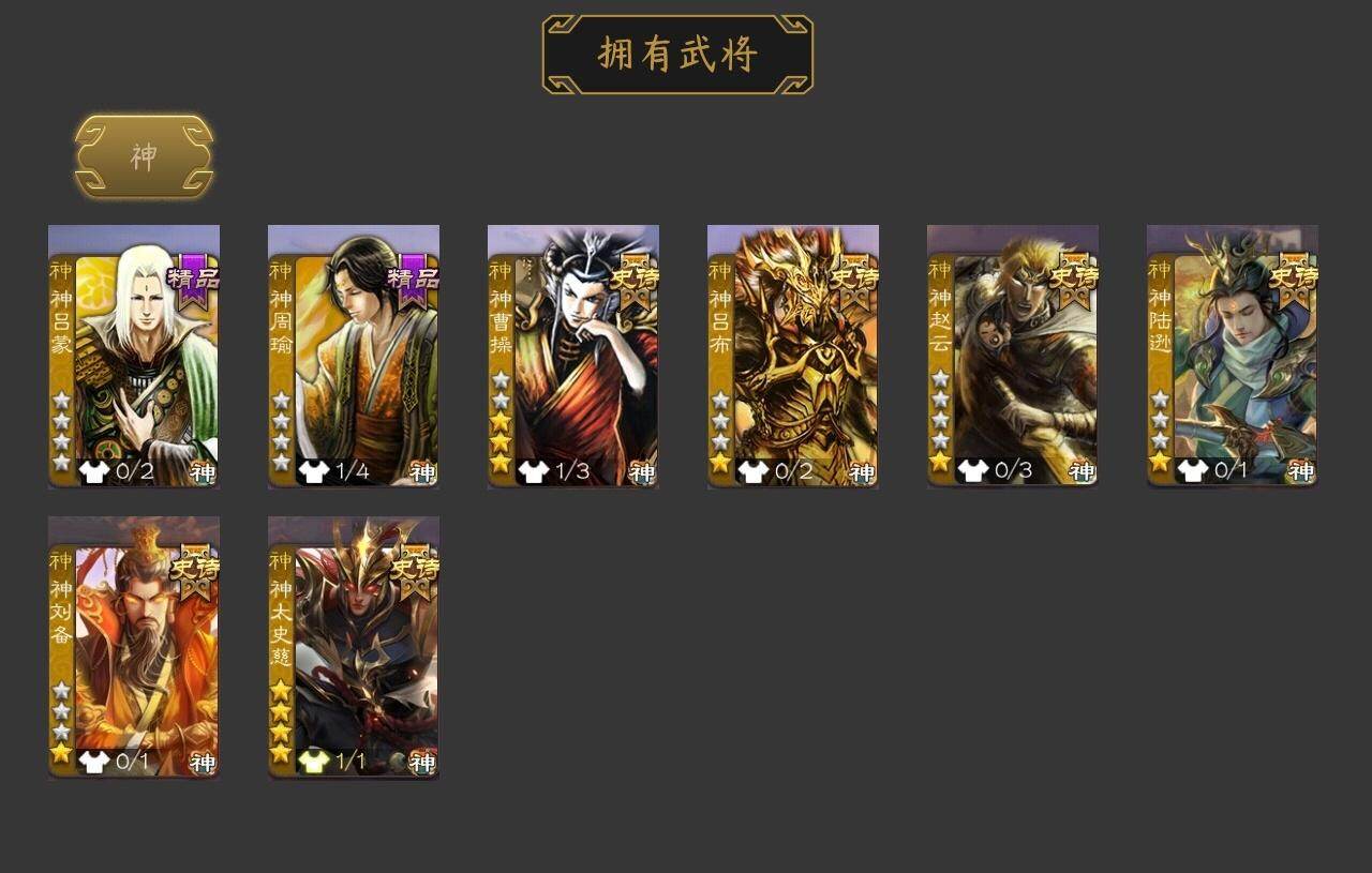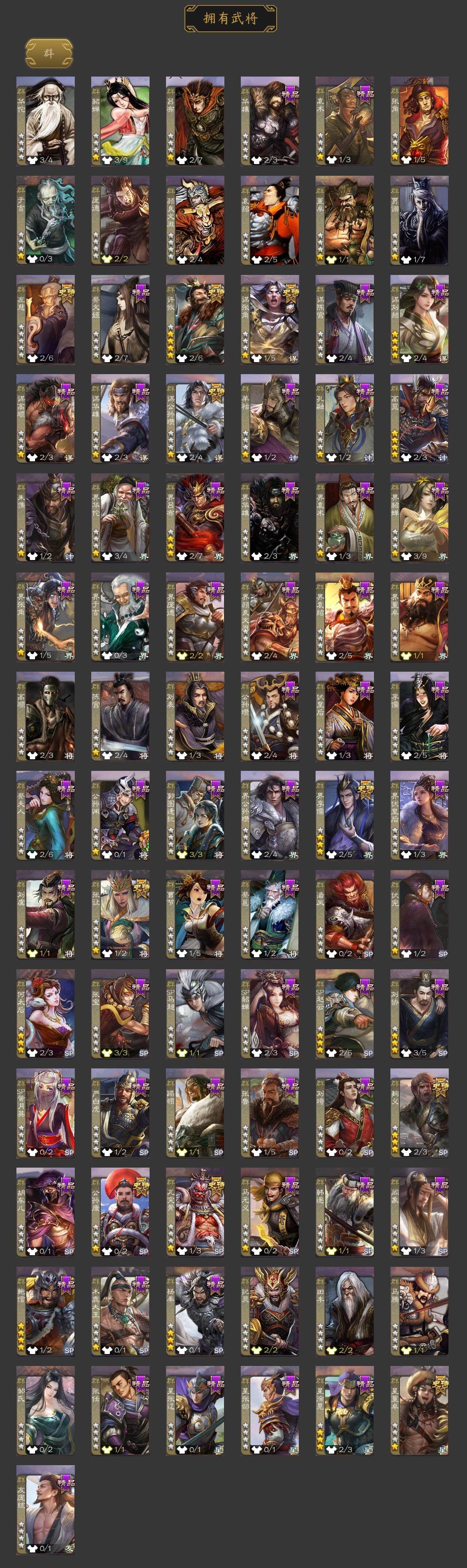 [15173585]【885】官阶:大将军;vip等级:vip7;史诗武将数量:38;动态皮肤数量:37;武将总数:350;史诗宝珠数量:0;将魂数量:9929;神将:8;魏国史诗武将:20;蜀国史诗武将:11;吴国史诗武将:5;群史诗武将:12 神曹操神吕布神赵云神陆逊神刘备神太史慈神吕蒙神周瑜星周不疑界钟会界曹真曹纯戏志才谋诸葛亮谋夏侯氏谋赵云谋马超诸葛瞻沙摩柯谯周界黄忠花鬘董允鲍三娘周处骆统界朱然界徐盛界步练师谋黄月英谋公孙瓒左慈张让麹义界李儒公孙康鲍信谋张角阎象许攸星董卓神太史慈-勇撼日月动态神曹操-四方归心动态鲍三娘-情定缘起郭嘉-以身证道(动态)星周不疑-才广志宏动态曹丕-气荡山河(动态)sp蔡文姬-兔年冬日动态钟会-谋谟之勋动态界钟会-谋谟之勋动态曹昂-竭战麟伤动态曹纯-虎年春节动态诸葛诞-寿春举义(动态)星徐晃-斧引霹雳动态孟获-祸崇南疆动态卧龙诸葛-龙跃凤鸣动态费祎-安民护祚(动态)诸葛亮-明良千古动态夏侯氏-明良千古动态关索-虎年七夕动态鲍三娘-虎年七夕动态诸葛果-蛇年限定动态卧龙诸葛-火烧博望动态周处-义除三害动态吕蒙-剑起惊澜动态陆逊-龙年七夕动态孙权-永开吴祚动态孙权-猪年端午动态鲁肃-联刘抗曹动态界孙权-猪年端午动态徐盛-破军杀将动态鲁肃-蛇年端午动态高览-威显官渡动态麹义-扬刀立威动态刘协-困龙犹斗动态李儒-鸠杀少帝动态界李儒-鸠杀少帝动态何太后-蛇蝎为心动态张宝-苍天已死动态左慈-蛇年限定动态谋刘赪-冠绝天下动态