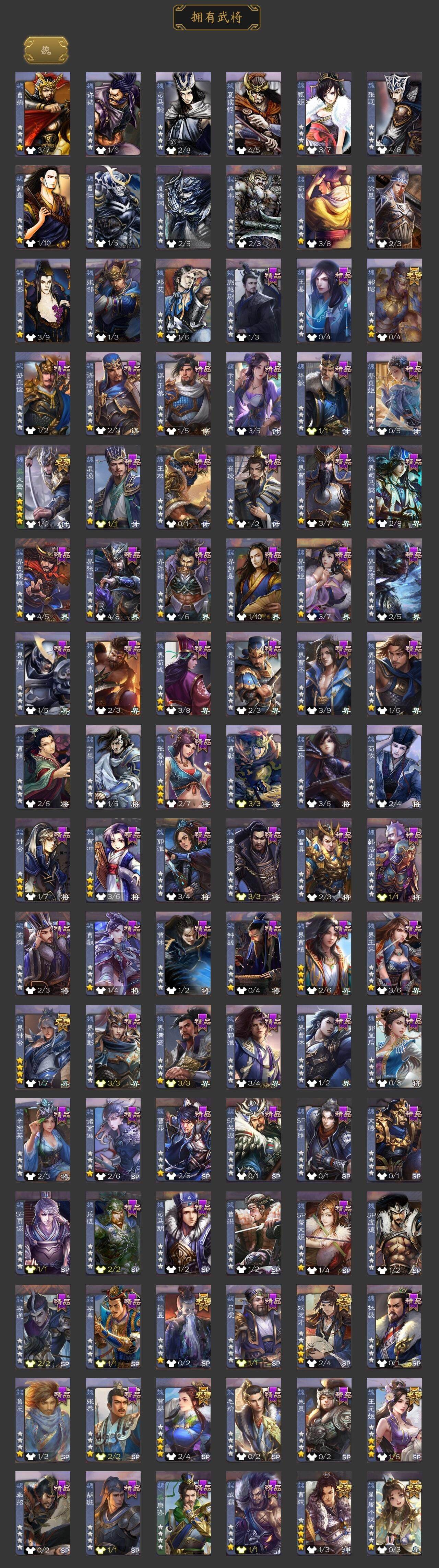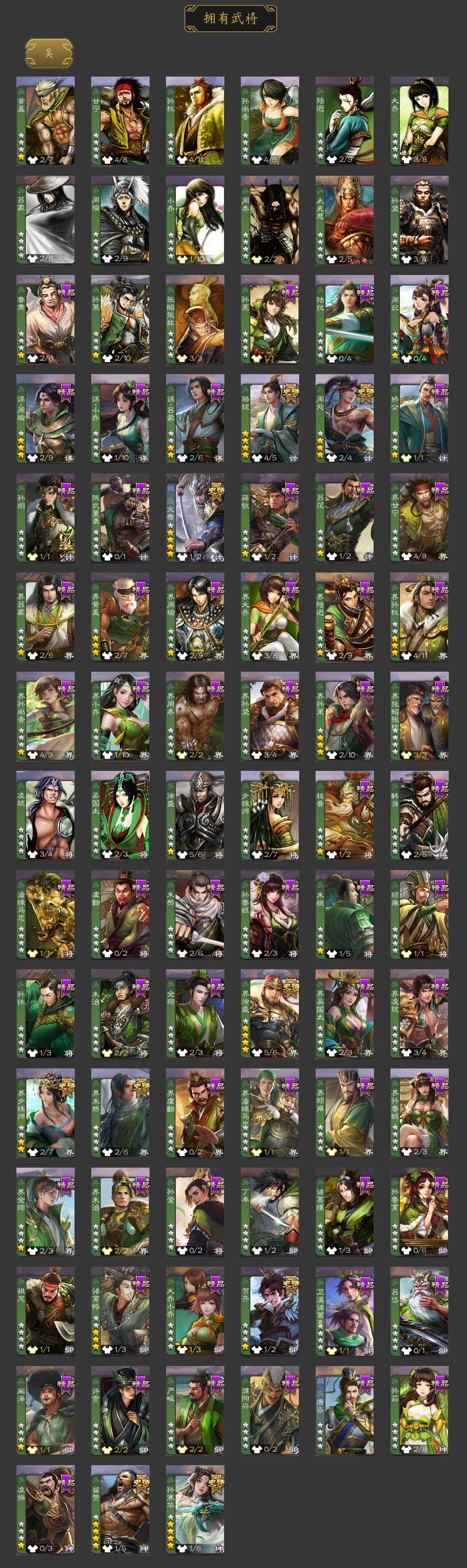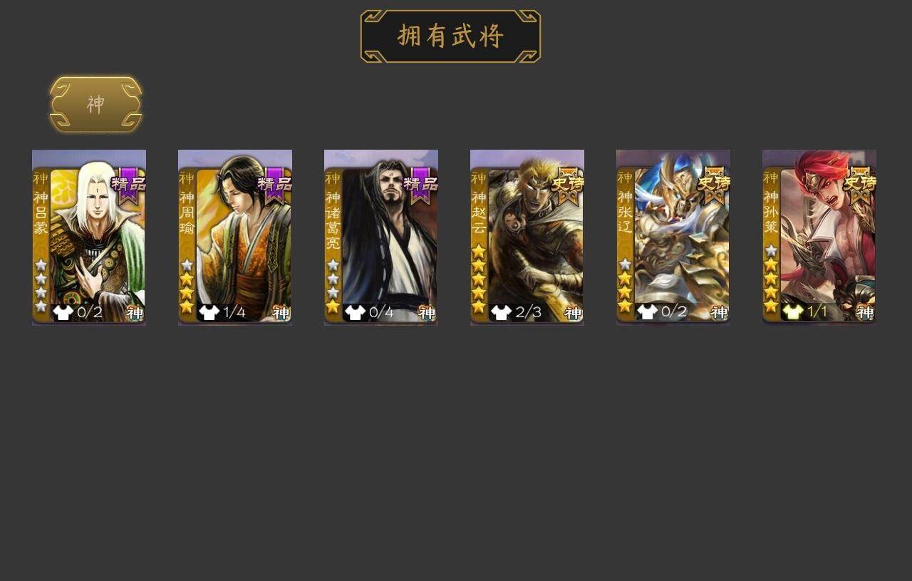 [15173797]【266】官阶:大将军;vip等级:vip10;史诗武将数量:37;动态皮肤数量:36;武将总数:379;史诗宝珠数量:0;将魂数量:1272;神将:6;魏国史诗武将:18;蜀国史诗武将:6;吴国史诗武将:8;群史诗武将:13 神赵云神张辽神孙策神吕蒙神周瑜神诸葛亮星周不疑文鸯王元姬界钟会郝昭曹婴曹纯戏志才谋赵云谋马超沙摩柯谯周界黄忠花鬘周处孙寒华骆统留赞界朱然界徐盛界步练师贺齐谋黄月英界沮授左慈张让星黄忠麹义祢衡沮授界左慈谋张角张绣李傕星董卓神孙策-霸王再世动态神赵云-鳞振九霄神甘宁-万人辟易动态神赵云-战龙在野动态张昌蒲-龙年端午(动态)曹植-龙年中秋动态曹丕-气荡山河(动态)甄姬-明珠耀躯(动态)sp蔡文姬-兔年冬日动态荀彧-驱虎吞狼动态张春华-牛年立冬动态曹婴-兔年春节动态曹纯-虎年春节动态诸葛亮-龙年限定动态马超-牛年春节动态马超-西凉雄狮动态界马超-牛年春节动态界马超-西凉雄狮动态关银屏-兔年春节动态李丰-太仓聚粟动态周处-义除三害动态吕蒙-剑起惊澜动态孙权-永开吴祚动态周瑜-免年清明动态黄盖-鏖战赤壁动态孙权-牛年七夕动态界黄盖-鏖战赤壁动态界孙权-牛年七夕动态徐盛-破军杀将动态刘赞-灵魂歌王动态孙寒华-蛇年限定动态文鸯-势若万钧动态貂蝉-忧君难寐动态袁绍-声震寰宇动态杜预-弼朝博虬动态麹义-扬刀立威动态李儒-鸠杀少帝动态兀突骨-鼠年春节动态