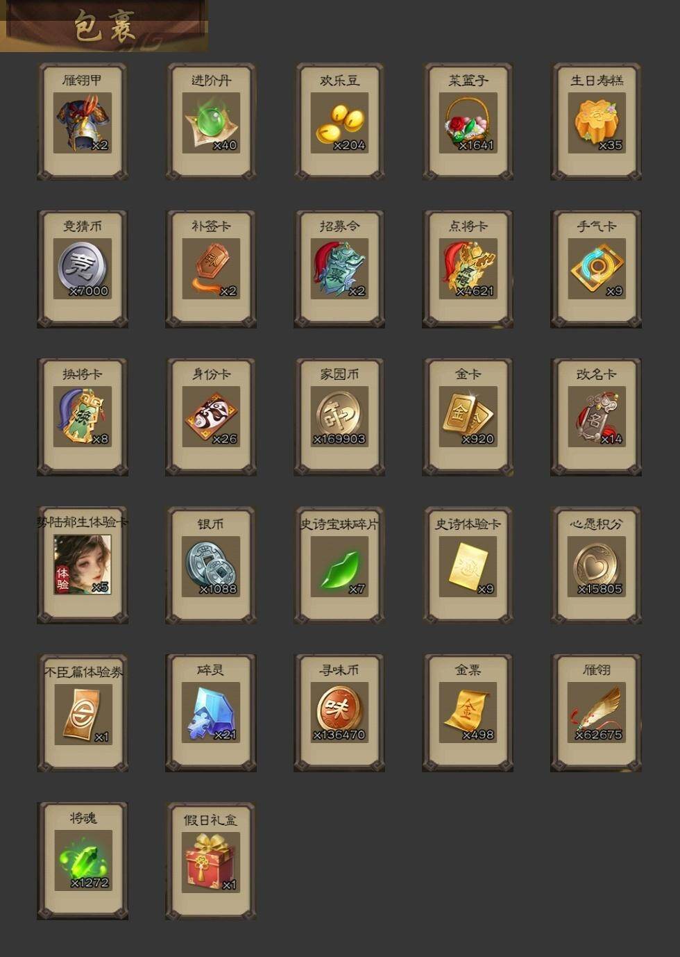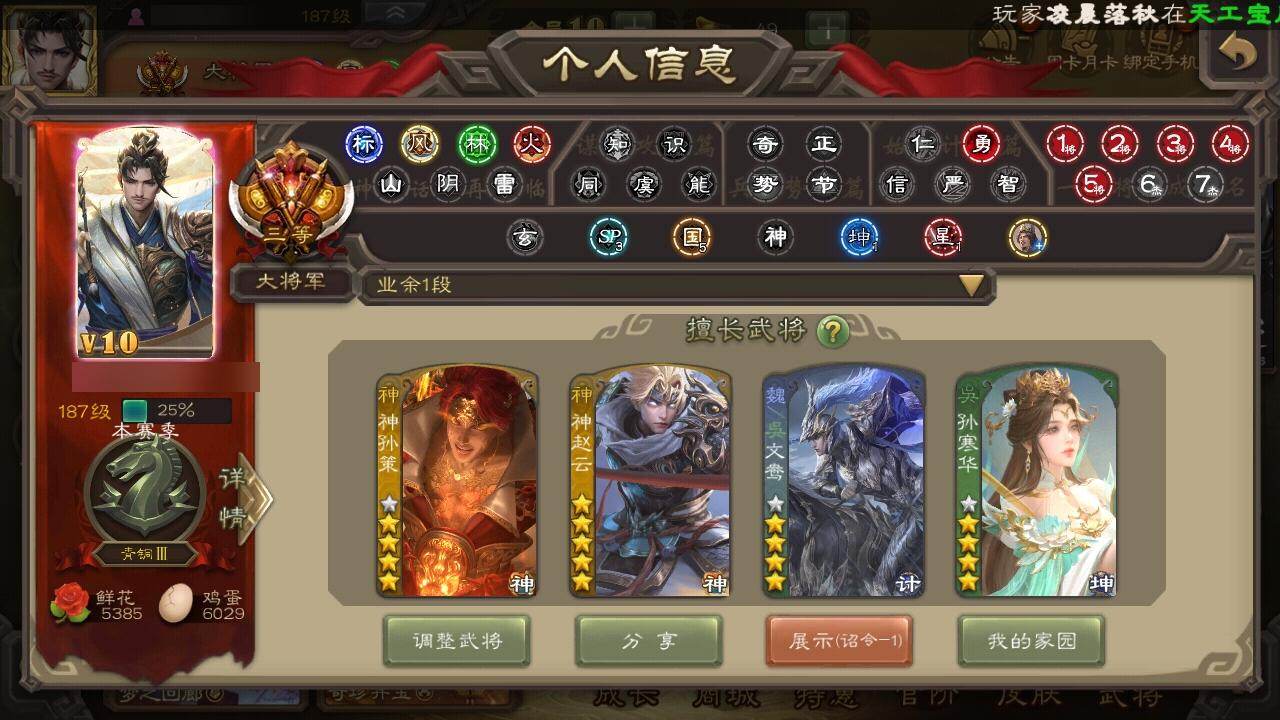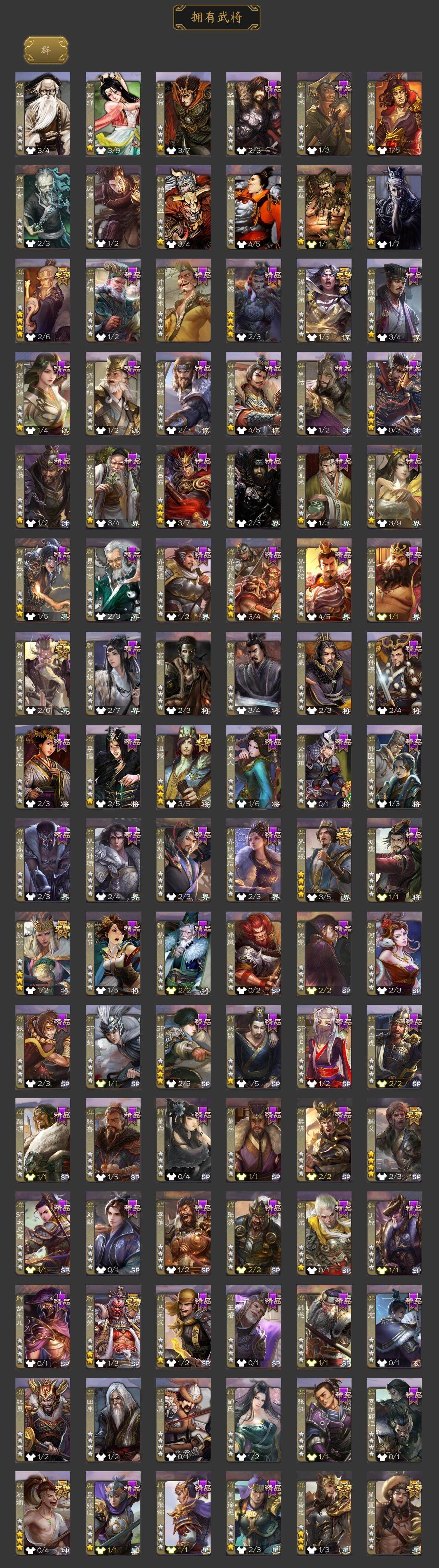 [15173797]【266】官阶:大将军;vip等级:vip10;史诗武将数量:37;动态皮肤数量:36;武将总数:379;史诗宝珠数量:0;将魂数量:1272;神将:6;魏国史诗武将:18;蜀国史诗武将:6;吴国史诗武将:8;群史诗武将:13 神赵云神张辽神孙策神吕蒙神周瑜神诸葛亮星周不疑文鸯王元姬界钟会郝昭曹婴曹纯戏志才谋赵云谋马超沙摩柯谯周界黄忠花鬘周处孙寒华骆统留赞界朱然界徐盛界步练师贺齐谋黄月英界沮授左慈张让星黄忠麹义祢衡沮授界左慈谋张角张绣李傕星董卓神孙策-霸王再世动态神赵云-鳞振九霄神甘宁-万人辟易动态神赵云-战龙在野动态张昌蒲-龙年端午(动态)曹植-龙年中秋动态曹丕-气荡山河(动态)甄姬-明珠耀躯(动态)sp蔡文姬-兔年冬日动态荀彧-驱虎吞狼动态张春华-牛年立冬动态曹婴-兔年春节动态曹纯-虎年春节动态诸葛亮-龙年限定动态马超-牛年春节动态马超-西凉雄狮动态界马超-牛年春节动态界马超-西凉雄狮动态关银屏-兔年春节动态李丰-太仓聚粟动态周处-义除三害动态吕蒙-剑起惊澜动态孙权-永开吴祚动态周瑜-免年清明动态黄盖-鏖战赤壁动态孙权-牛年七夕动态界黄盖-鏖战赤壁动态界孙权-牛年七夕动态徐盛-破军杀将动态刘赞-灵魂歌王动态孙寒华-蛇年限定动态文鸯-势若万钧动态貂蝉-忧君难寐动态袁绍-声震寰宇动态杜预-弼朝博虬动态麹义-扬刀立威动态李儒-鸠杀少帝动态兀突骨-鼠年春节动态