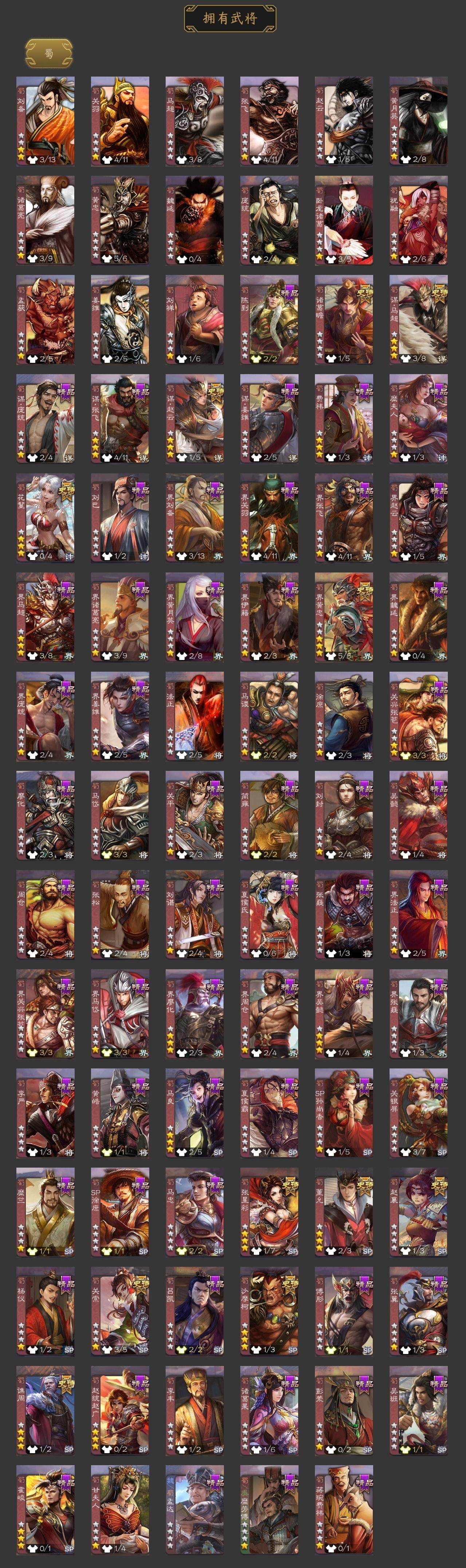 [15173956]【181】官阶:大将军;vip等级:vip8;史诗武将数量:44;动态皮肤数量:42;武将总数:364;史诗宝珠数量:0;将魂数量:15349;神将:6;魏国史诗武将:28;蜀国史诗武将:11;吴国史诗武将:7;群史诗武将:14 神吕布神赵云神孙策神吕蒙神周瑜神诸葛亮星周不疑文鸯魏-司马昭界钟会界曹真曹婴曹纯戏志才蒋干清河公主关索谋赵云谋马超诸葛瞻赵襄张星彩沙摩柯谯周界黄忠花鬘董允谋黄盖周处骆统界朱然界徐盛界步练师贺齐谋郭嘉裴秀左慈张让星甘宁麹义沮授界李儒公孙康鲍信谋张角张绣许攸星董卓神鲁肃-九州为局神孙策-霸王再世动态神吕蒙-兼资文武动态神诸葛亮-观星唤雨神赵云-战龙在野动态sp司马昭-鼠年冬至(动态)王元姬-婆娑起舞(动态)星周不疑-才广志宏动态钟繇-安民护祚(动态)曹丕-气荡山河(动态)甄姬-明珠耀躯(动态)曹丕-龙年中秋动态sp蔡文姬-兔年冬日动态荀彧-驱虎吞狼动态戏志才-举棋若定动态曹纯-虎年春节动态司马昭-昭威淮南(动态)星徐晃-斧引霹雳动态清河公主-魅影萦心动态诸葛亮-龙年限定动态卧龙诸葛-龙跃凤鸣动态张飞-据水断桥动态黄忠-明良千古动态界张飞-据水断桥动态关银屏-兔年春节动态关索-鼠年中秋动态关索-虎年七夕动态诸葛果-蛇年限定动态卧龙诸葛-火烧博望动态孙茹-龙年七夕动态周处-义除三害动态吕蒙-剑起惊澜动态孙权-永开吴祚动态孙策-虎踞江东动态步骘-鸿笔丽藻动态孙尚香-兔年春节动态凌统-长风破浪动态徐盛-破军杀将动态界凌统-长风破浪动态文鸯-势若万钧动态高顺-每战必克动态曹节-龙年中秋动态袁绍-声震寰宇动态麹义-扬刀立威动态张鲁-虎年冬至动态星甘宁-肝胆相照动态张鲁-安民护祚动态左慈-蛇年限定动态