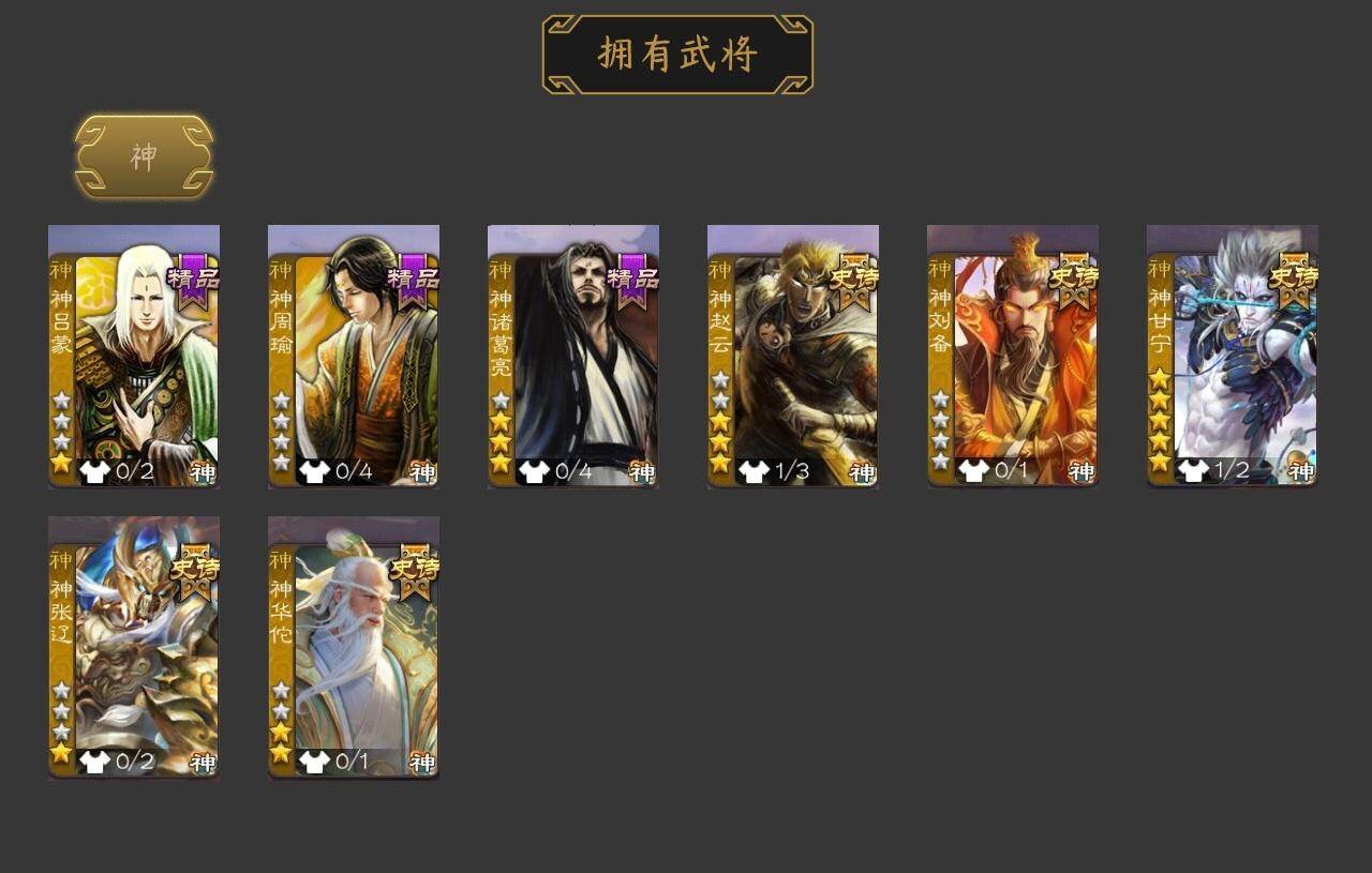 [15174126]【441】官阶:大将军;vip等级:vip8;史诗武将数量:36;动态皮肤数量:28;武将总数:354;史诗宝珠数量:0;将魂数量:10847;神将:8;魏国史诗武将:12;蜀国史诗武将:9;吴国史诗武将:3;群史诗武将:12 神赵云神刘备神甘宁神张辽神华佗神吕蒙神周瑜神诸葛亮星周不疑羊徽瑜文鸯王元姬魏-司马昭界钟会曹纯戏志才关索谋诸葛亮谋赵云谋马超诸葛瞻周群沙摩柯花鬘董允周处骆统界徐盛谋郭嘉界沮授左慈星黄忠星甘宁麹义沮授界李儒张绣李傕许攸星董卓神甘宁-万人辟易动态神赵云-战龙在野动态曹丕-气荡山河(动态)甄姬-明珠耀躯(动态)荀彧-驱虎吞狼动态王元姬-鼠年冬至动态羊徽瑜-牛年中秋动态司马昭-昭威淮南(动态)卧龙诸葛-龙跃凤鸣动态费祎-安民护祚(动态)刘备-明良千古动态马超-牛年春节动态界刘备-明良千古动态界马超-牛年春节动态关银屏-鼠年中秋动态关索-虎年七夕动态李丰-太仓聚粟动态小乔-兔年七夕动态太史慈-涤荡江东动态周处-义除三害动态吕蒙-剑起惊澜动态孙权-永开吴祚动态孙策-虎踞江东动态孙权-牛年七夕动态孙策-猪年七夕动态界孙权-牛年七夕动态界孙策-猪年七夕动态孙鲁育-牛年端午动态许攸-盛气凌人动态李儒-鸠杀少帝动态界李儒-鸠杀少帝动态左慈-蛇年限定动态