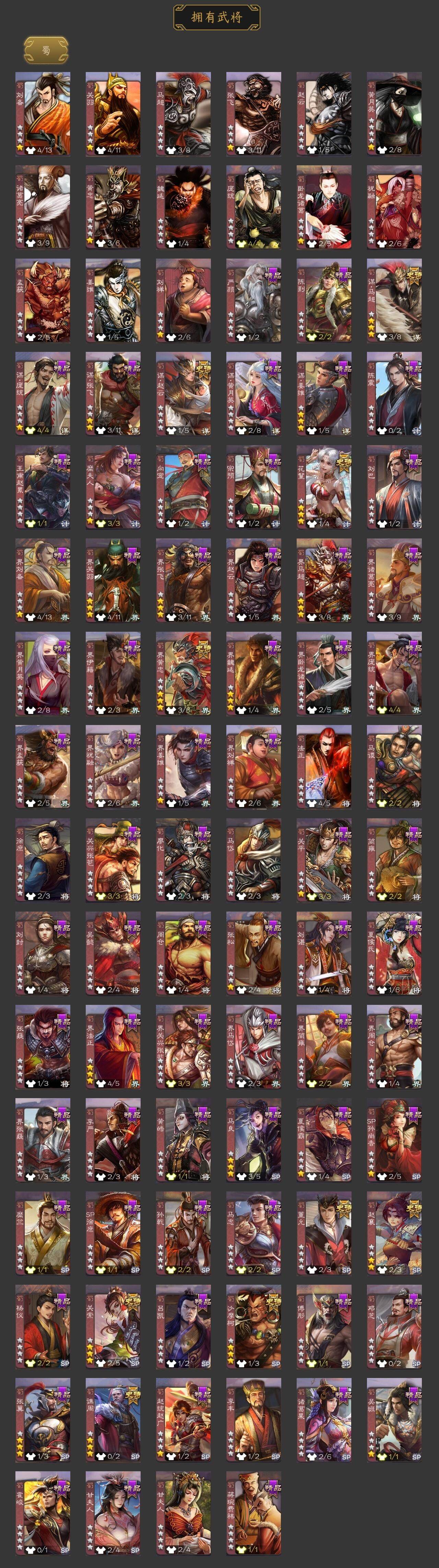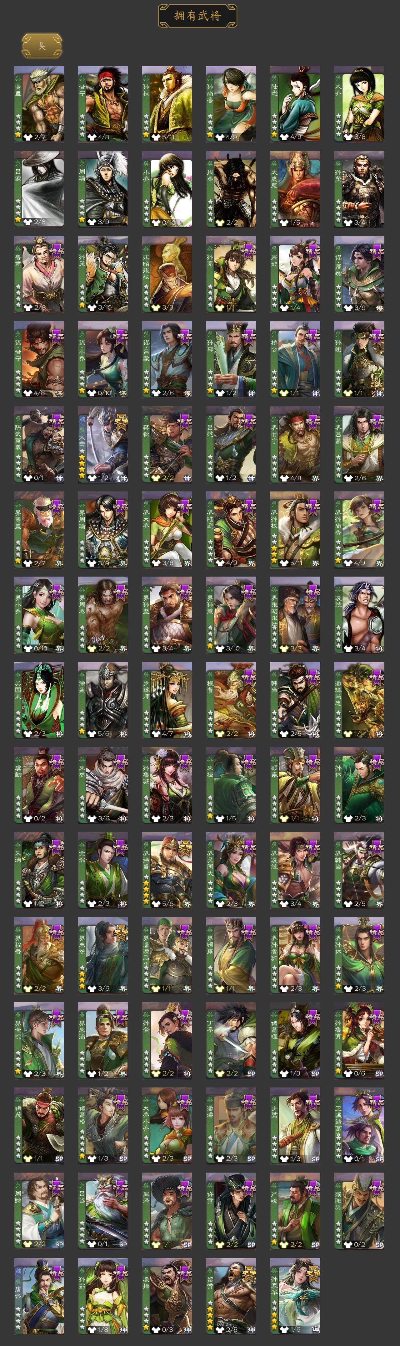 [15174404]【910】官阶:大将军;vip等级:vip10;史诗武将数量:44;动态皮肤数量:51;武将总数:393;史诗宝珠数量:2;将魂数量:2259;神将:5;魏国史诗武将:34;蜀国史诗武将:9;吴国史诗武将:4;群史诗武将:17 神吕布神赵云神张辽神吕蒙神周瑜曹髦星周不疑文鸯魏-司马昭界钟会界于禁界曹真郝昭曹婴曹纯戏志才清河公主关索谋赵云谋马超赵襄沙摩柯谯周界黄忠花鬘董允孙寒华留赞界朱然界徐盛谋黄月英左慈张让张琪瑛星黄忠星甘宁麹义沮授界左慈界李儒公孙康卑弥呼谋张角李傕阎象许攸星董卓神太史慈-勇撼日月动态神吕蒙-心生万象神甘宁-万人辟易动态神吕布-冠绝天下动态神赵云-战龙在野动态神赵云-神龙天降神司马懿-鉴往知来动态星周不疑-才广志宏动态曹植-龙年中秋动态钟会-潜蛟觊天动态钟繇-安民护祚(动态)曹丕-气荡山河(动态)星周不疑-龙年清明动态甄姬-明珠耀躯(动态)sp蔡文姬-兔年冬日动态荀彧-驱虎吞狼动态曹真-虎年春节动态曹昂-竭战麟伤动态戏志才-举棋若定动态曹婴-兔年春节动态曹纯-虎年春节动态司马昭-昭威淮南(动态)星徐晃-斧引霹雳动态清河公主-魅影萦心动态刘备-龙御天下动态关羽-明良千古动态马超-西凉雄狮动态诸葛瞻-绵竹之殇动态界马超-西凉雄狮动态夏侯氏-明良千古动态鲍三娘-虎年七夕动态卧龙诸葛-火烧博望动态周处-义除三害动态吕蒙-剑起惊澜动态孙权-兔年中秋动态孙权-永开吴祚动态孙策-虎踞江东动态孙尚香-兔年春节动态徐盛-破军杀将动态刘赞-灵魂歌王动态孙寒华-蛇年限定动态文鸯-势若万钧动态许攸-火烧乌巢动态袁绍-声震寰宇动态李儒-业火毒计动态麹义-扬刀立威动态杜预-龙吟破竹动态刘协-困龙犹斗动态张角-黄天当立动态刘焉-雄踞益州动态星甘宁-锦帆游侠动态张让-只手遮天动态左慈-蛇年限定动态